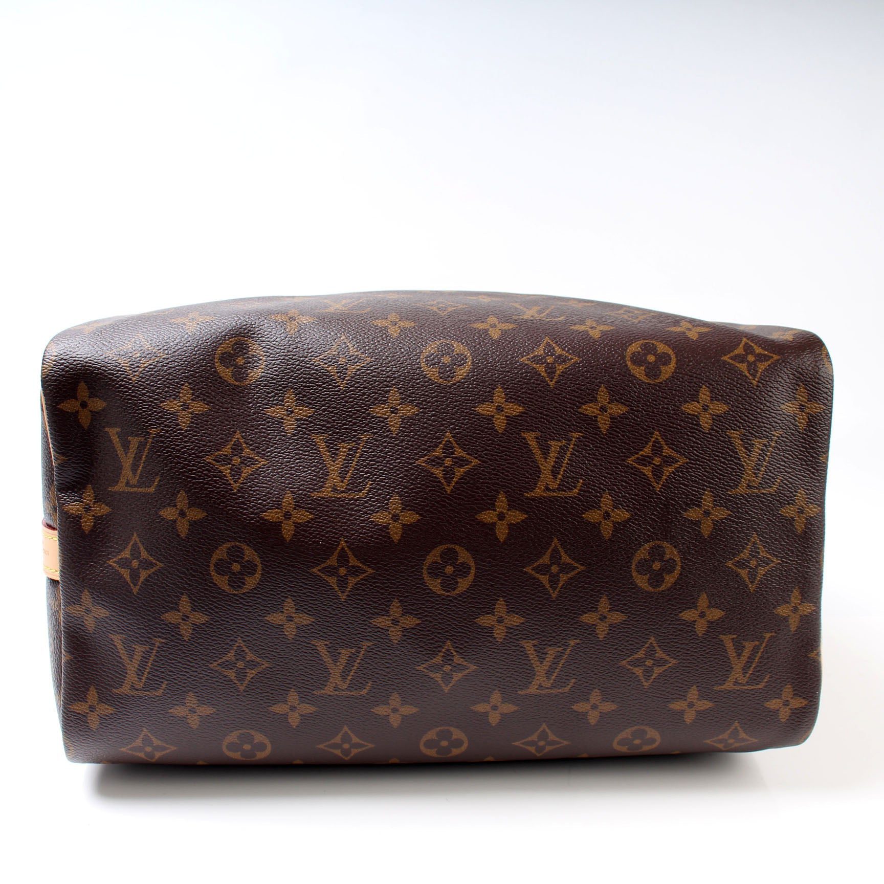 Louis Vuitton Speedy 30 Bandouliere. The exterior is in the classic Monogram coated canvas.