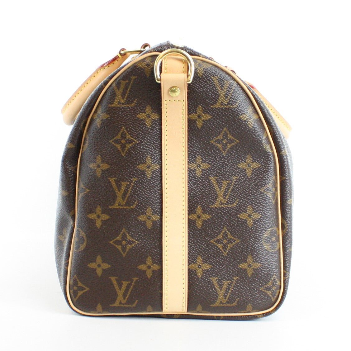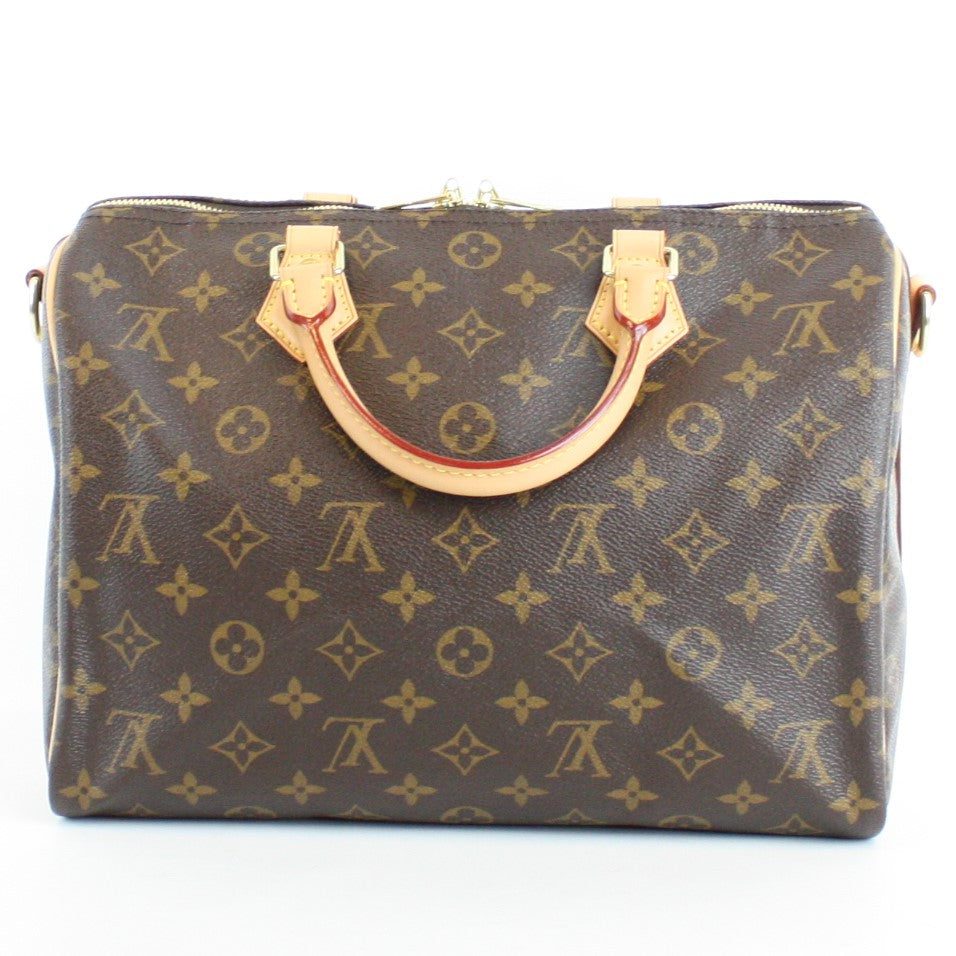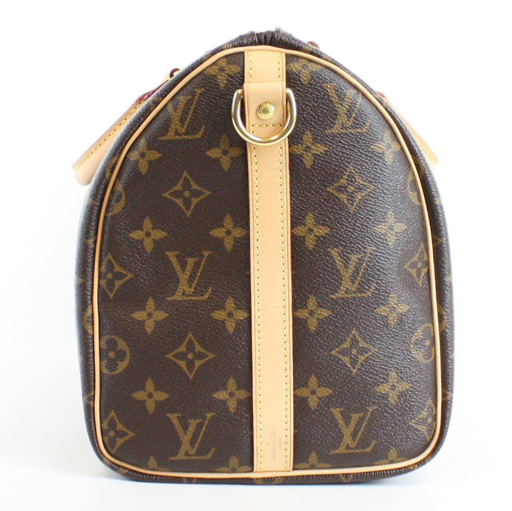 Louis Vuitton Speedy 30 Bandouliere. The exterior is in the classic Louis Vuitton Monogram coated canvas.Â