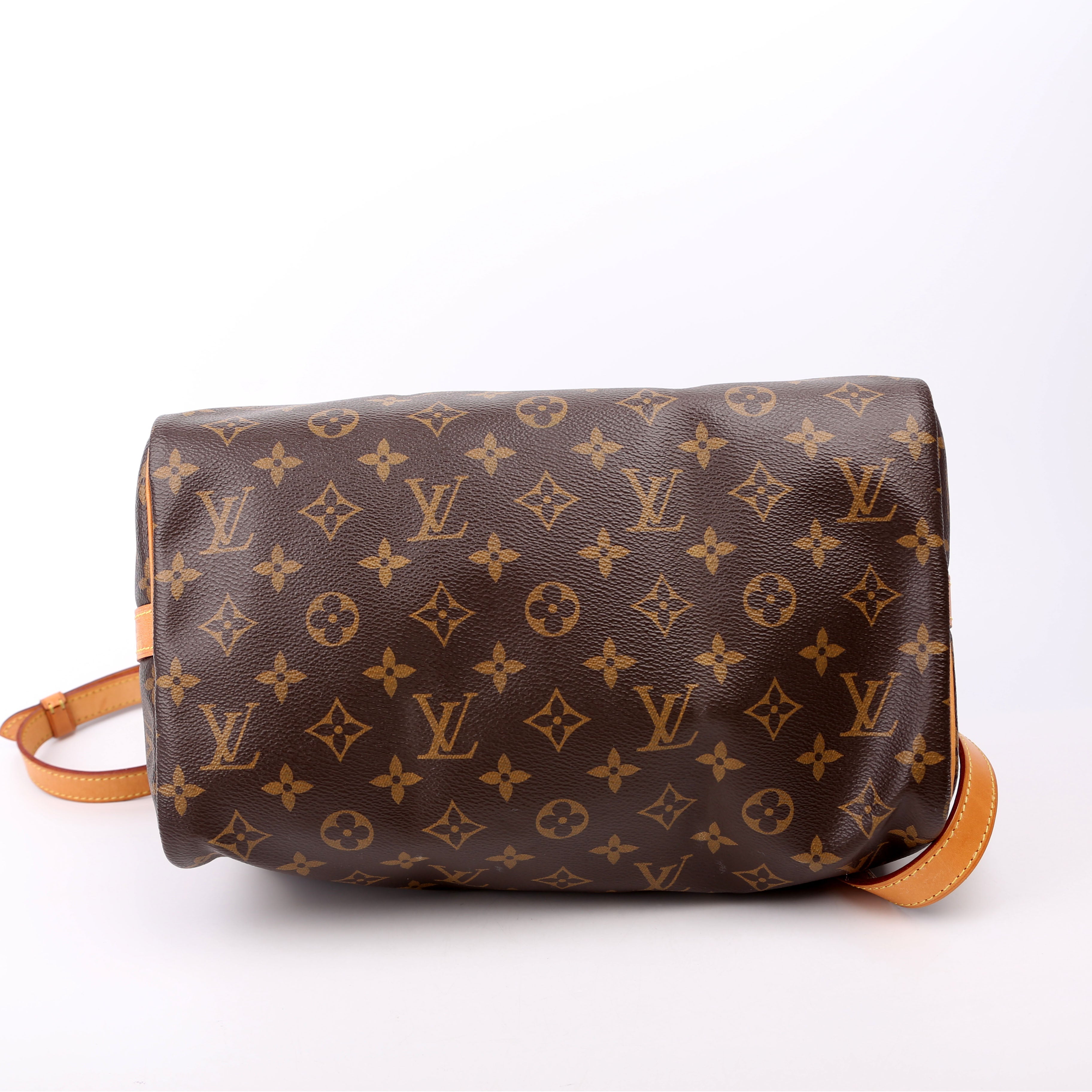 Louis Vuitton Speedy 30 Bandouliere . The exterior is in the classic Louis Vuitton Monogram coated canvas.