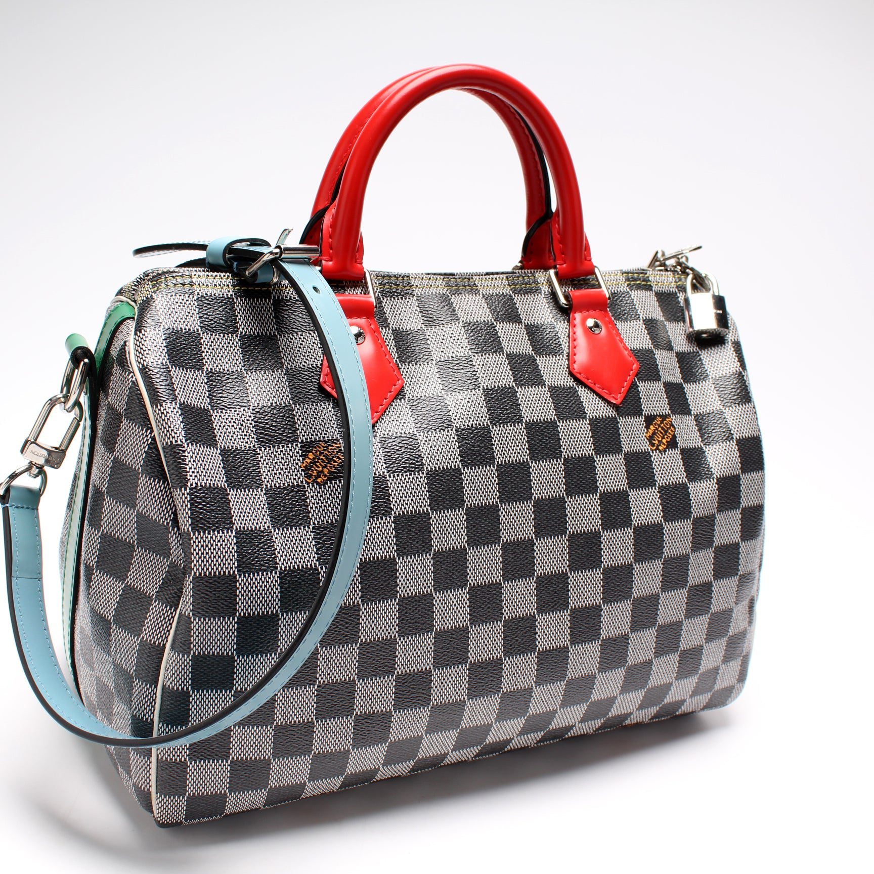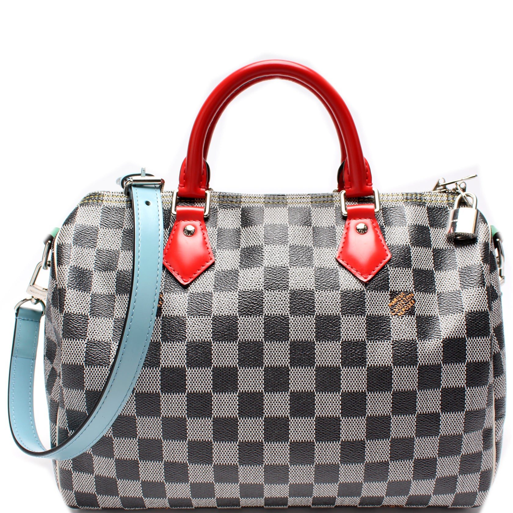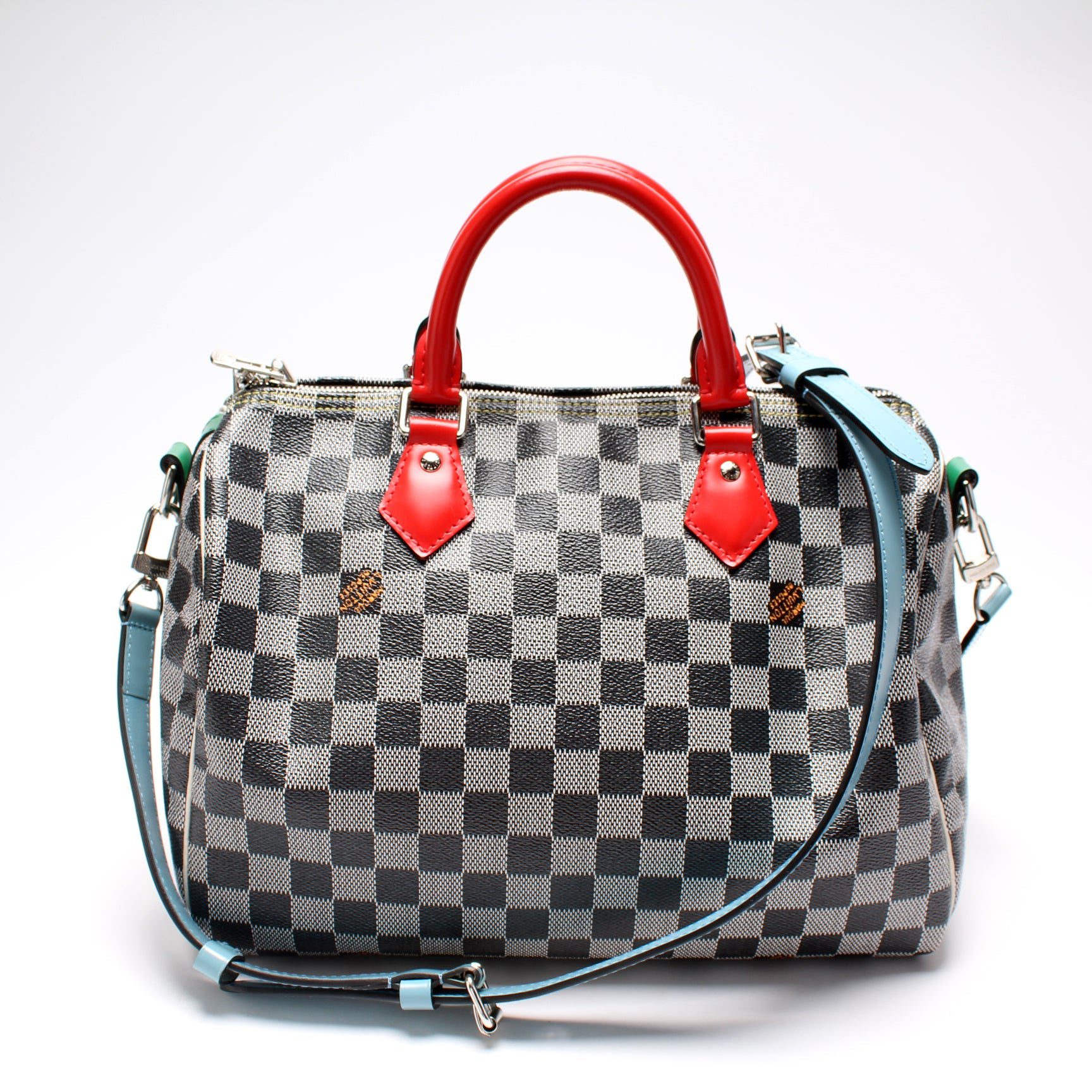 Louis Vuitton Speedy 30. The exterior is in the classic Louis Vuitton Colored Damier coated canvas.Â