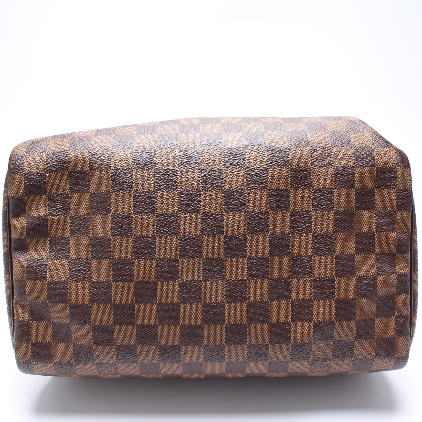 Louis Vuitton Speedy 30. The exterior is in the classic Louis Vuitton Damier Ebene coated canvas.