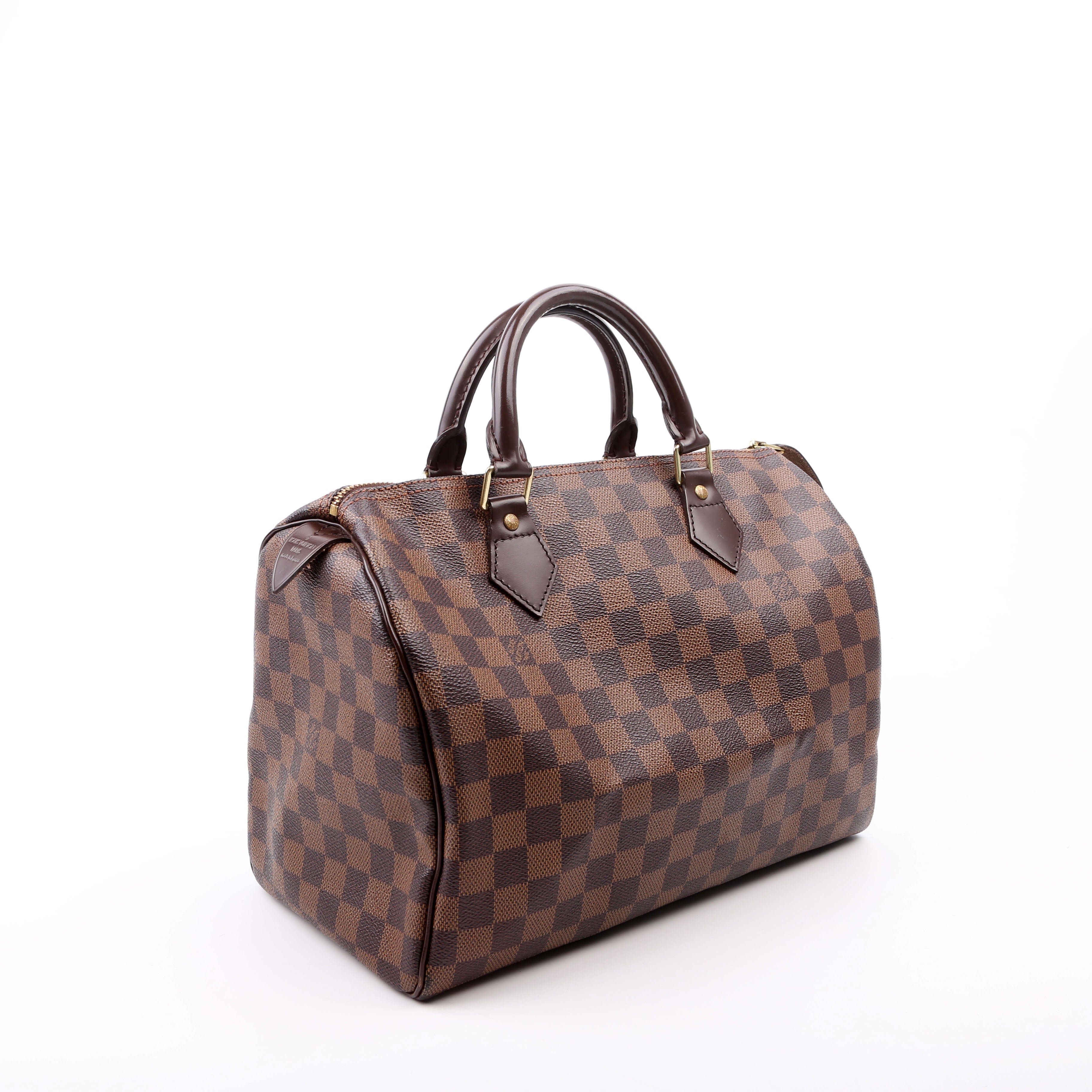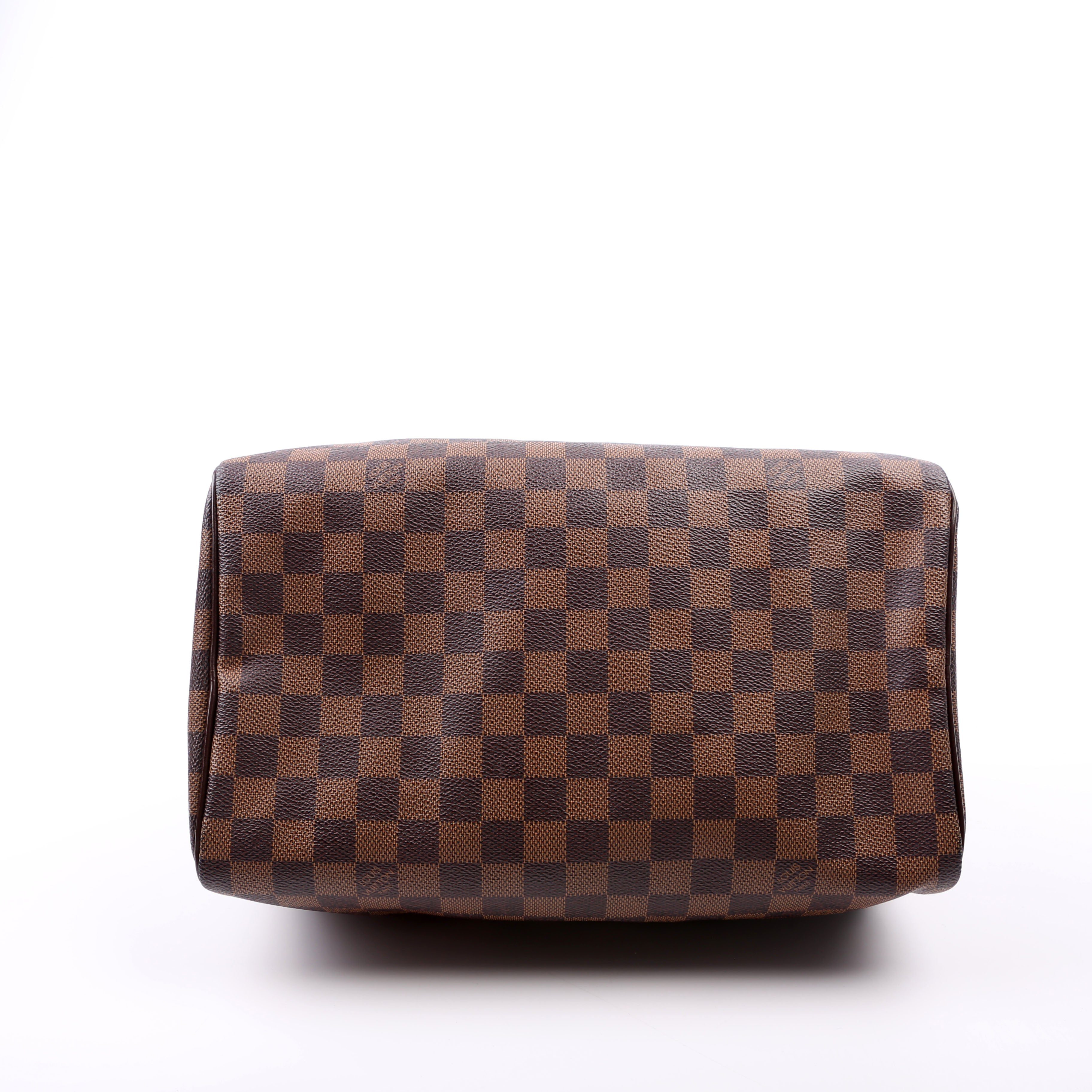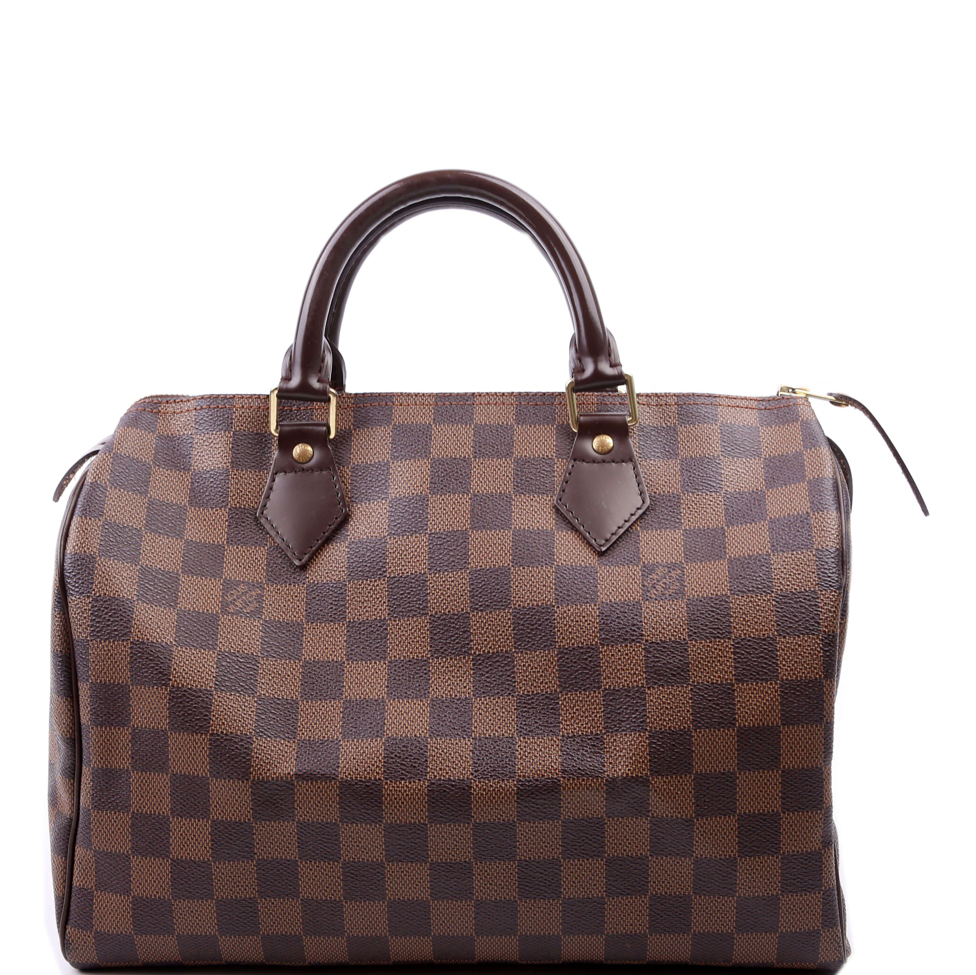 Louis Vuitton Speedy 30 . The exterior is in the classic Louis Vuitton Damier Ebene coated canvas. Â