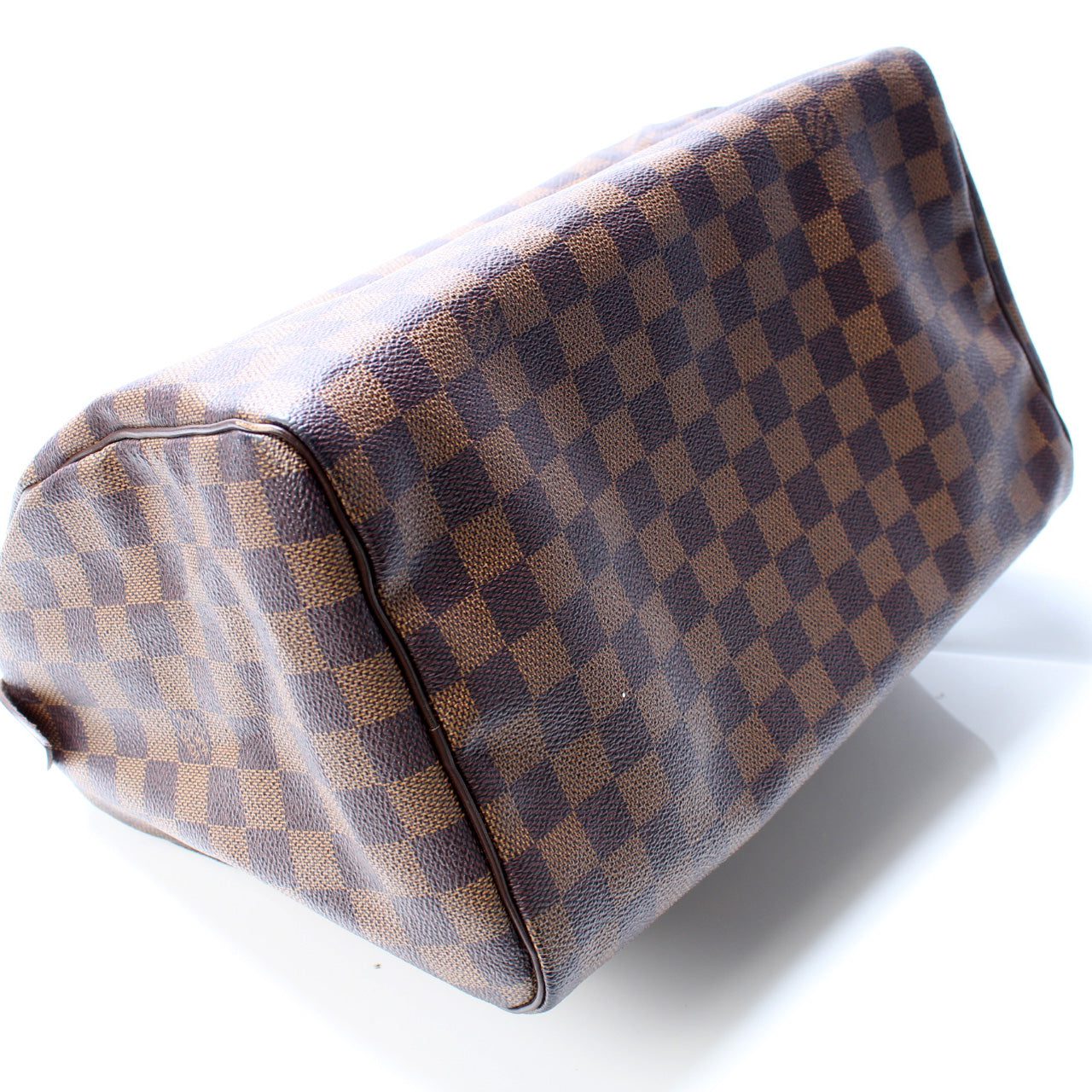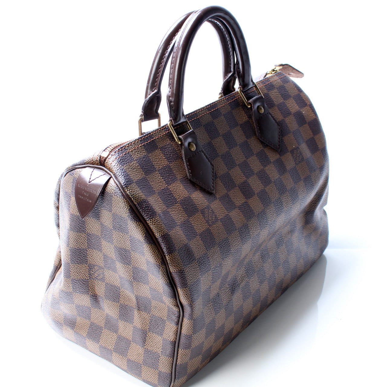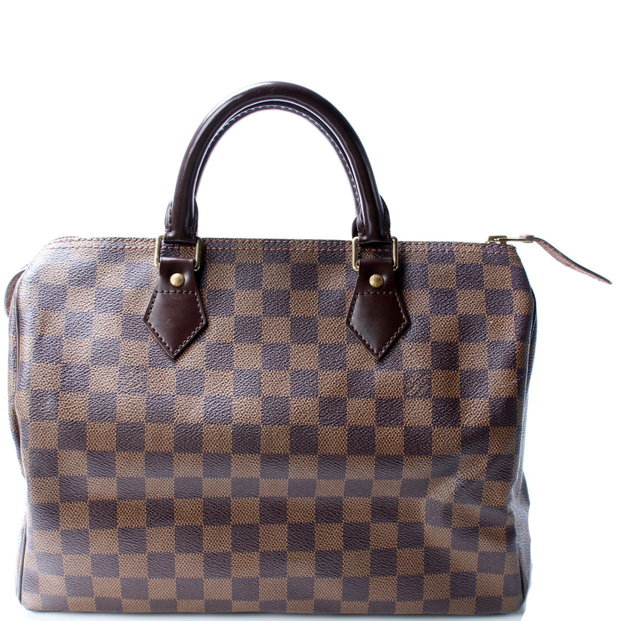 Louis Vuitton Speedy 30. The exterior is in the classic Monogram coated canvas. Â