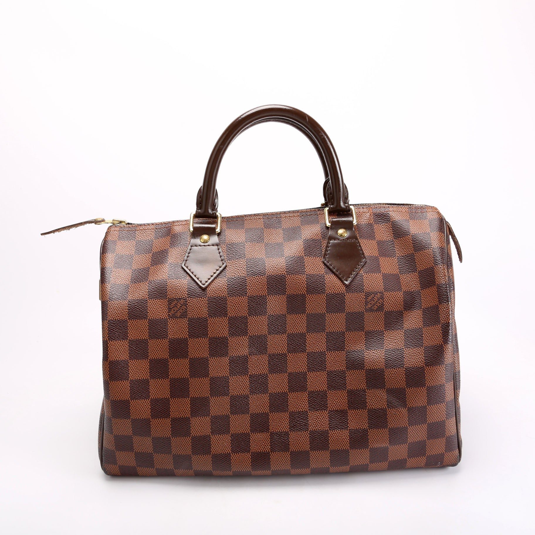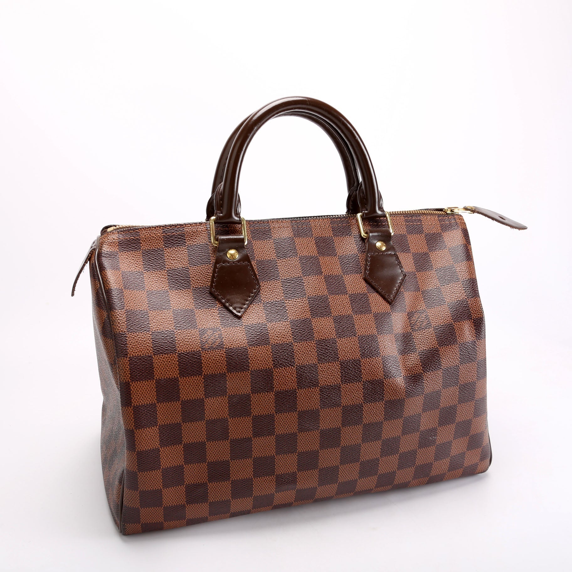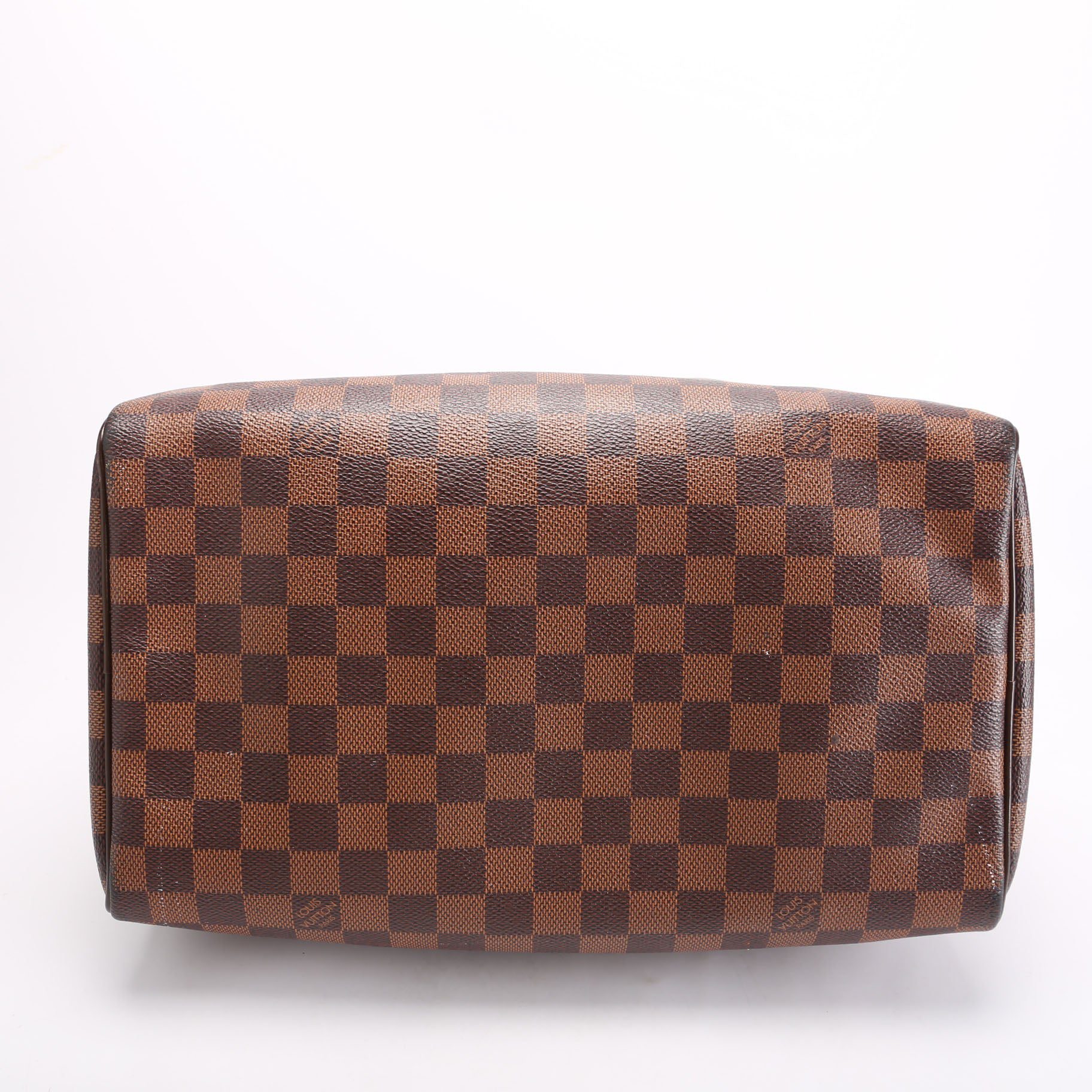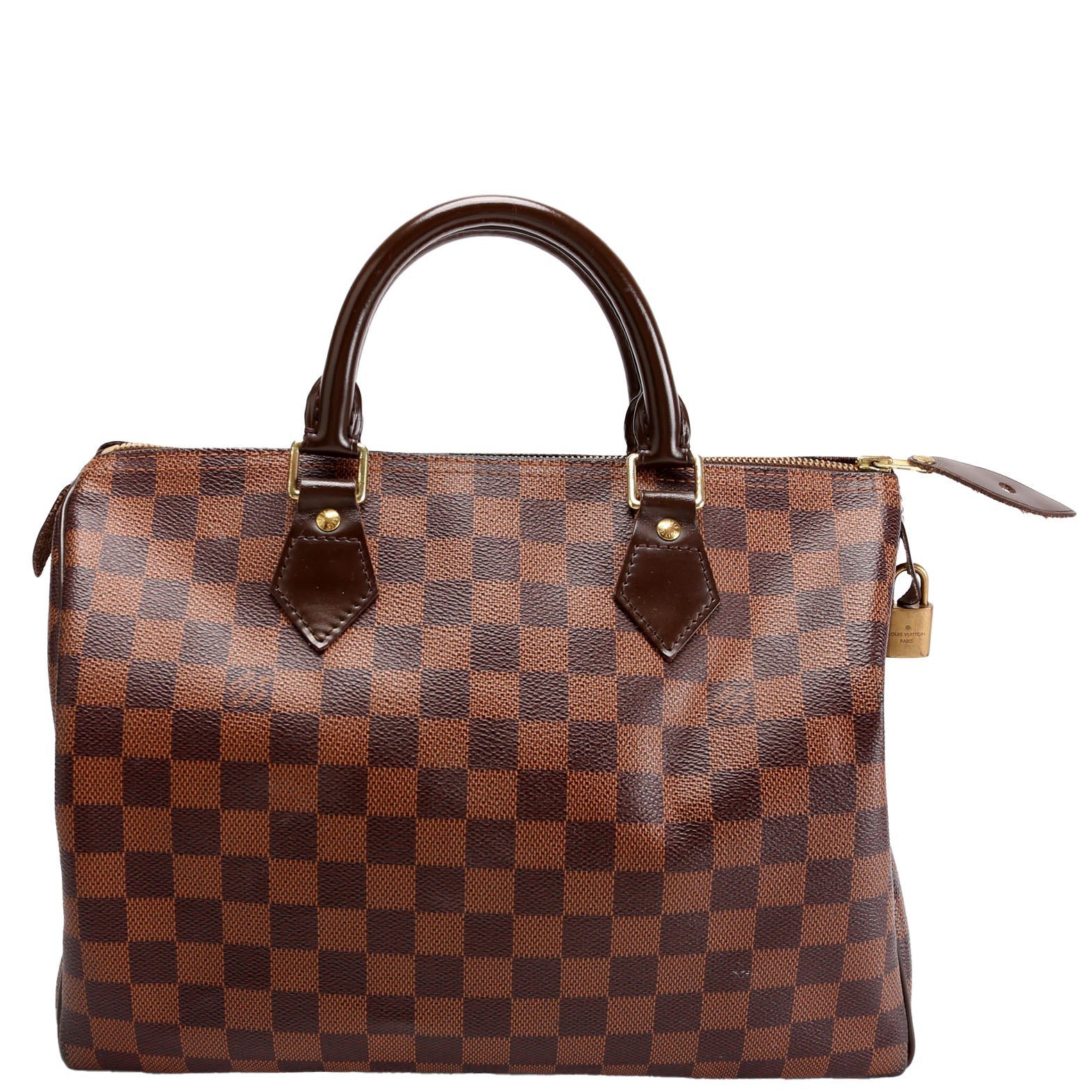 Louis Vuitton Speedy 30 . The exterior is in the classic Louis Vuitton Damier Ebene coated canvas. Â