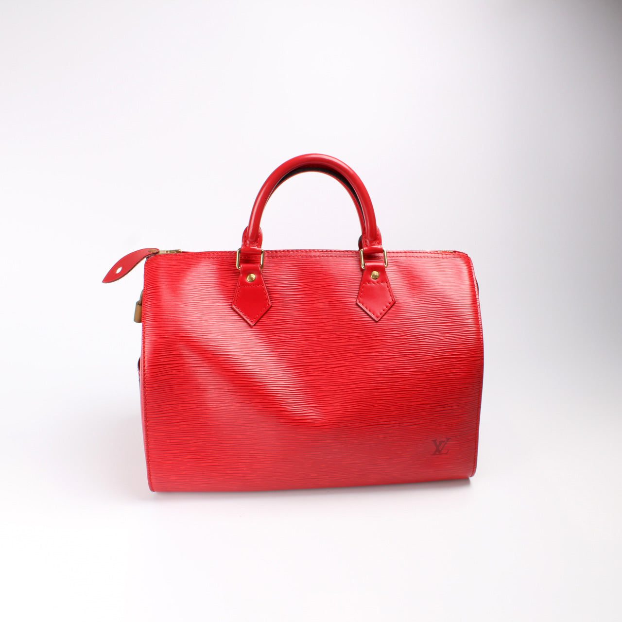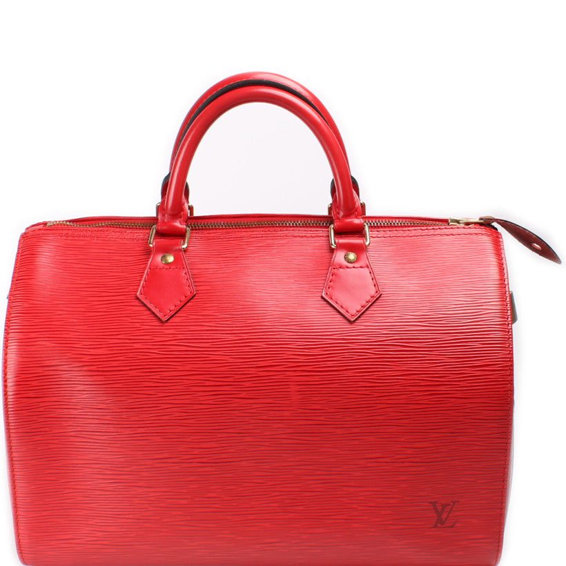 Louis Vuitton Speedy 30. The exterior is in the classic Louis Vuitton Epi leather.Â