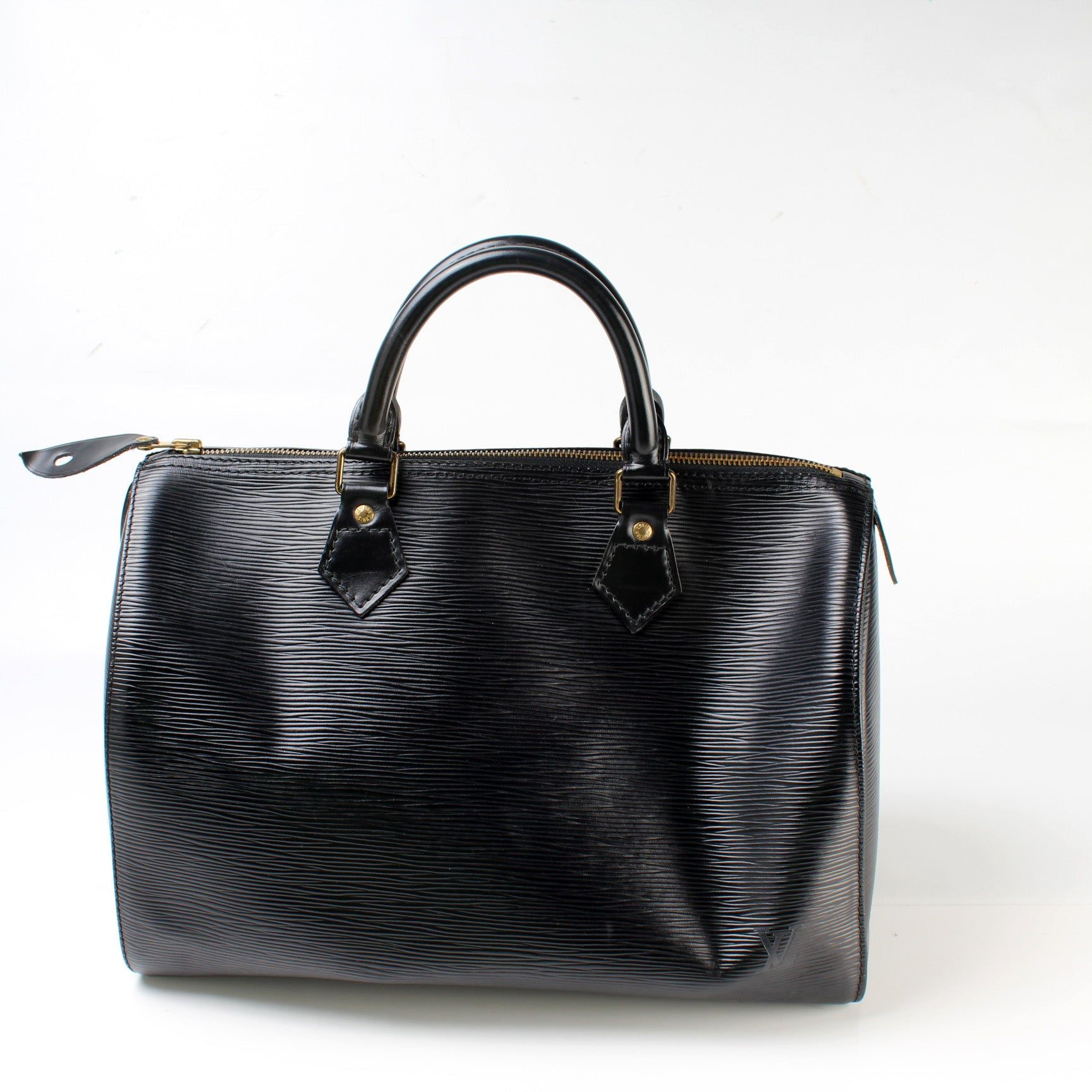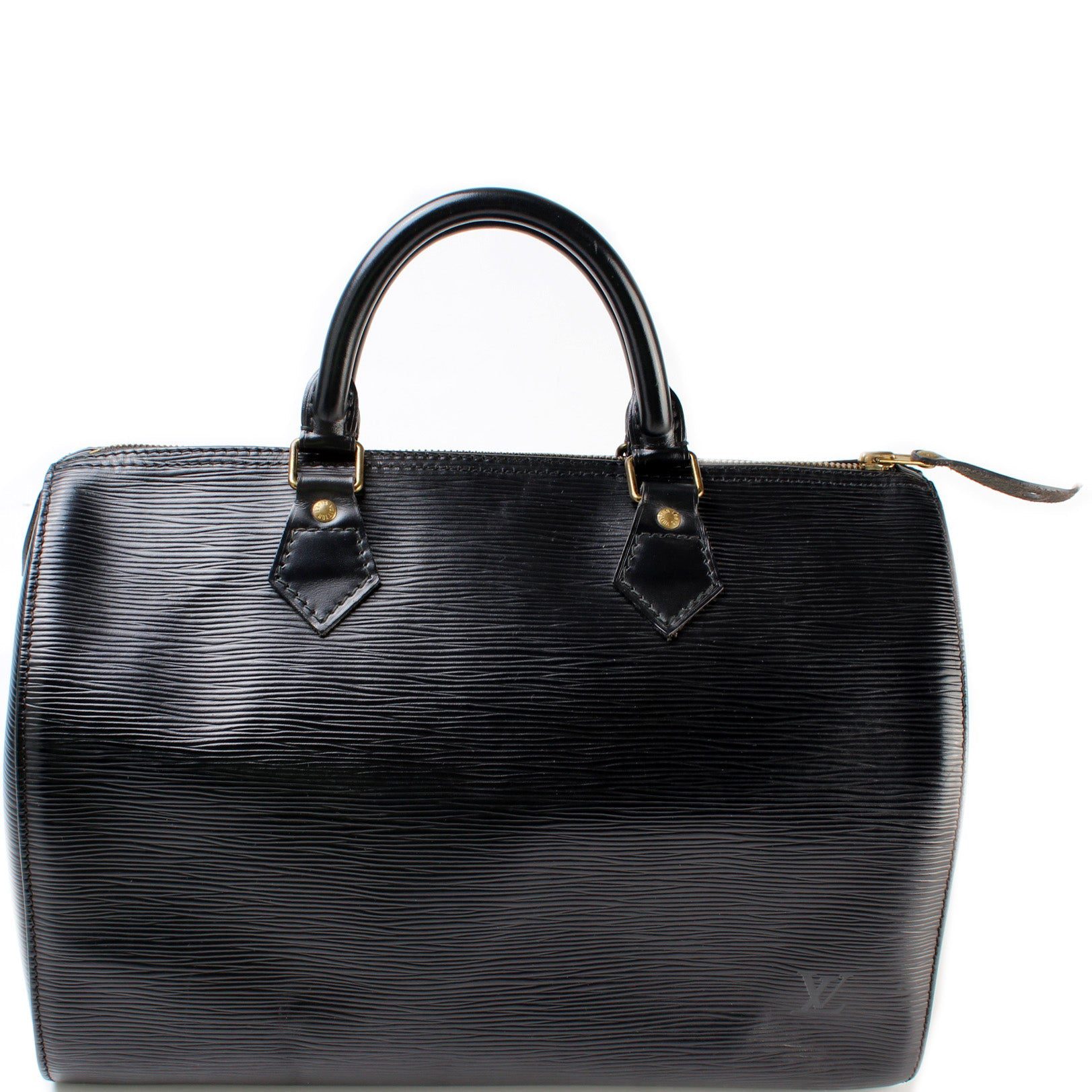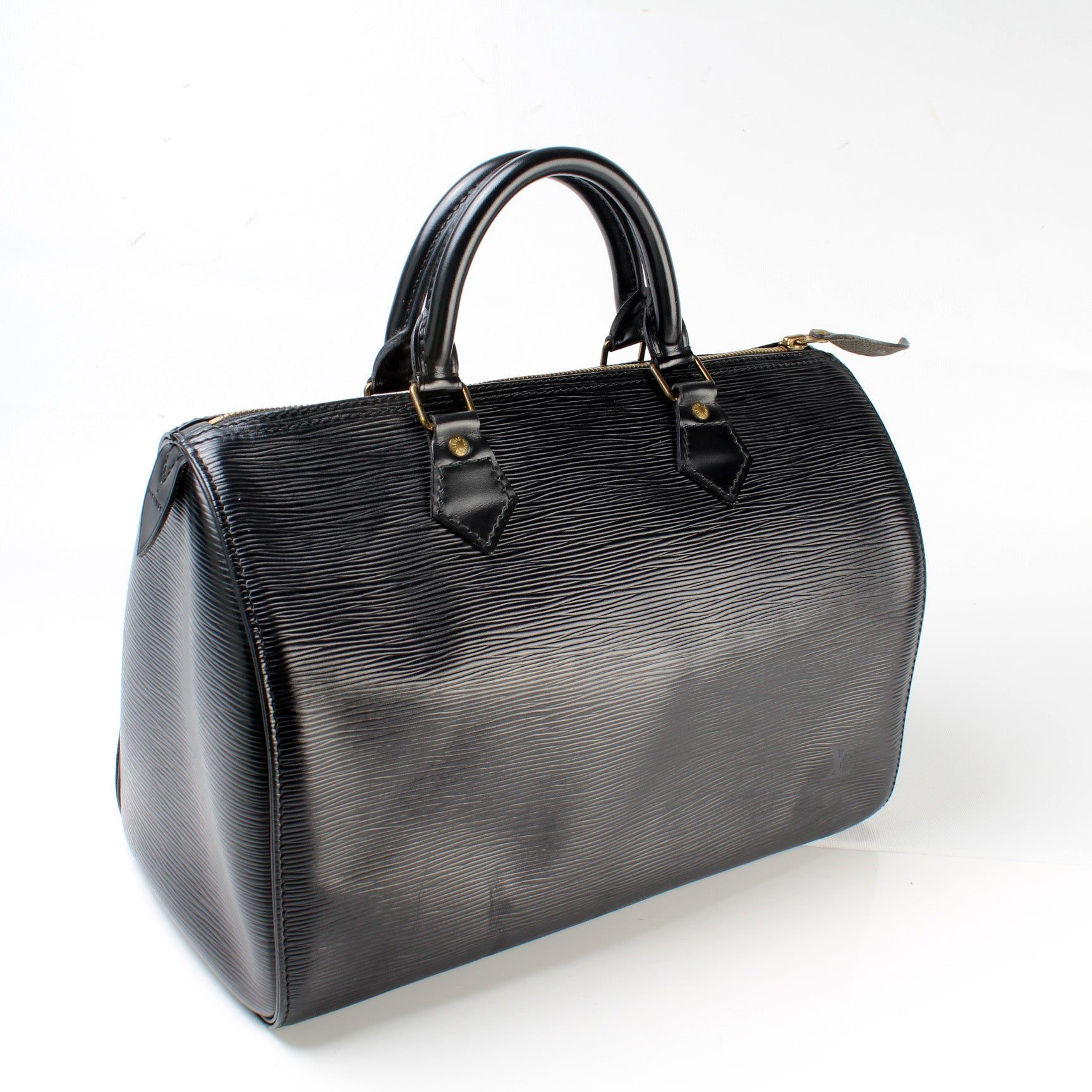 Louis Vuitton Speedy 30. The exterior is in the classic Louis Vuitton Epi leather.Â
