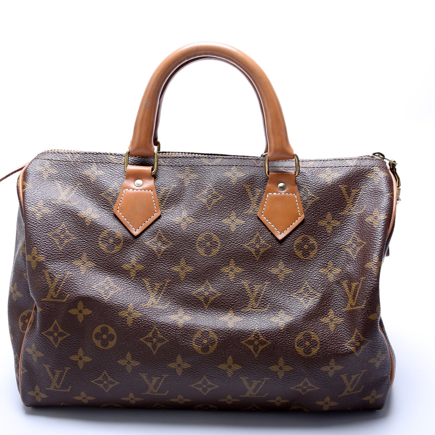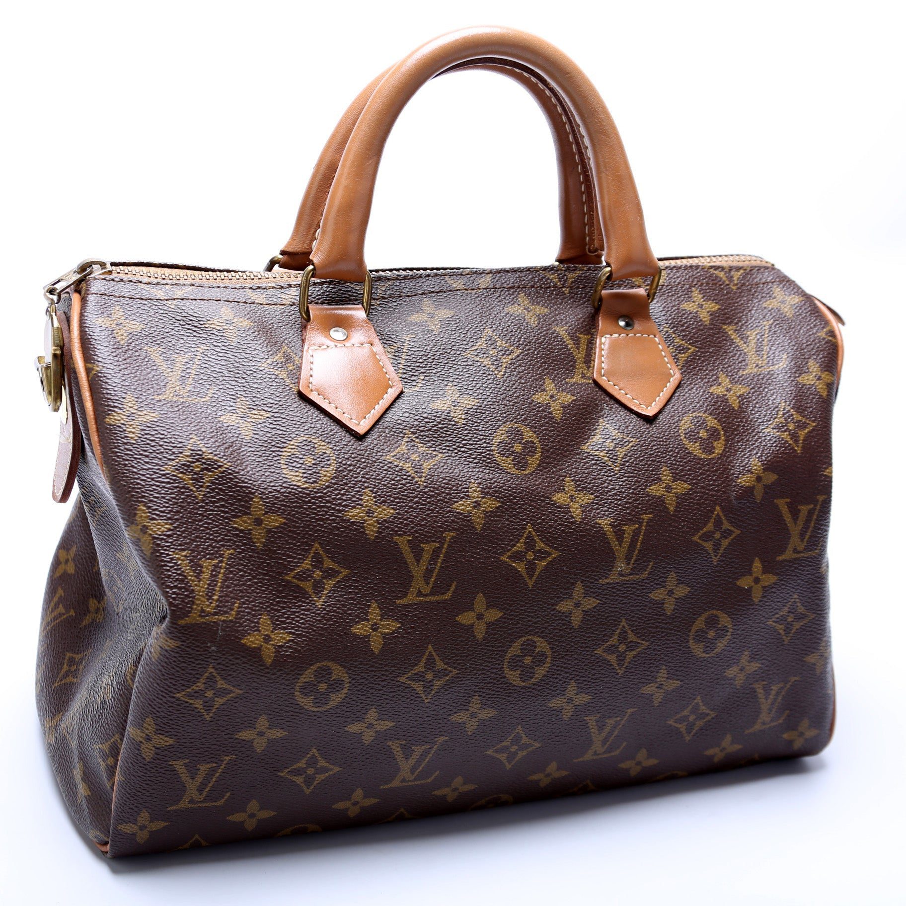 Louis Vuitton Speedy 30 French Co. The exterior is in the classic Louis Vuitton Monogram coated canvas.Â