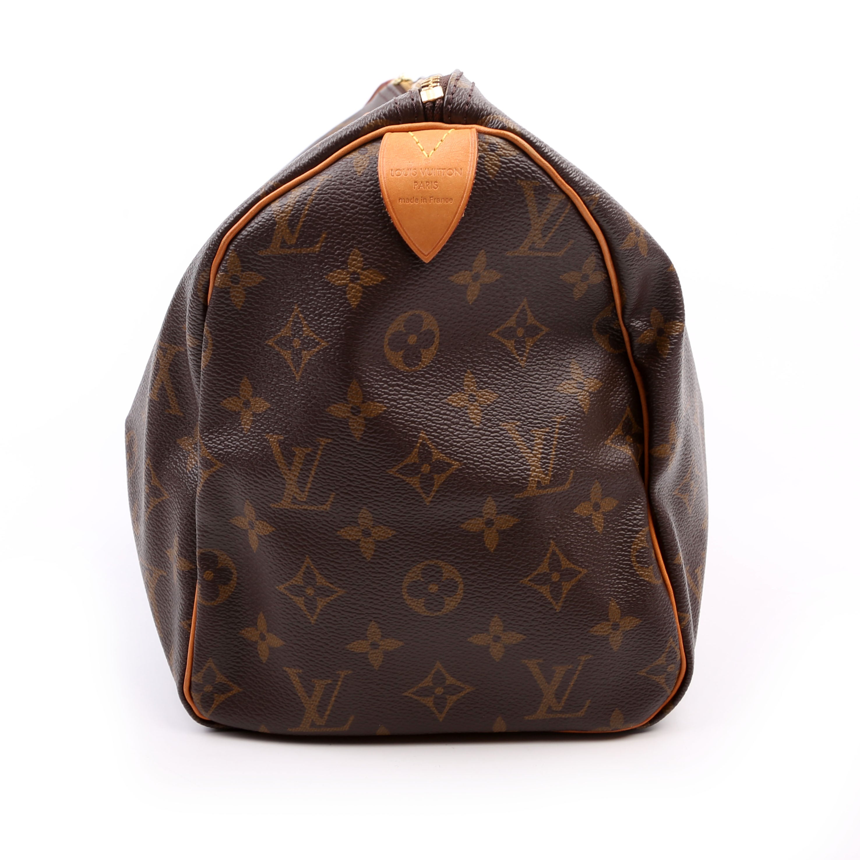 Louis Vuitton Speedy 30 . The exterior is in the classic Louis Vuitton Monogram coated canvas.