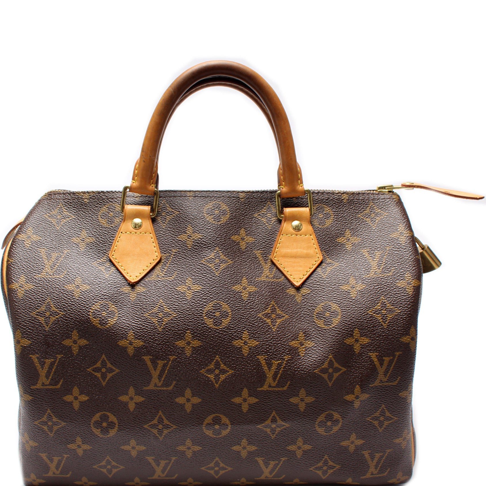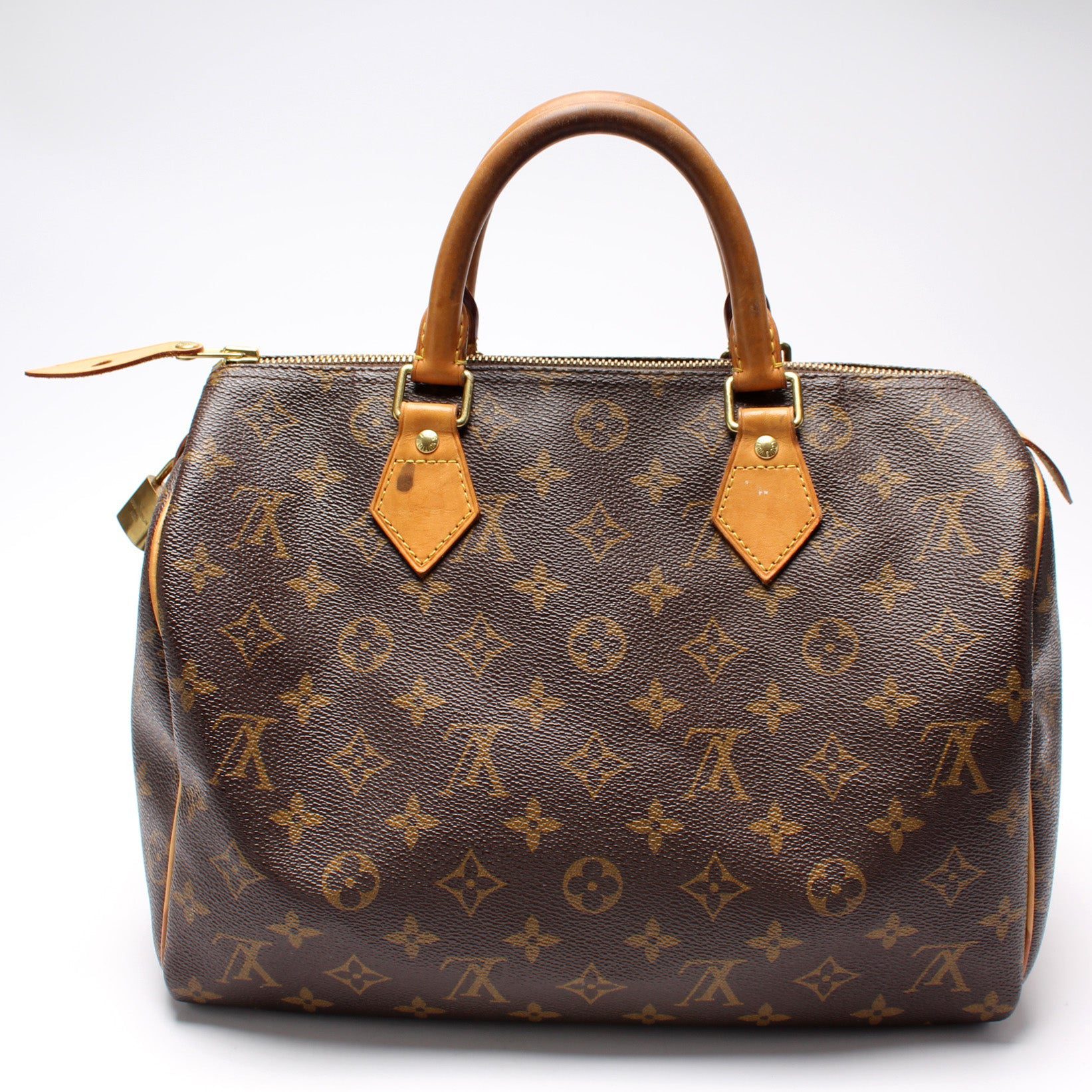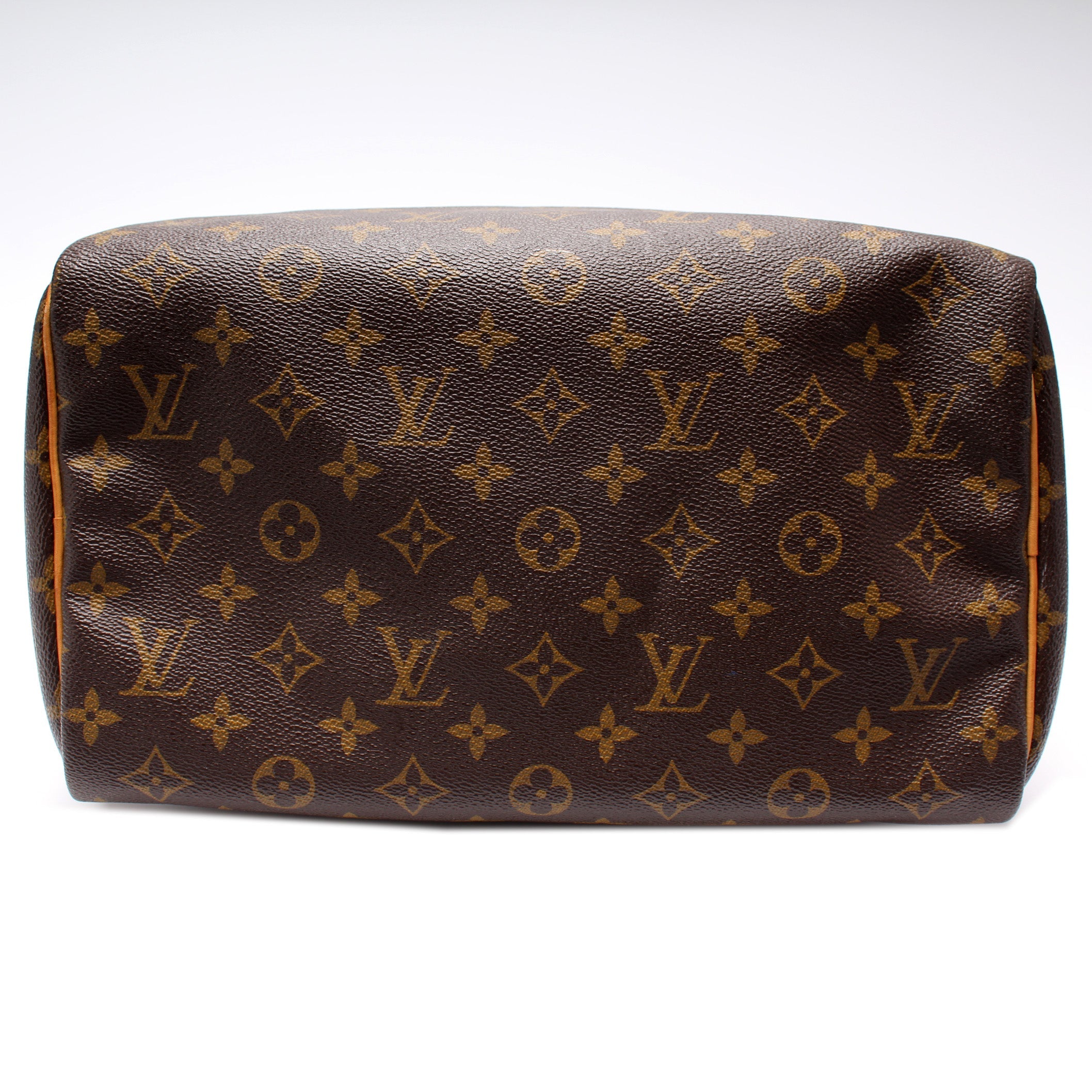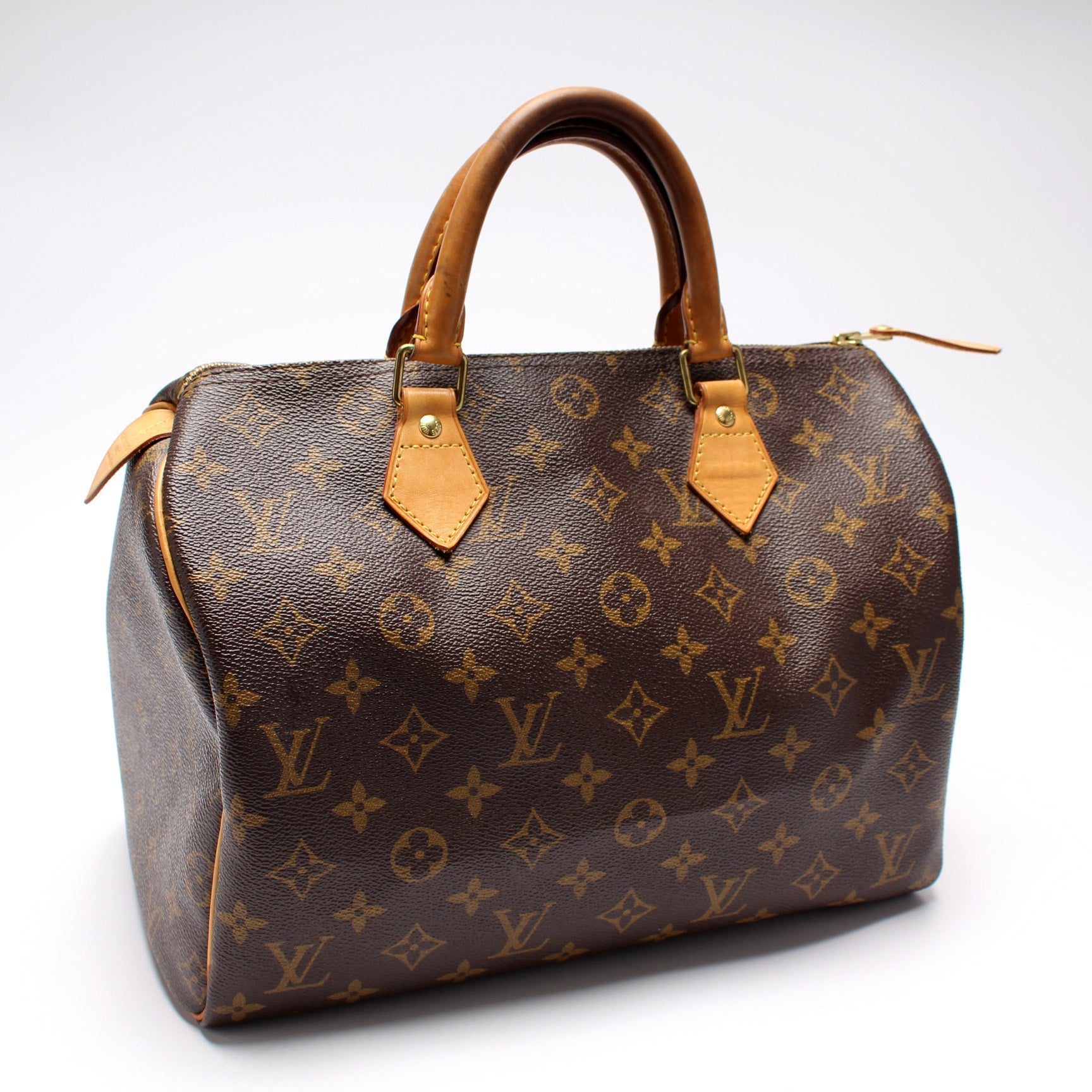 Louis Vuitton Speedy 30. The exterior is in the classic Louis Vuitton Monogram coated canvas.Â