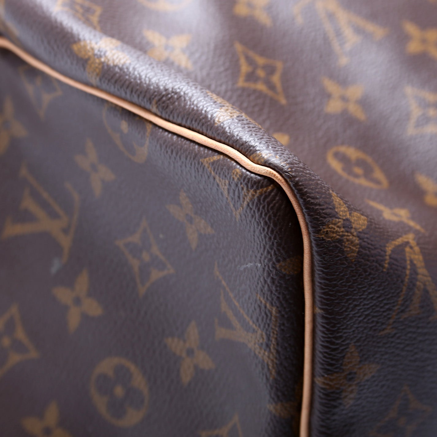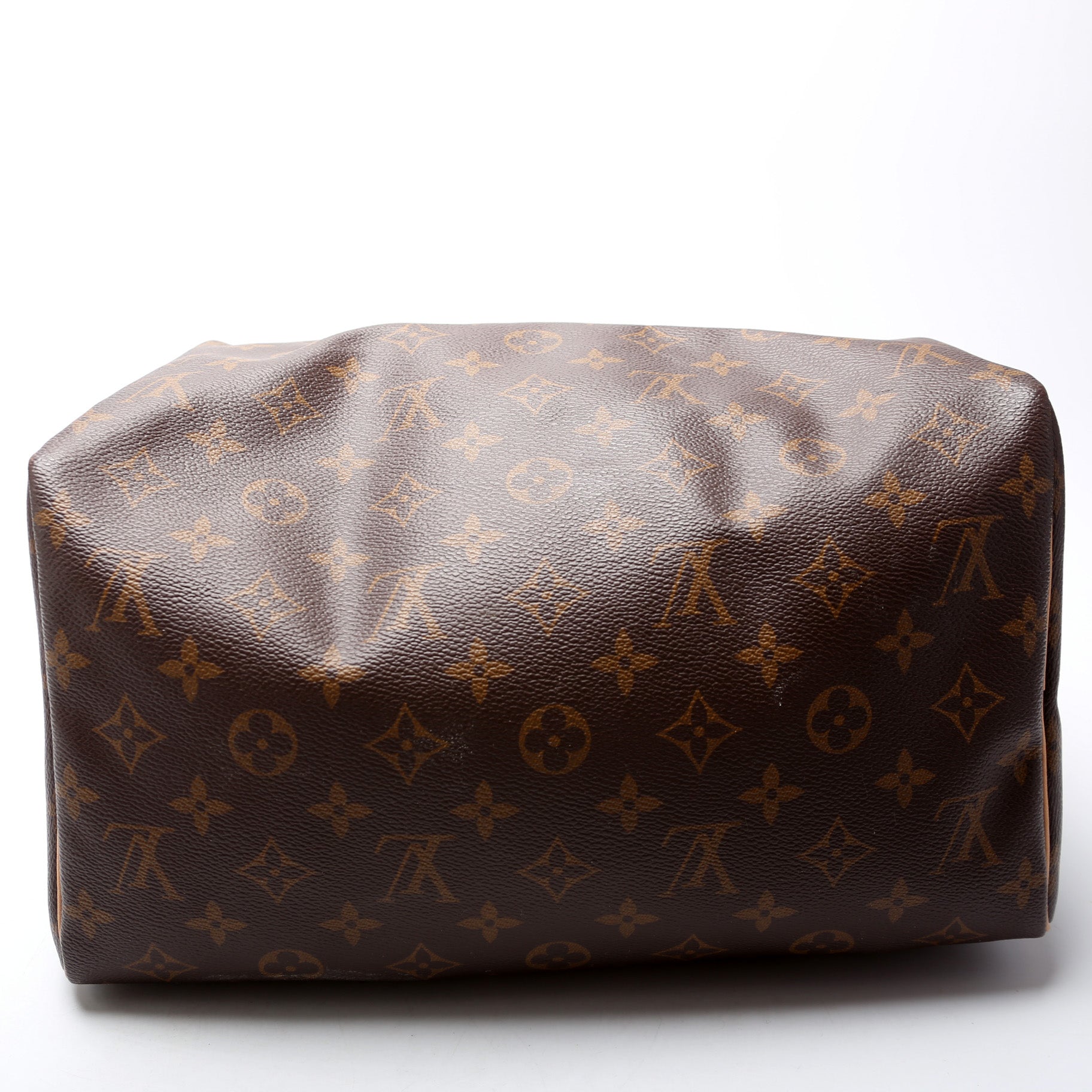 Louis Vuitton Speedy 30. The exterior is in the classic Louis Vuitton Monogram coated canvas.Â
