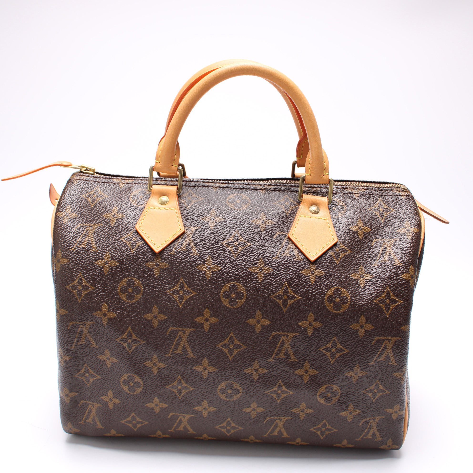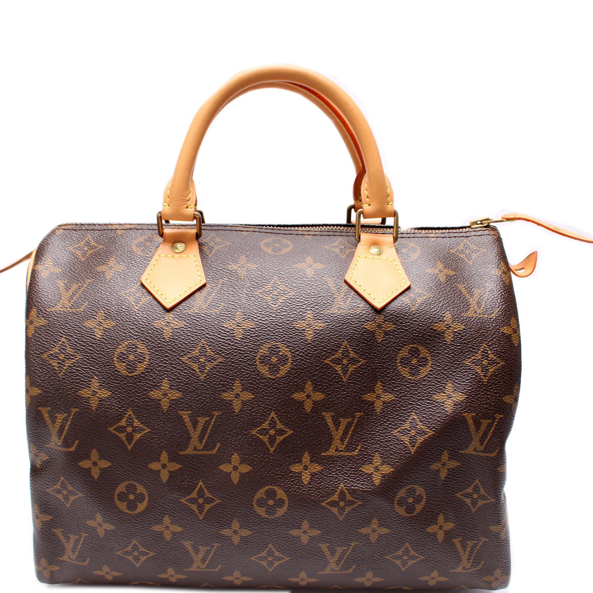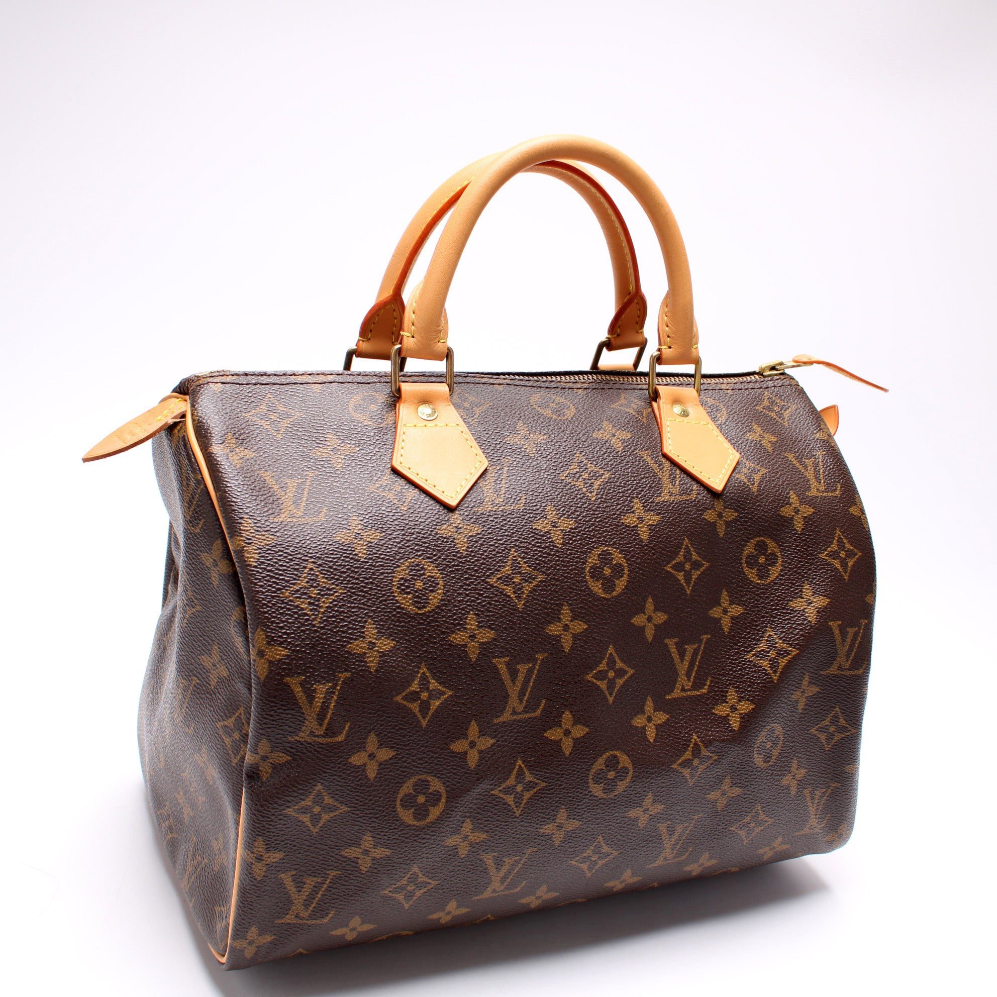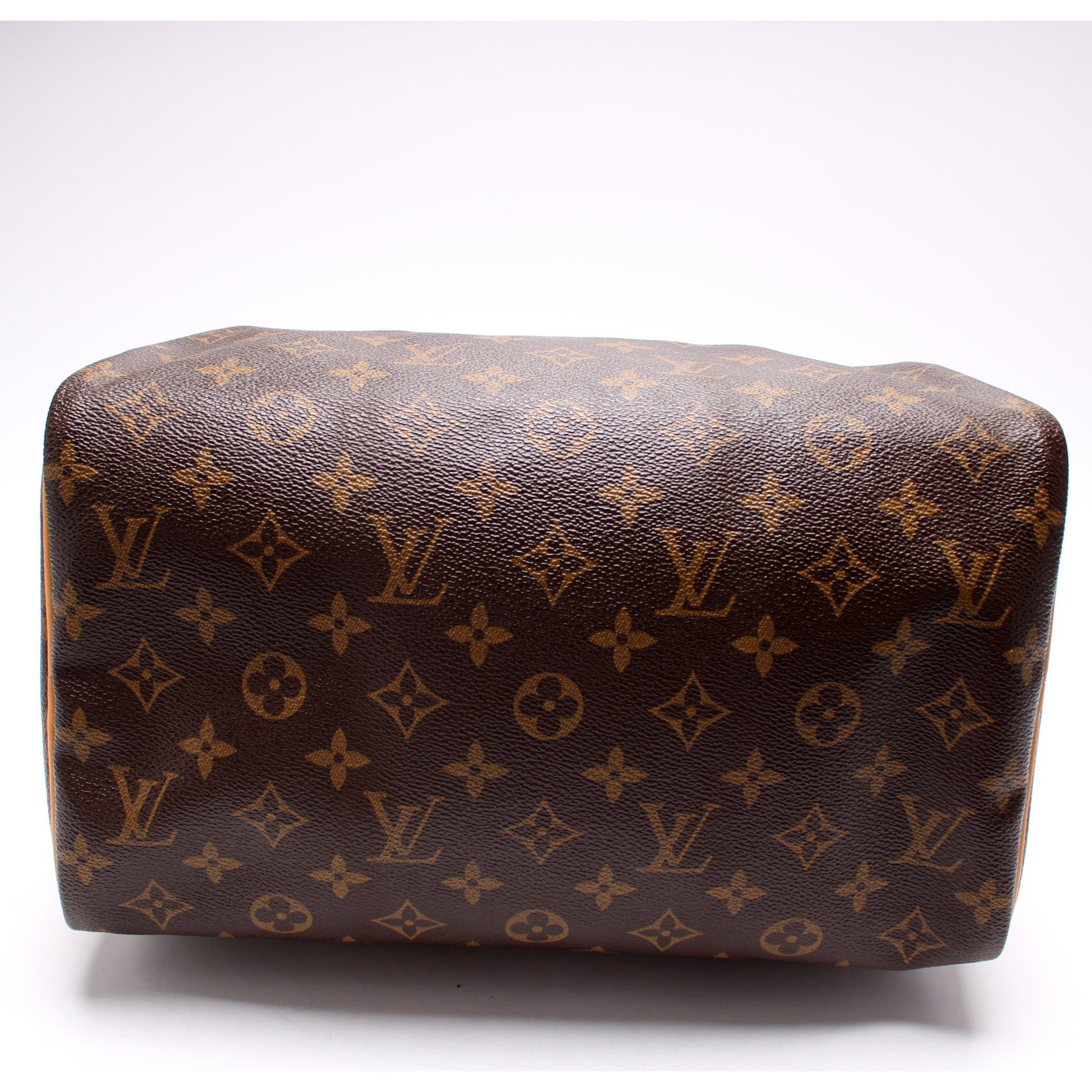 Louis Vuitton Speedy 30. The exterior is in the classic Louis Vuitton Monogram coated canvas.Â