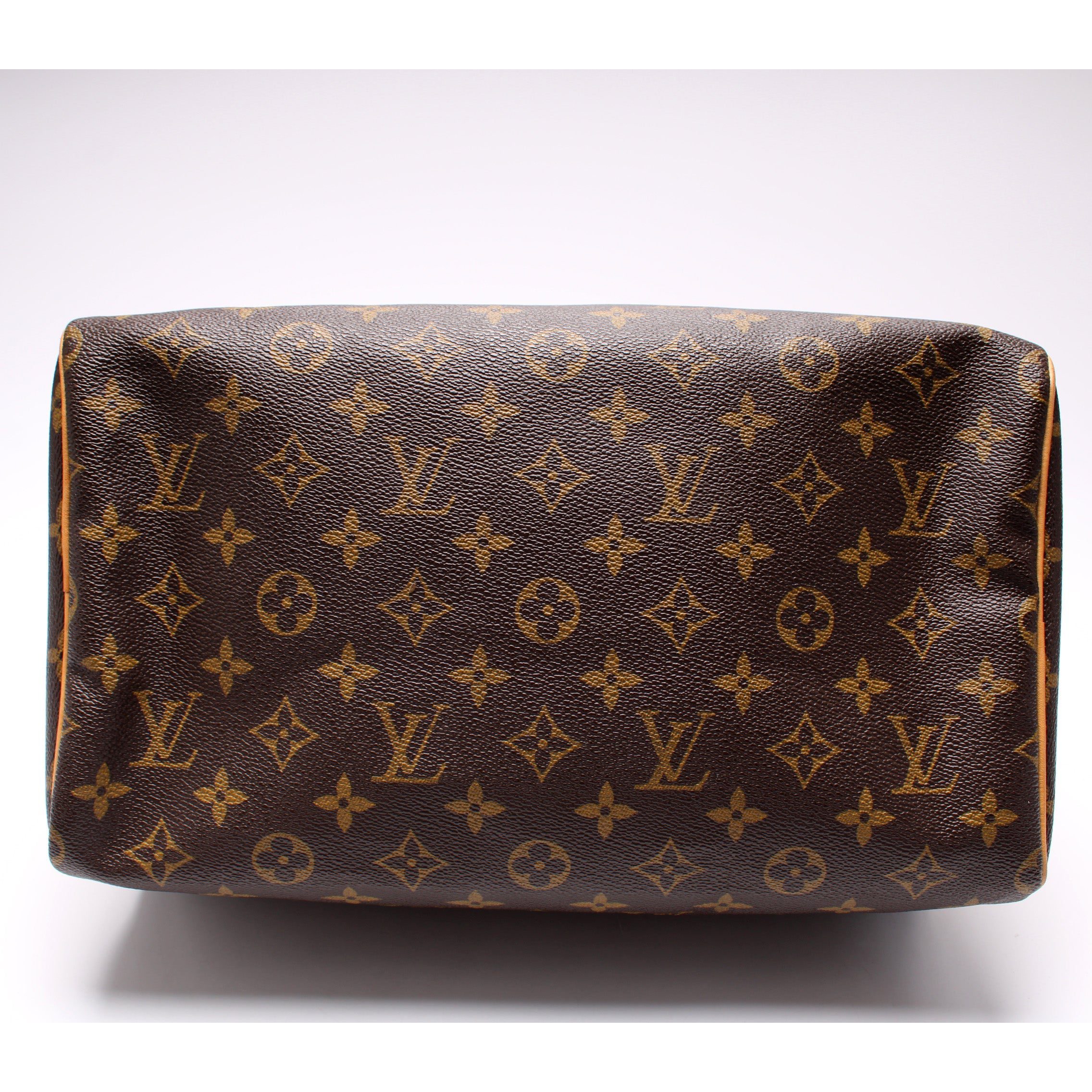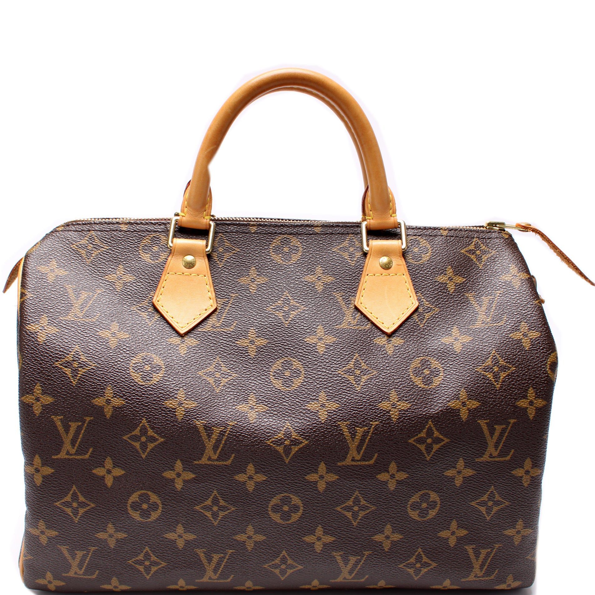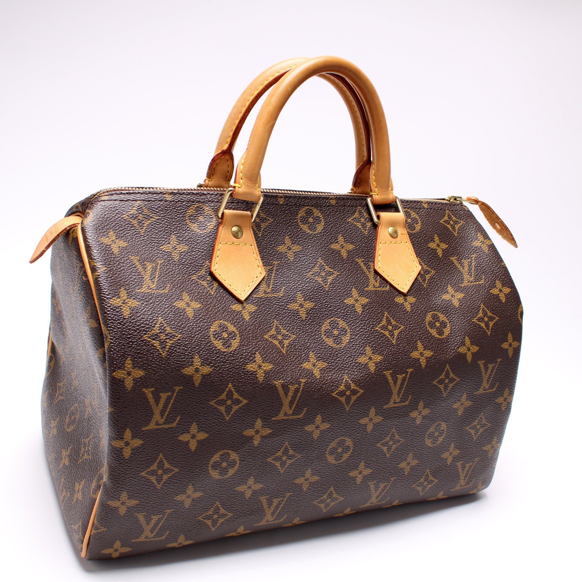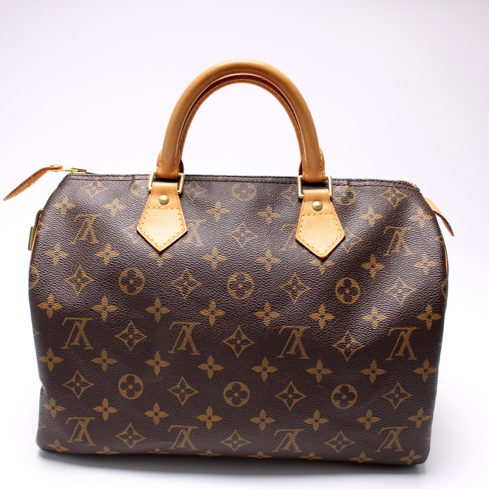Louis Vuitton Speedy 30. The exterior is in the classic Louis Vuitton Monogram coated canvas.Â