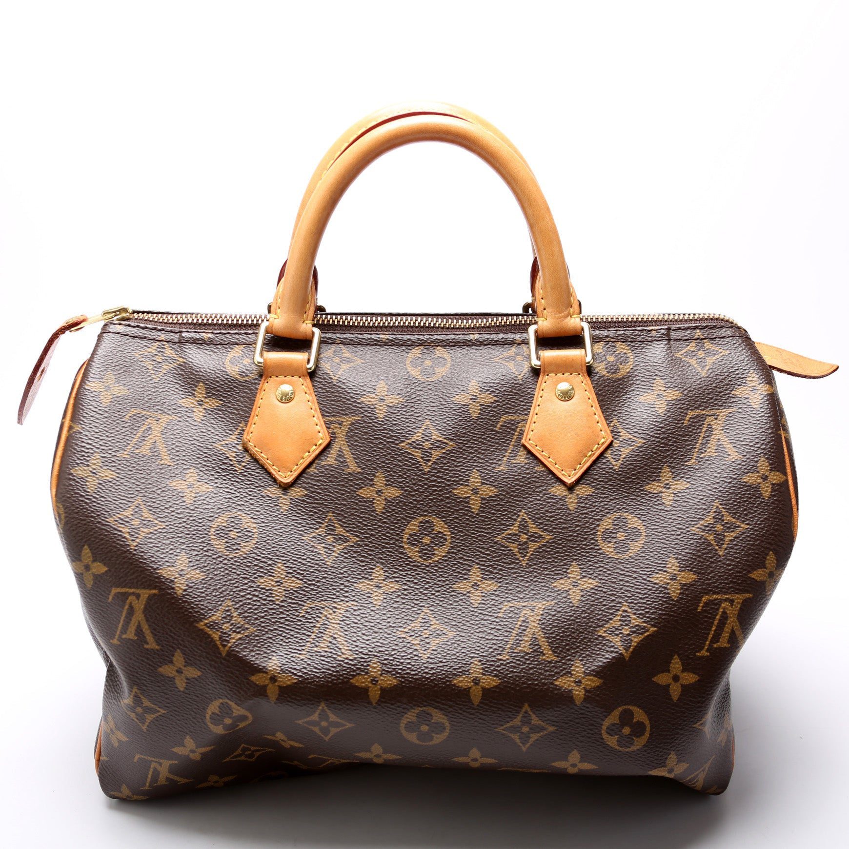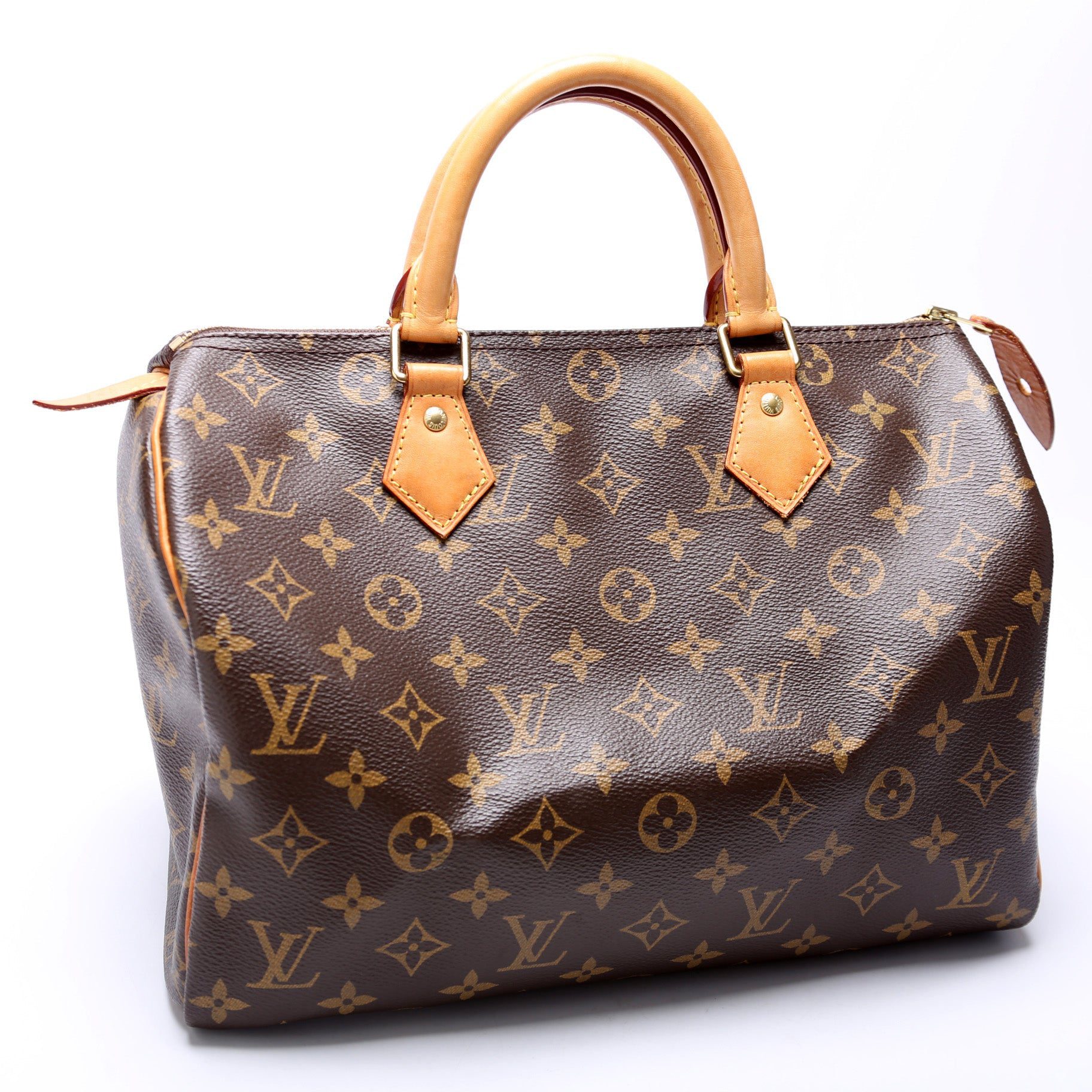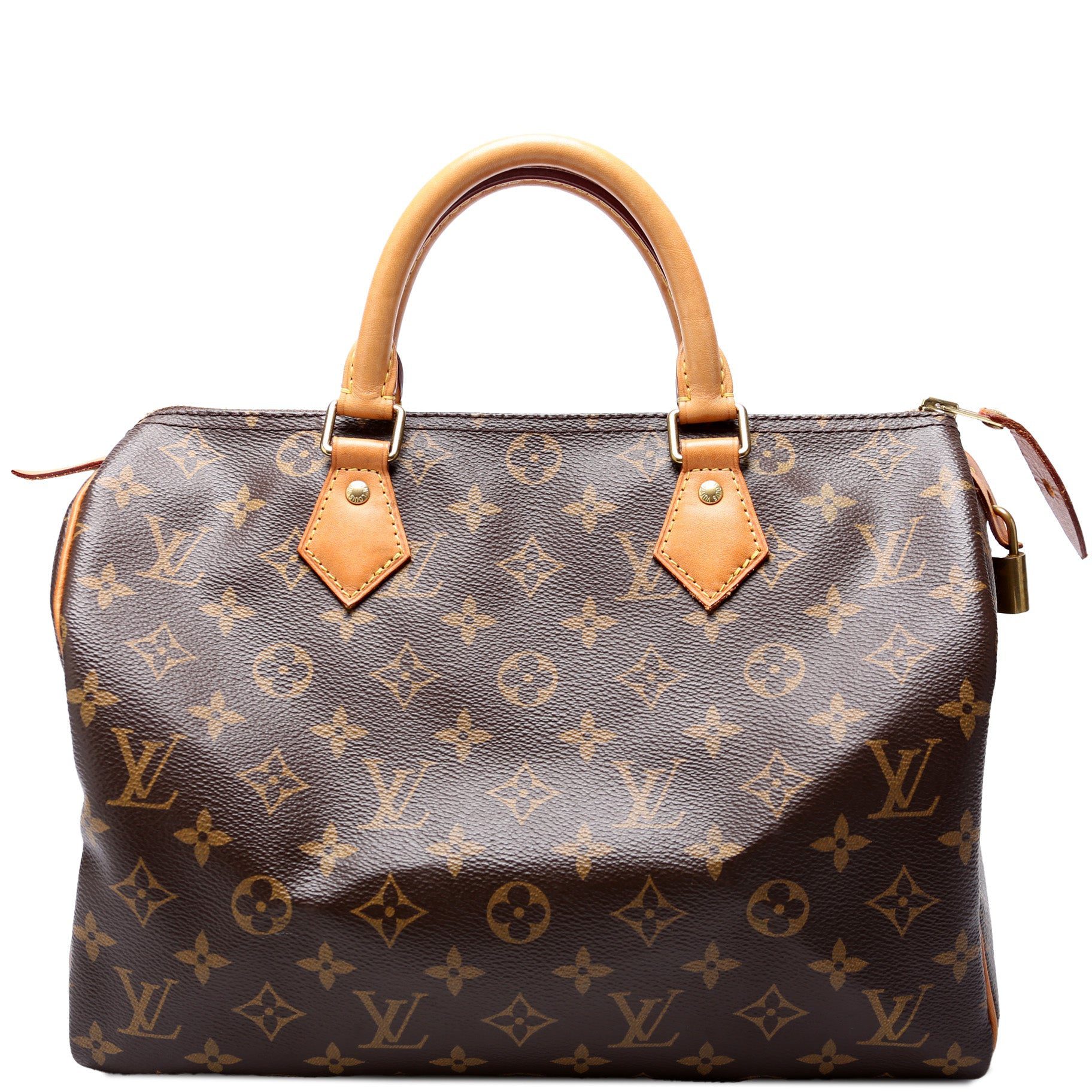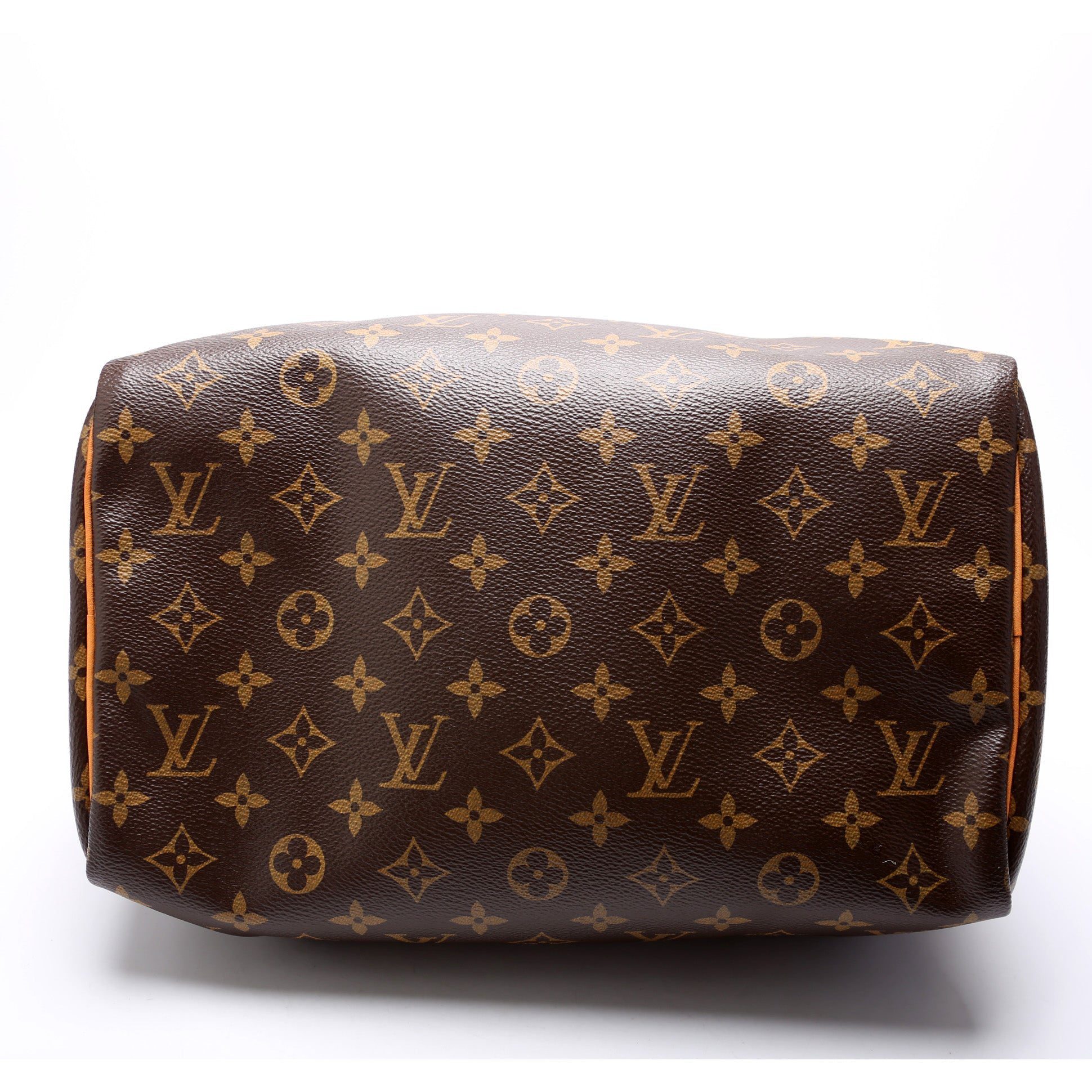 Louis Vuitton Speedy 30. The exterior is in the classic Louis Vuitton Monogram coated canvas.Â