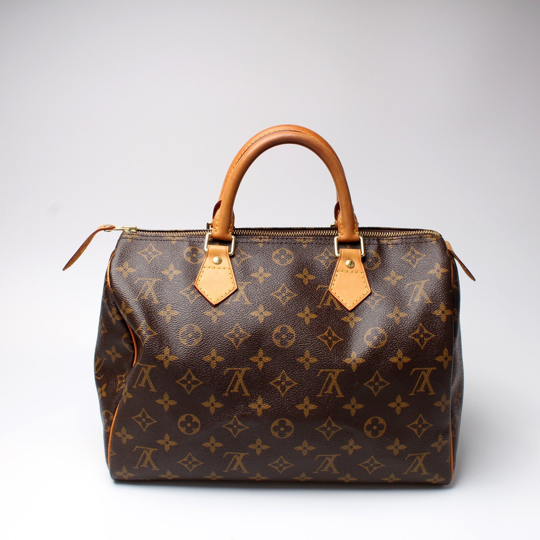 Louis Vuitton Speedy 30. The exterior is in the classic Louis Vuitton Monogram coated canvas.Â