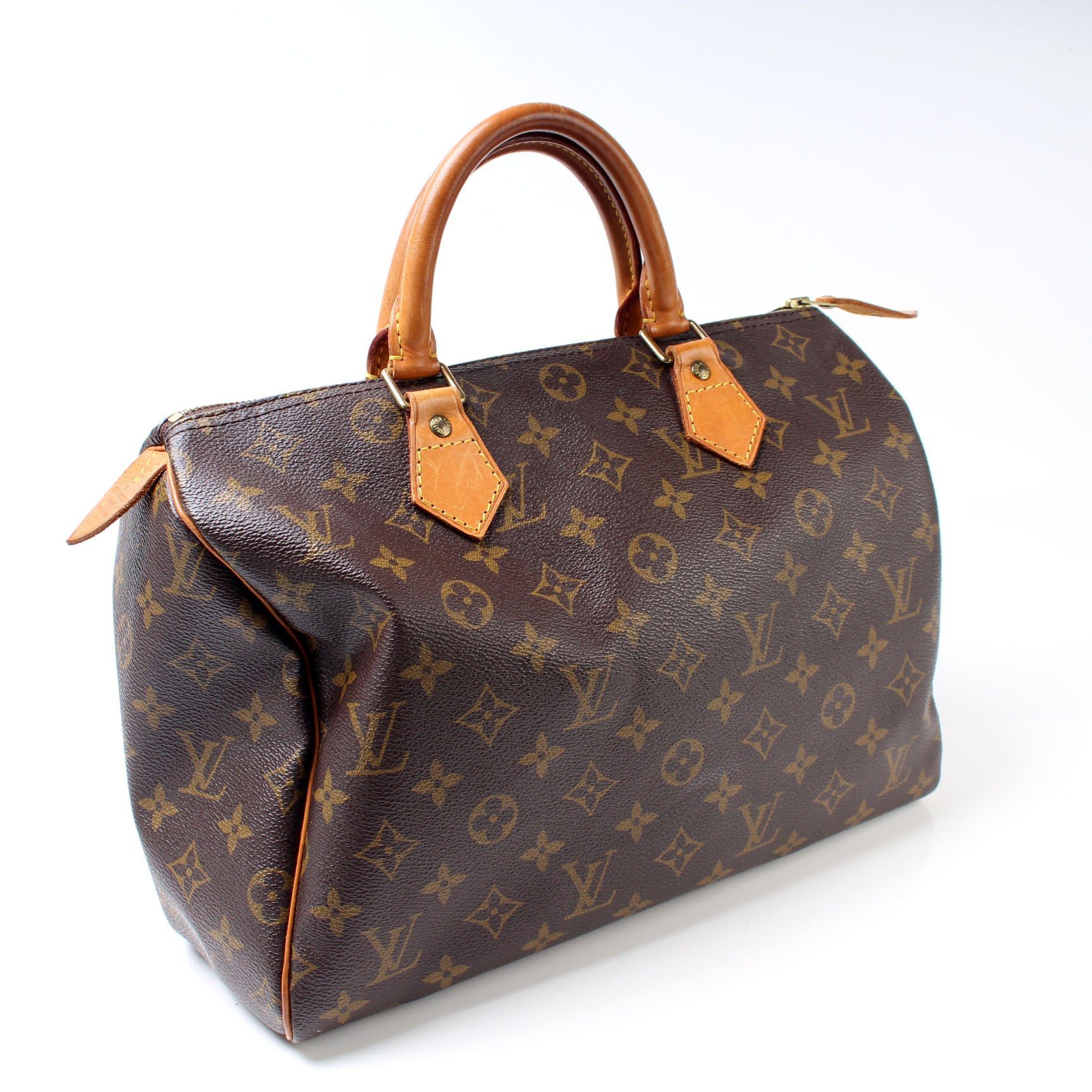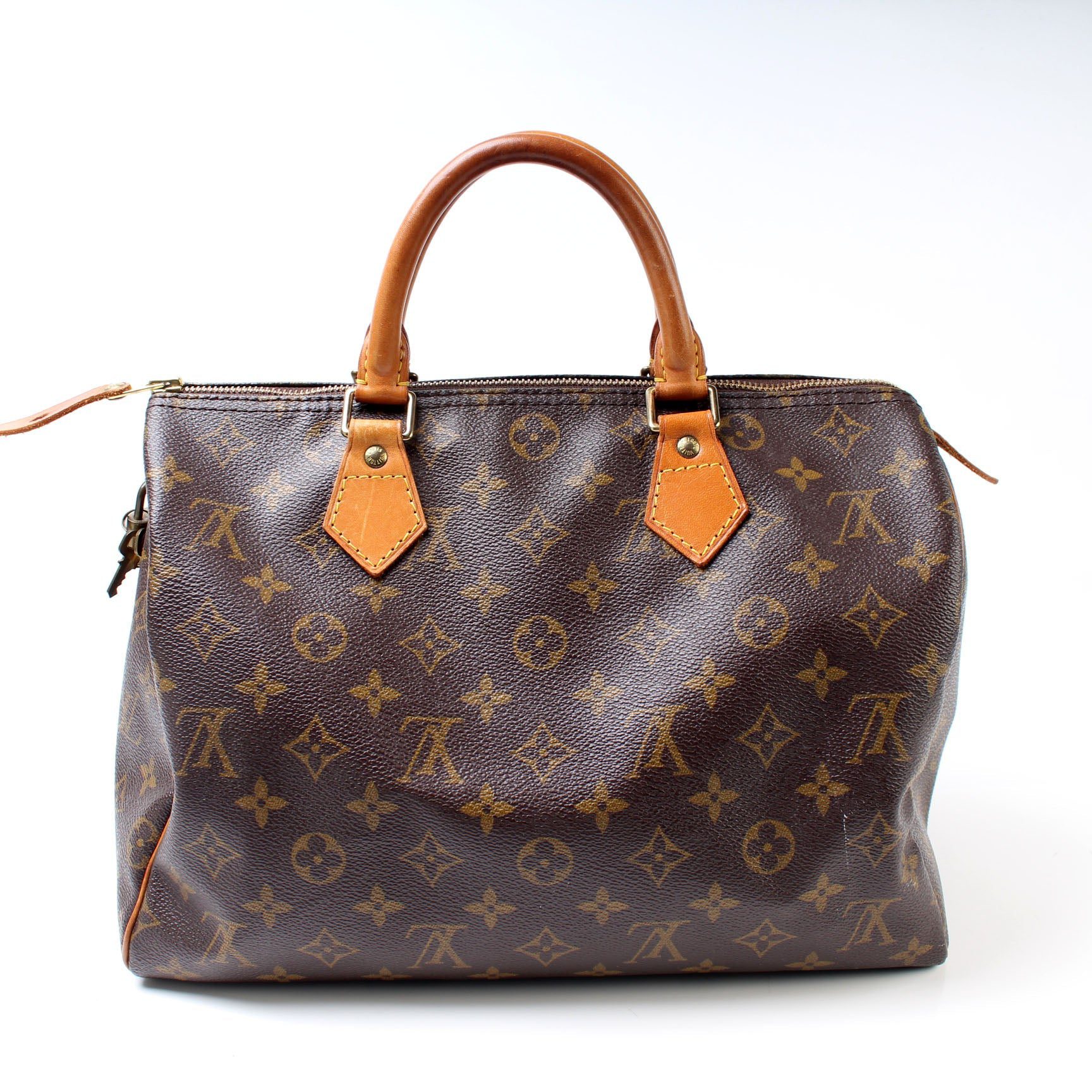 Louis Vuitton Speedy 30. The exterior is in the classic Louis Vuitton Monogram coated canvas.Â