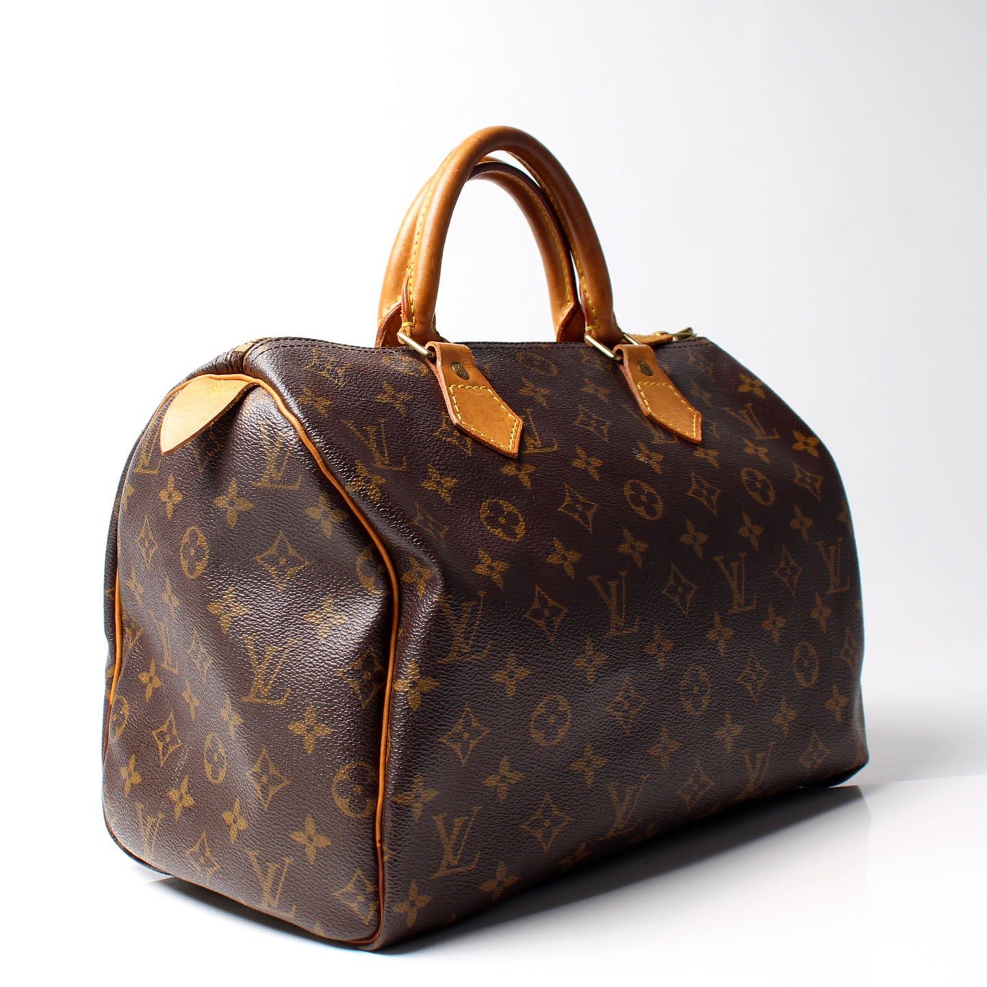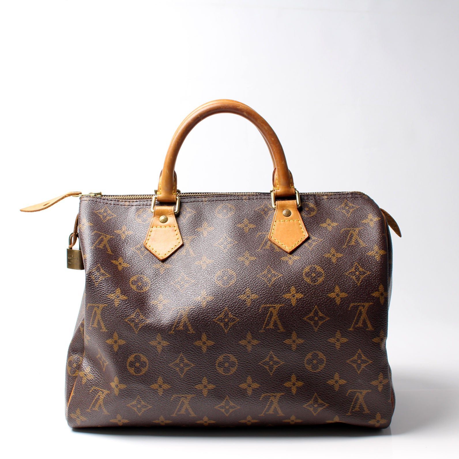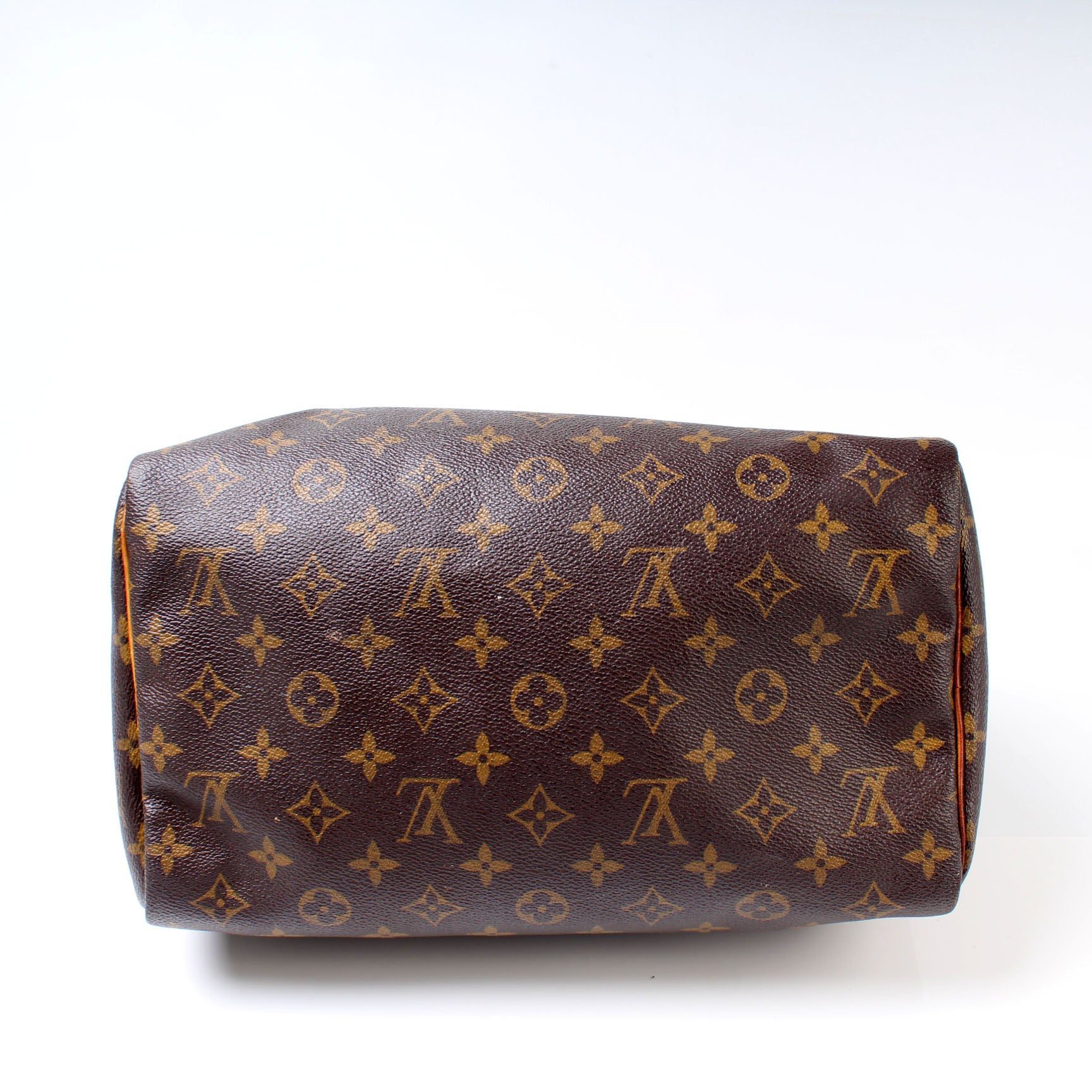Louis Vuitton Speedy 30. The exterior is in the classic Louis Vuitton Monogram coated canvas.Â