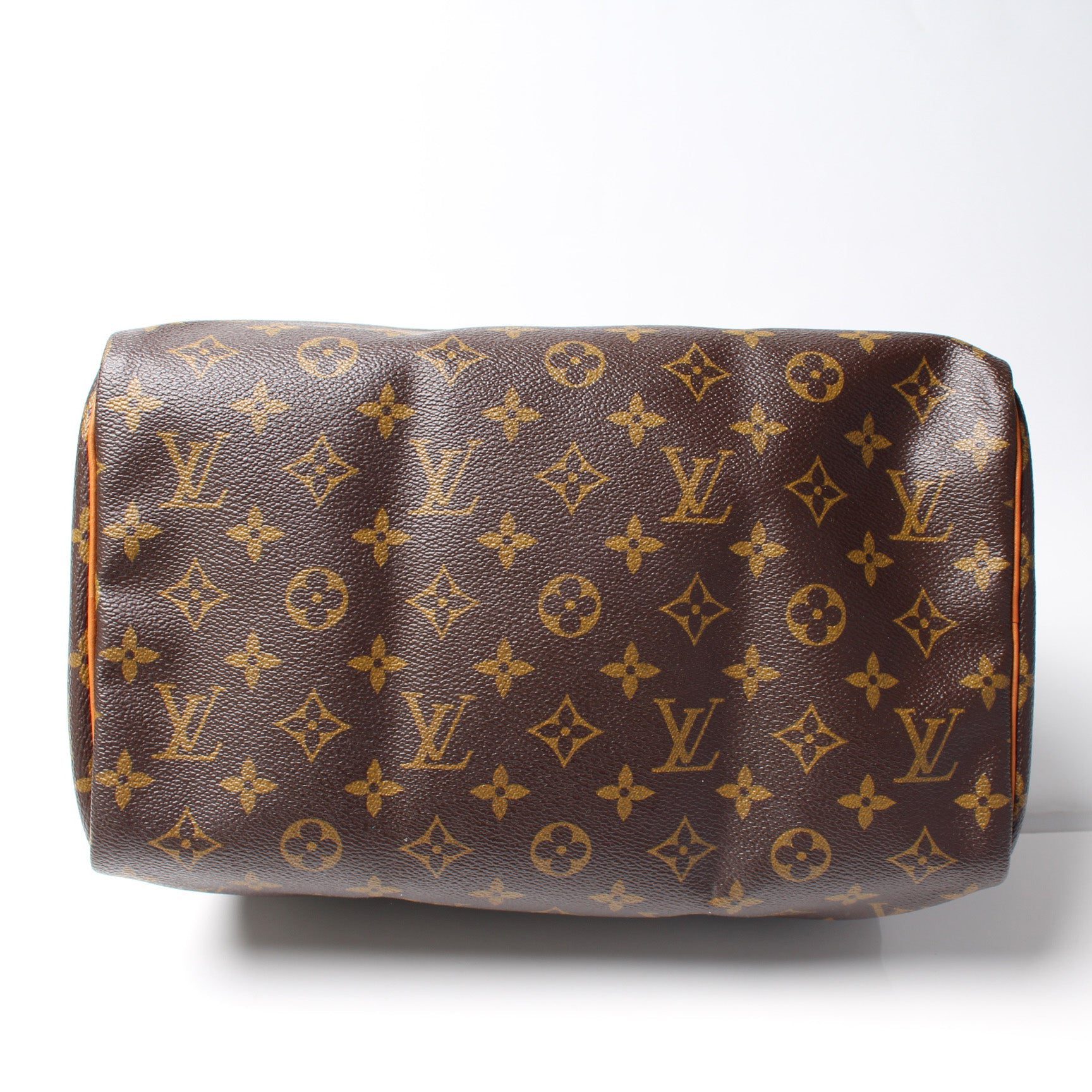 Louis Vuitton Speedy 30. The exterior is in the classic Louis Vuitton Monogram coated canvas.Â