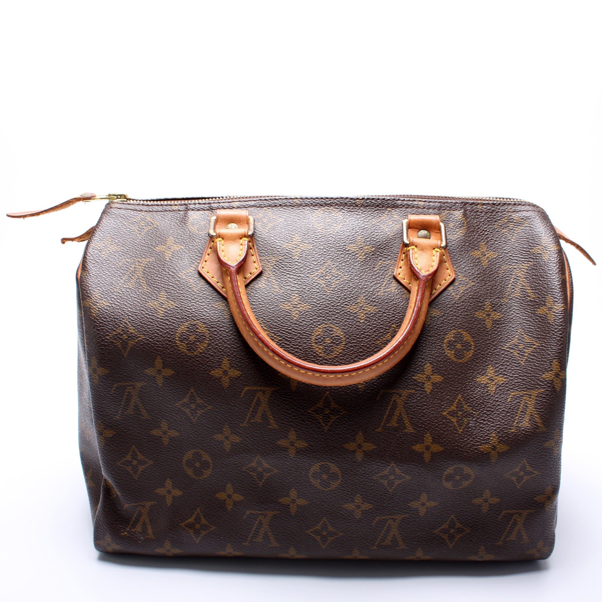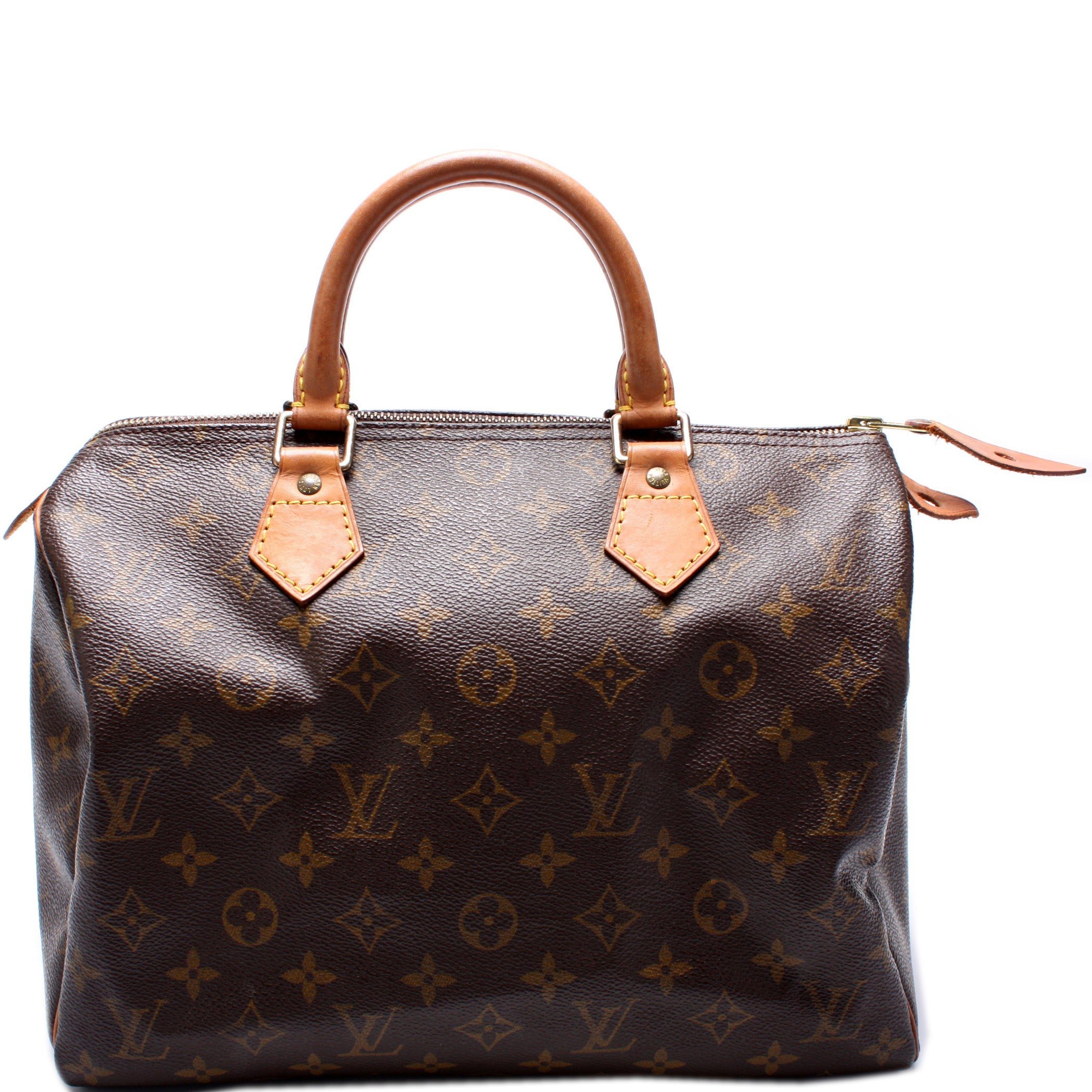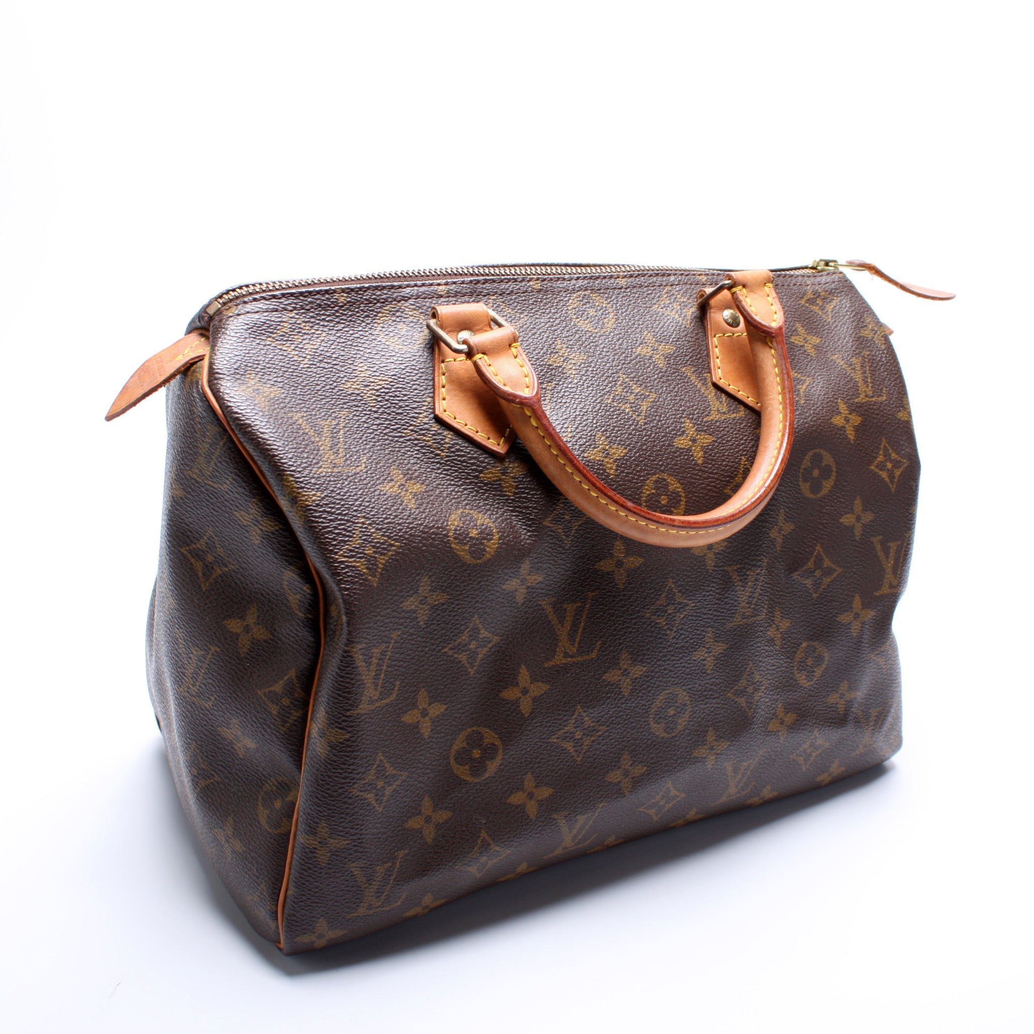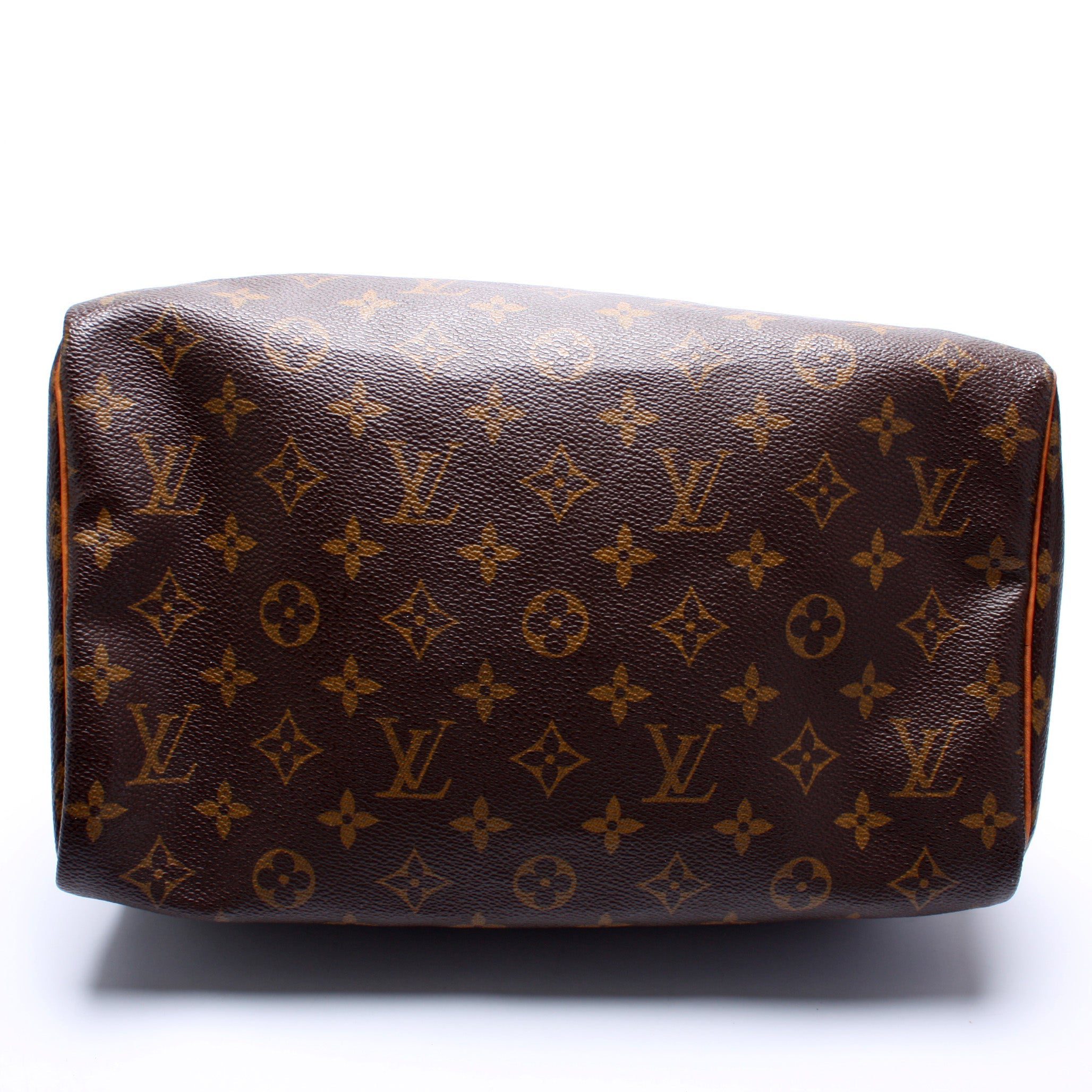Louis Vuitton Speedy 30. The exterior is in the classic Louis Vuitton Monogram coated canvas.Â