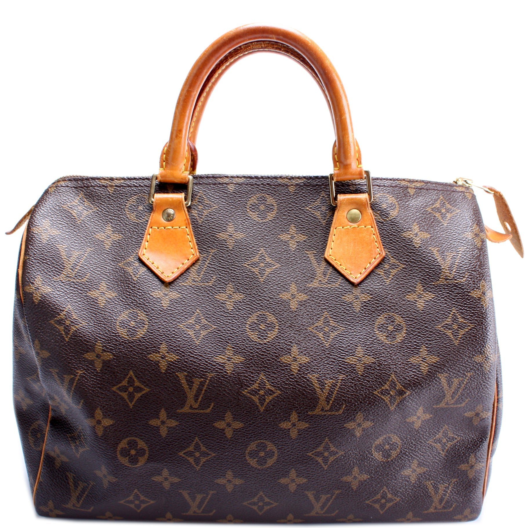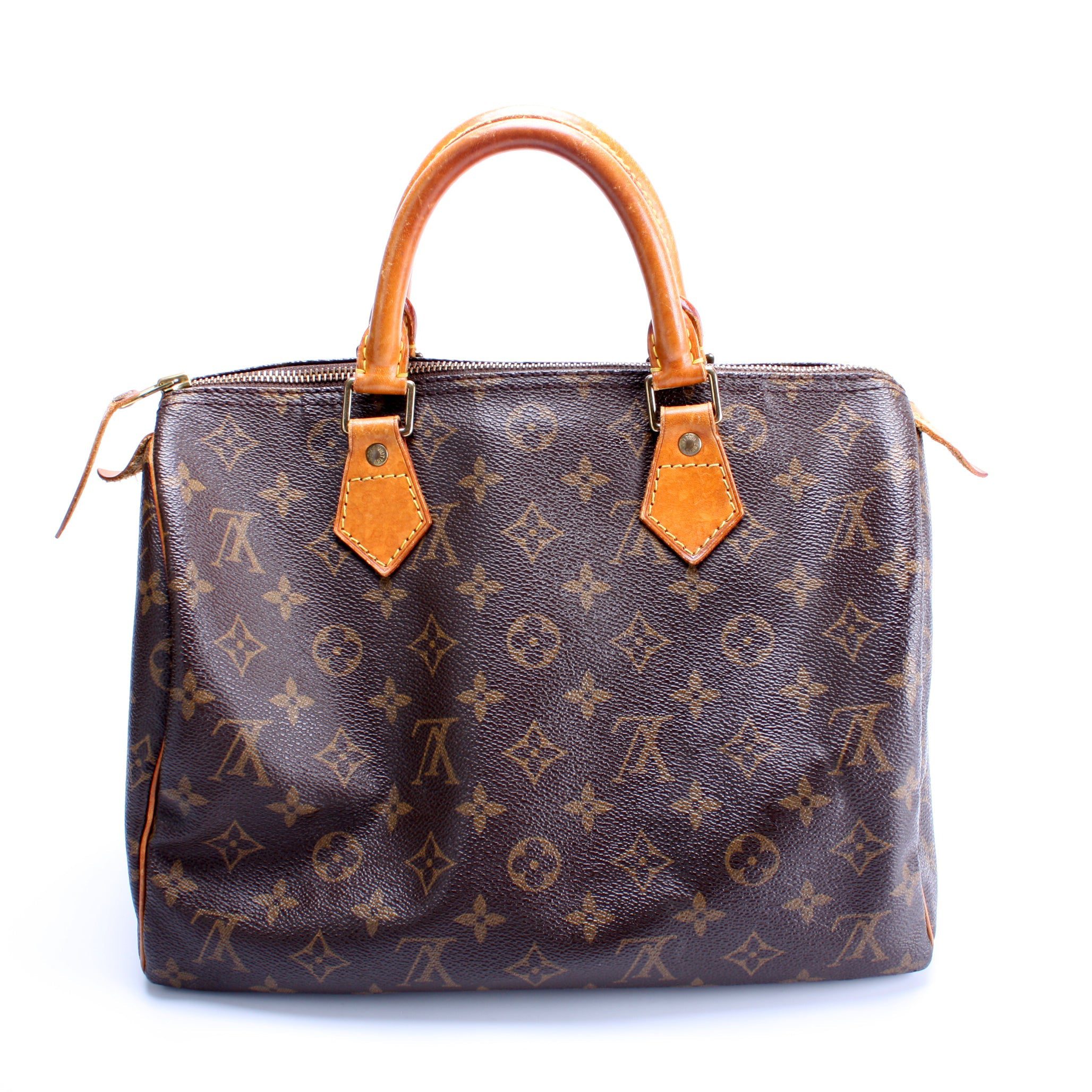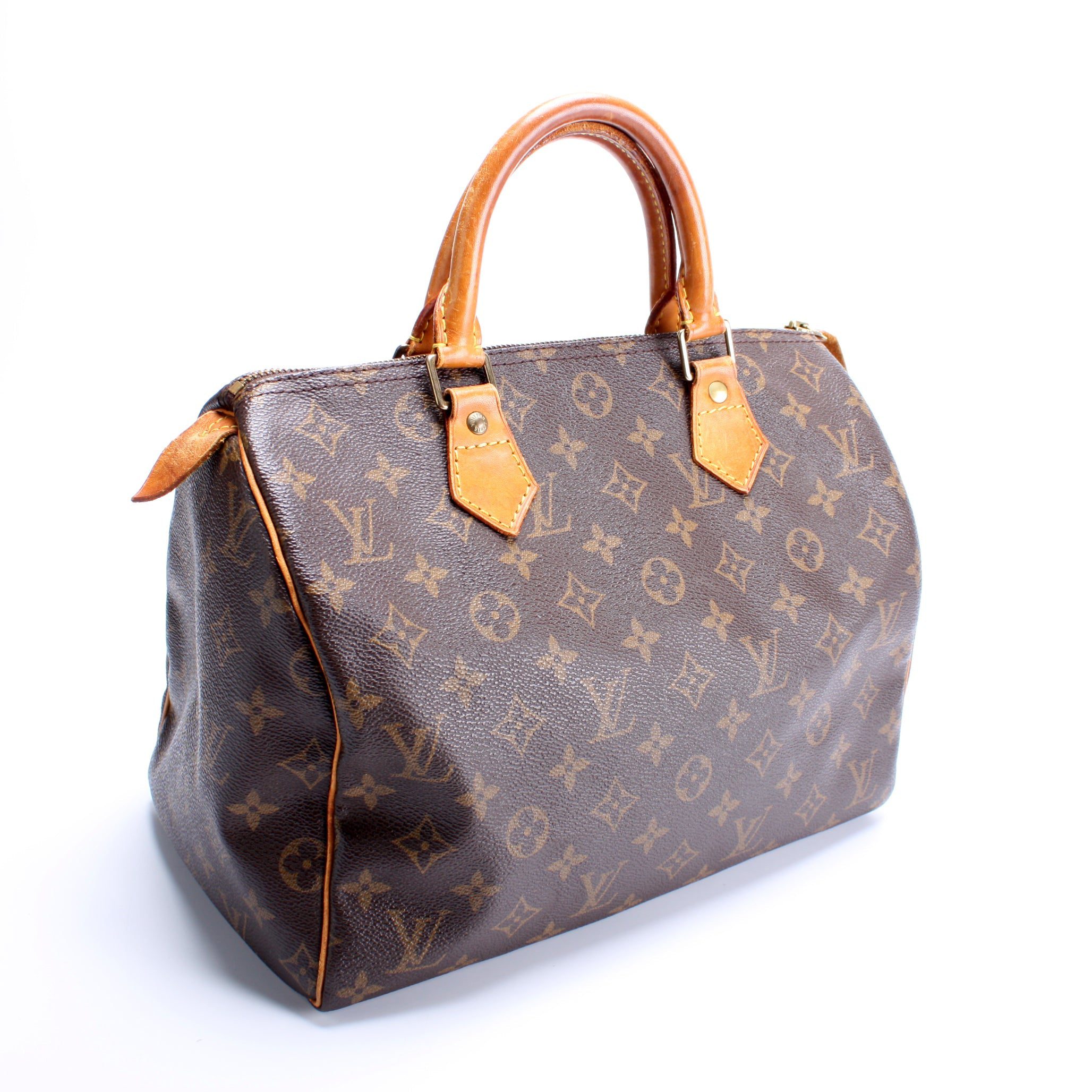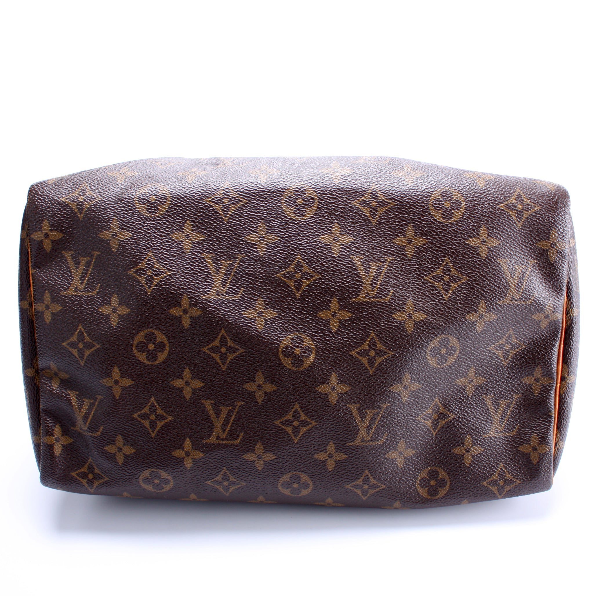 Louis Vuitton Speedy 30. The exterior is in the classic Louis Vuitton Monogram coated canvas.