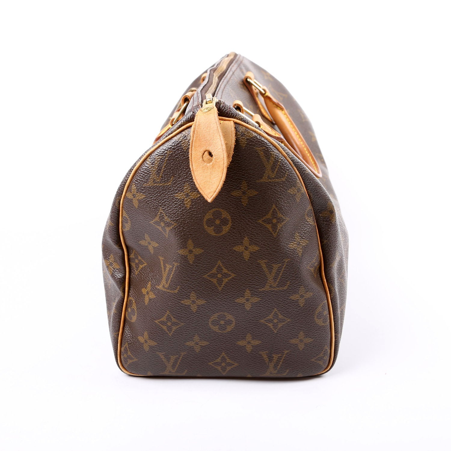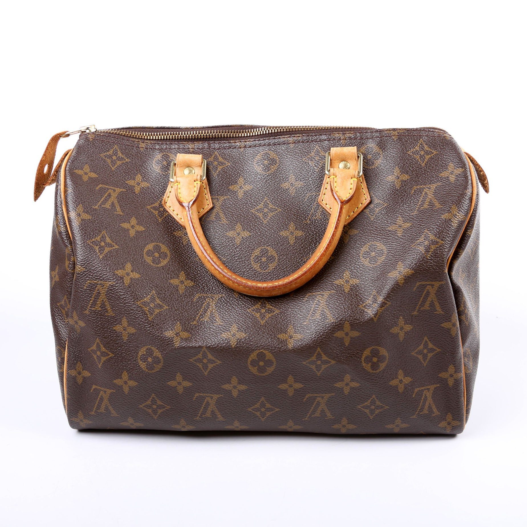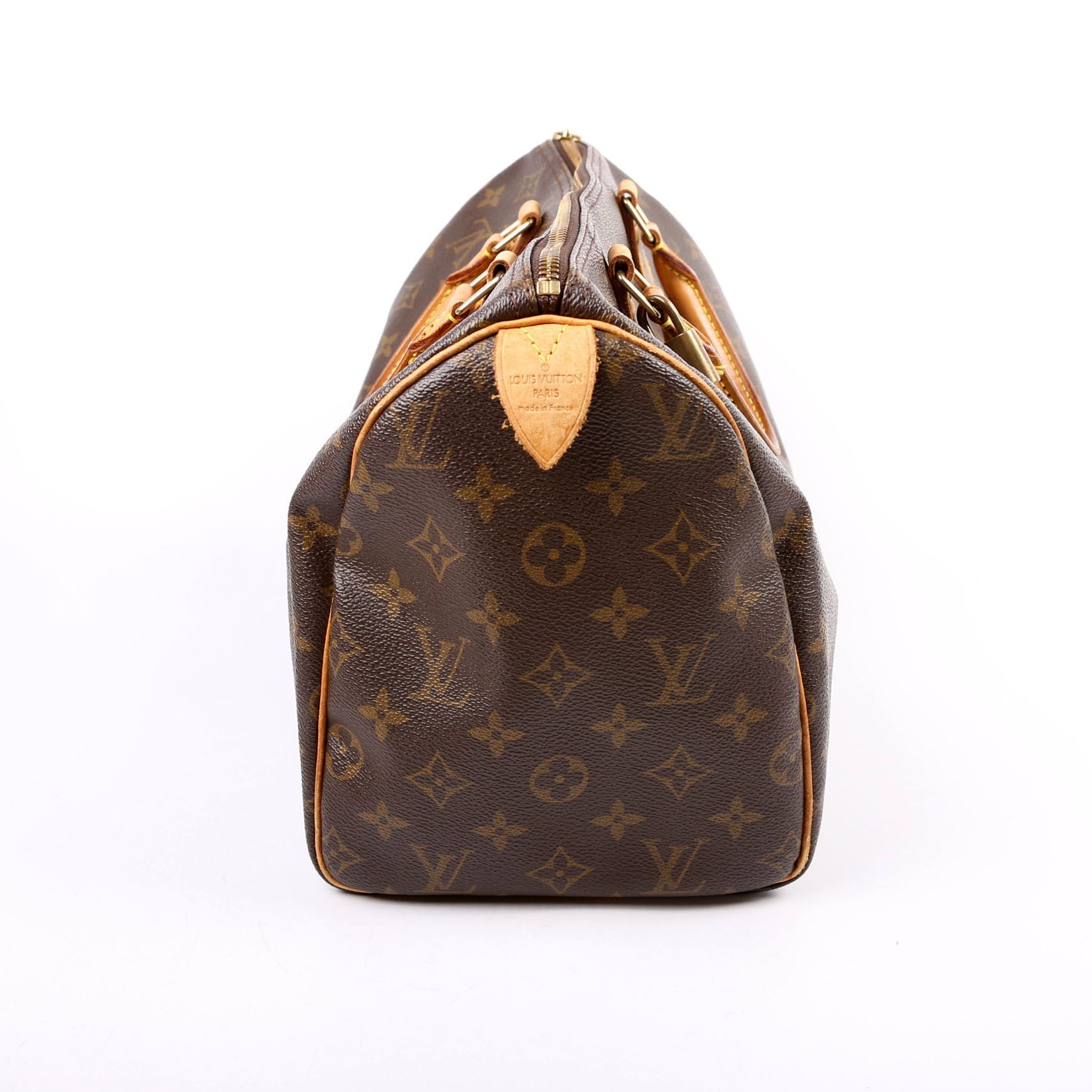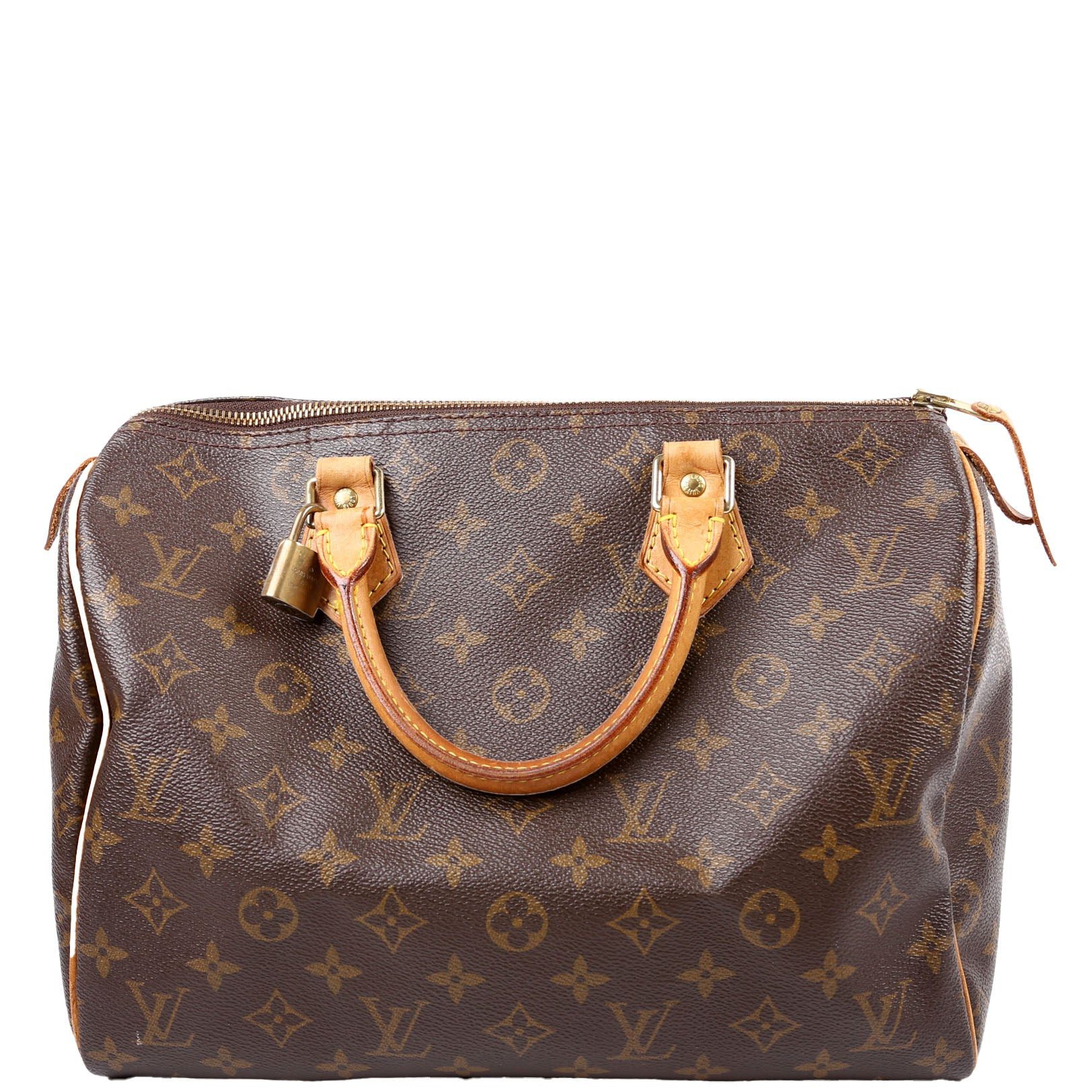 Louis Vuitton Speedy 30 . The exterior is in the classic Louis Vuitton Monogram coated canvas.Â
