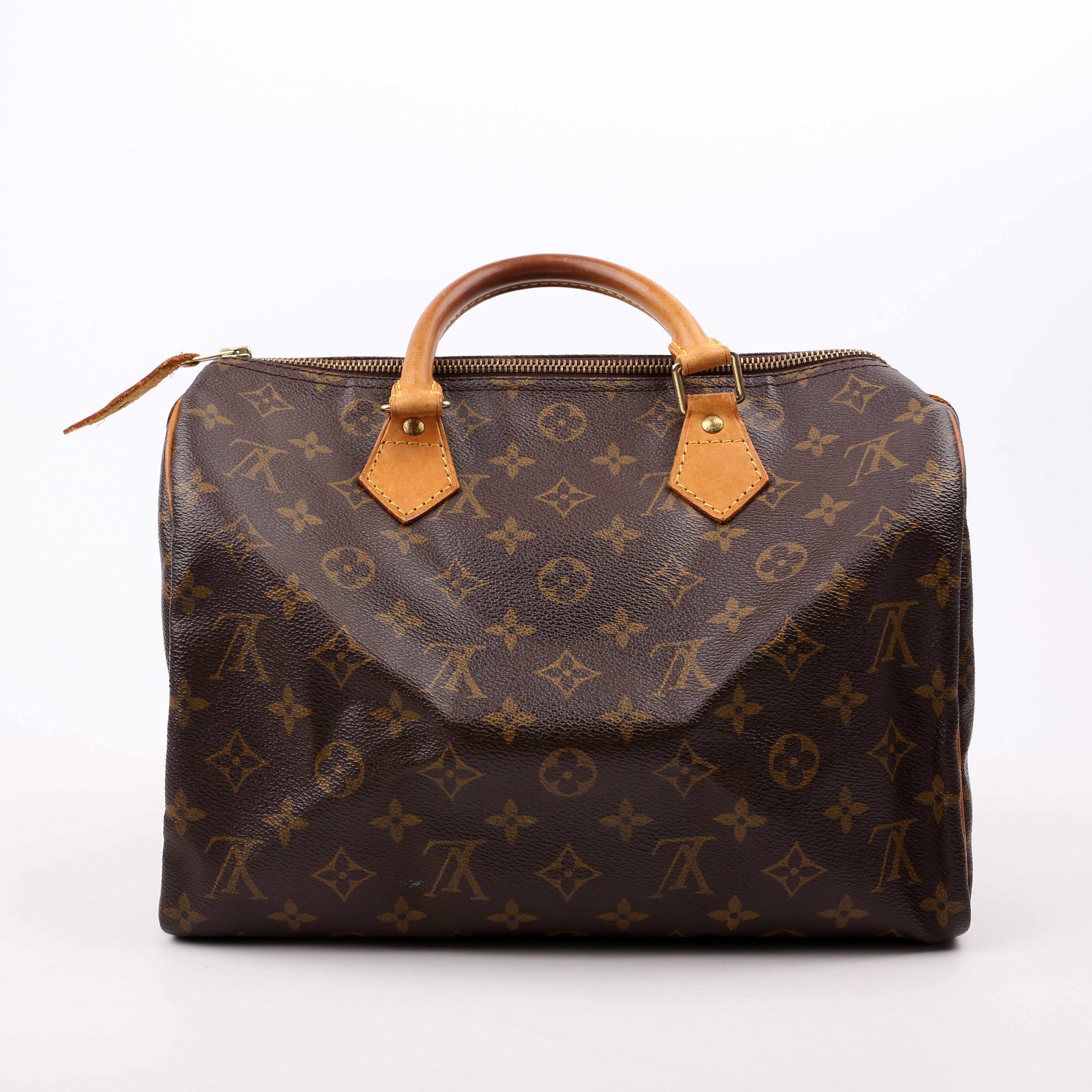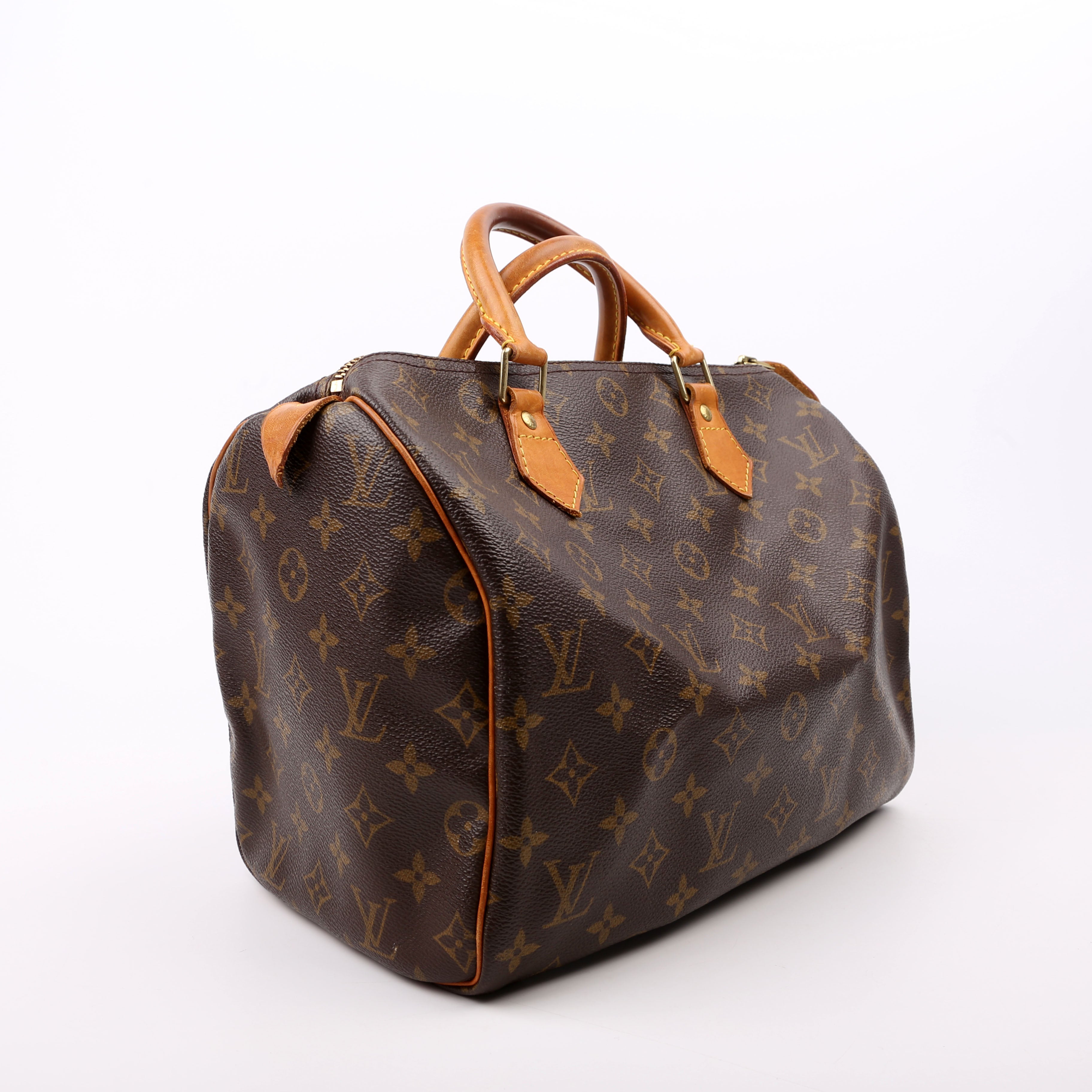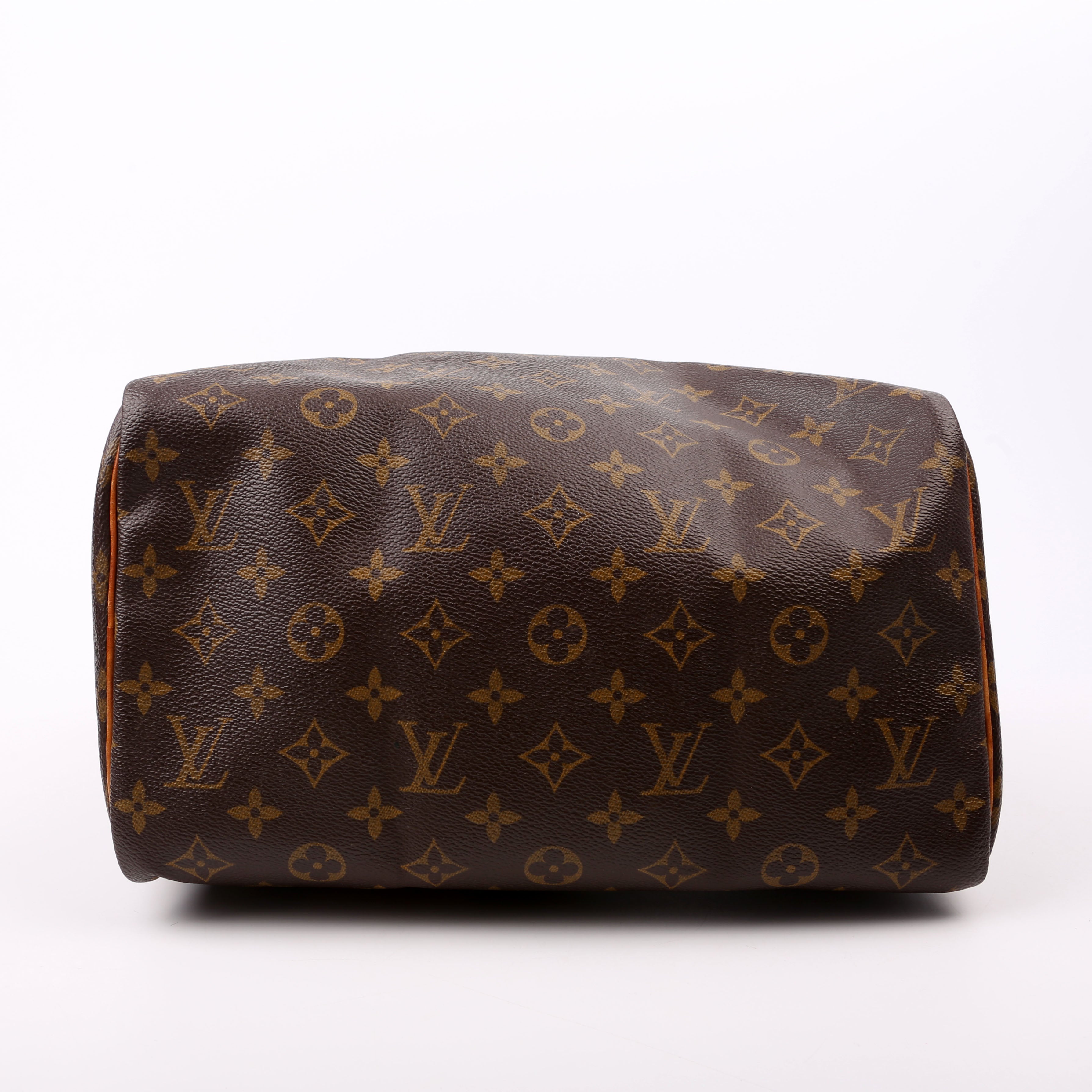 Louis Vuitton Speedy 30 . The exterior is in the classic Louis Vuitton Monogram coated canvas.Â