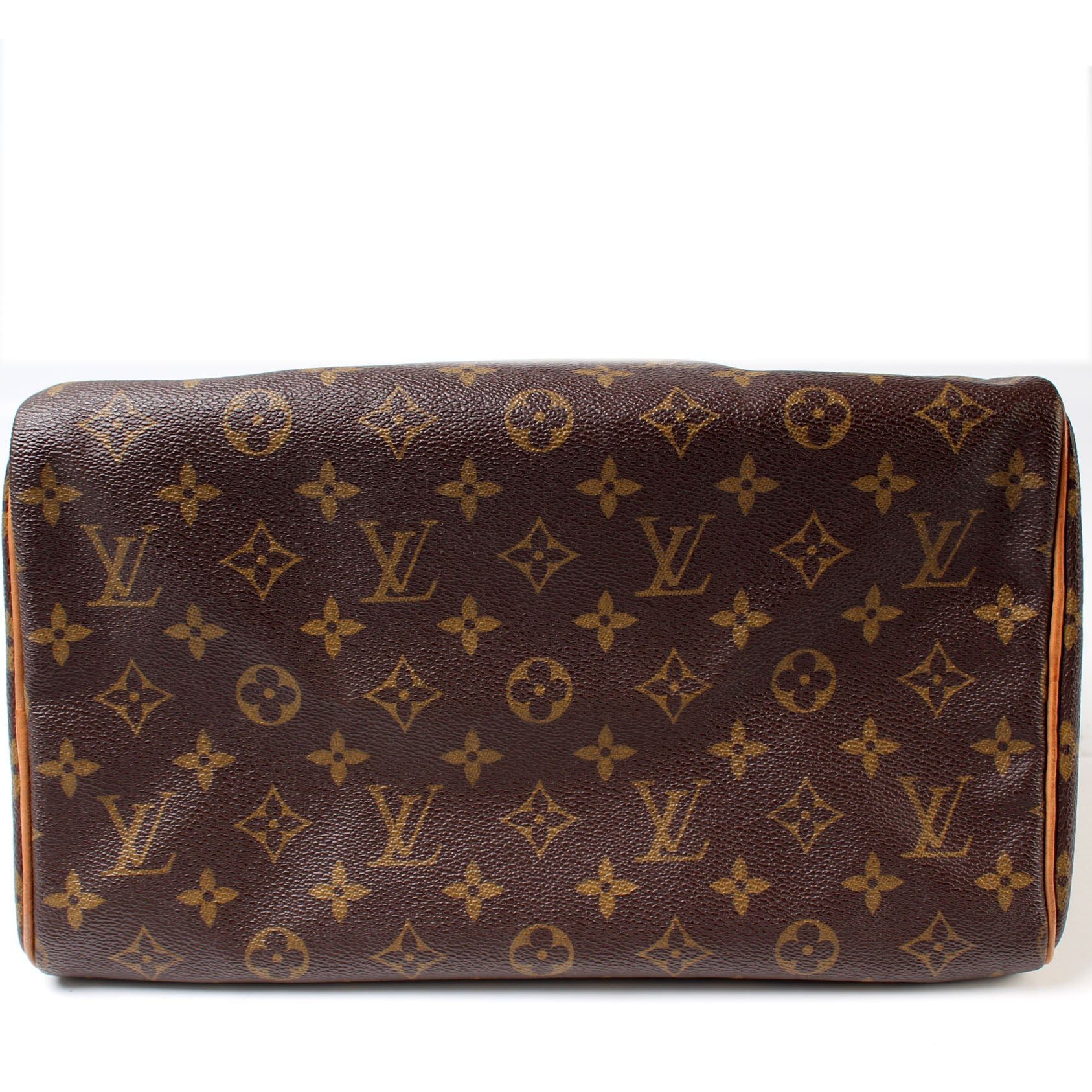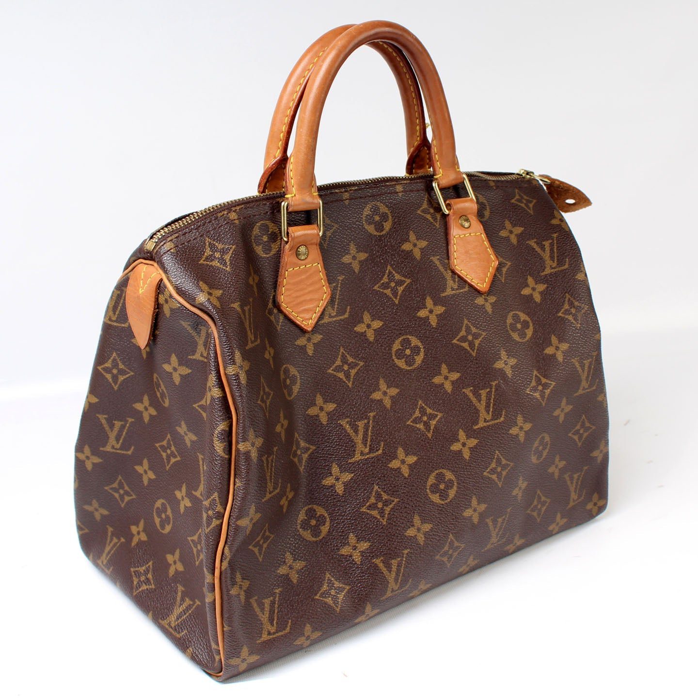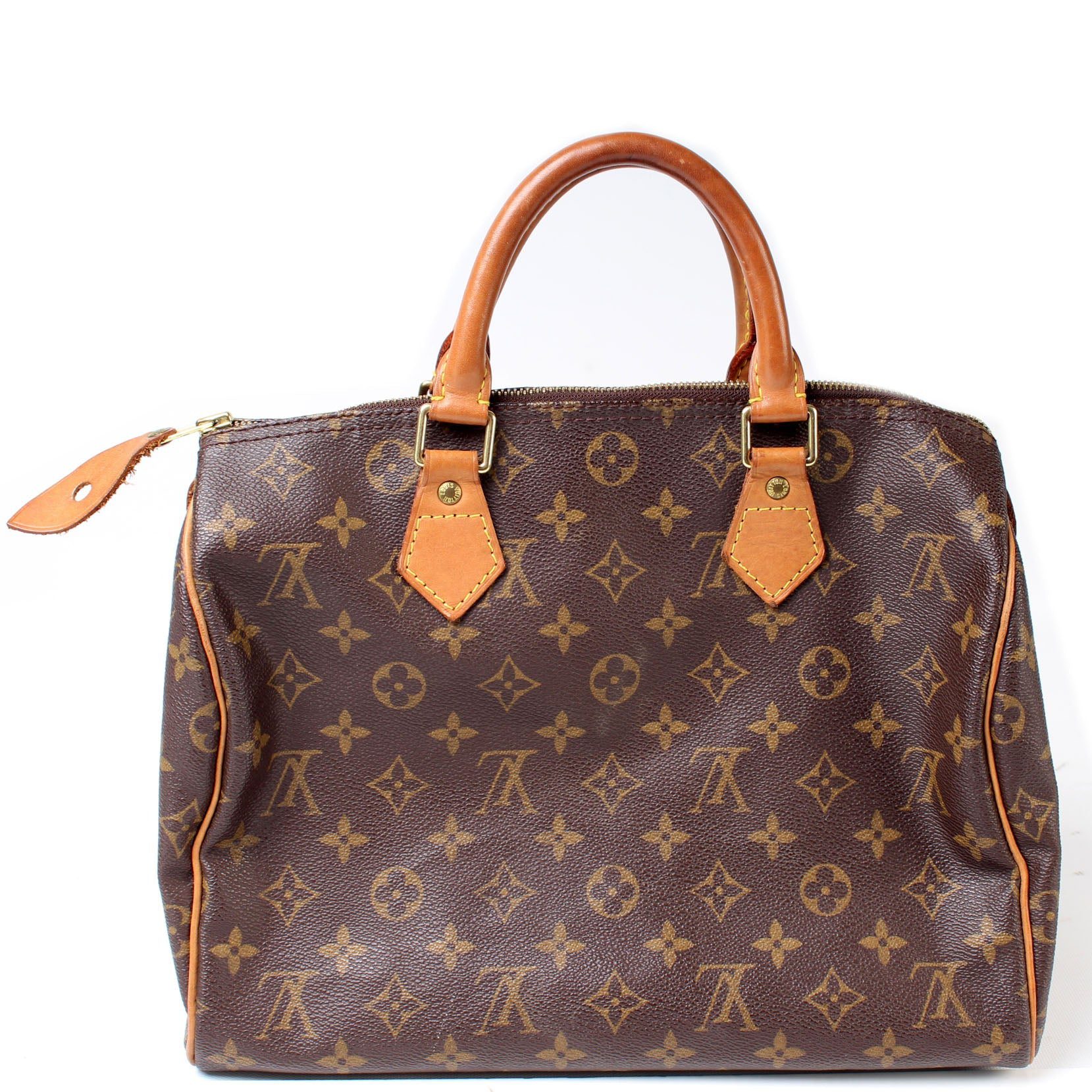 Louis Vuitton Speedy 30. The exterior is in the classic Louis Vuitton Monogram coated canvas.Â