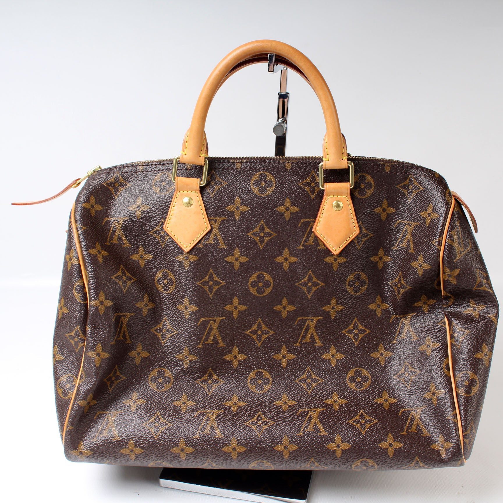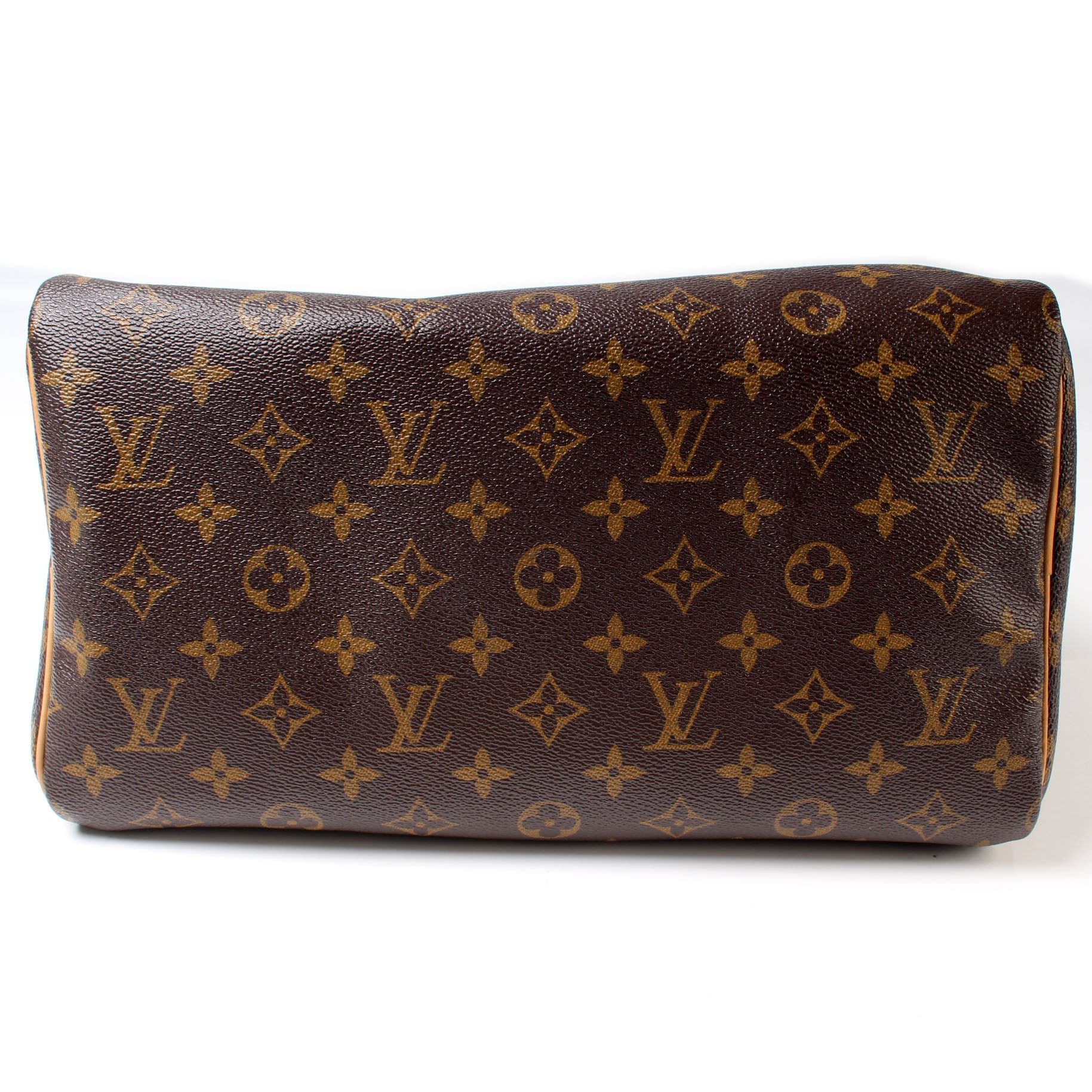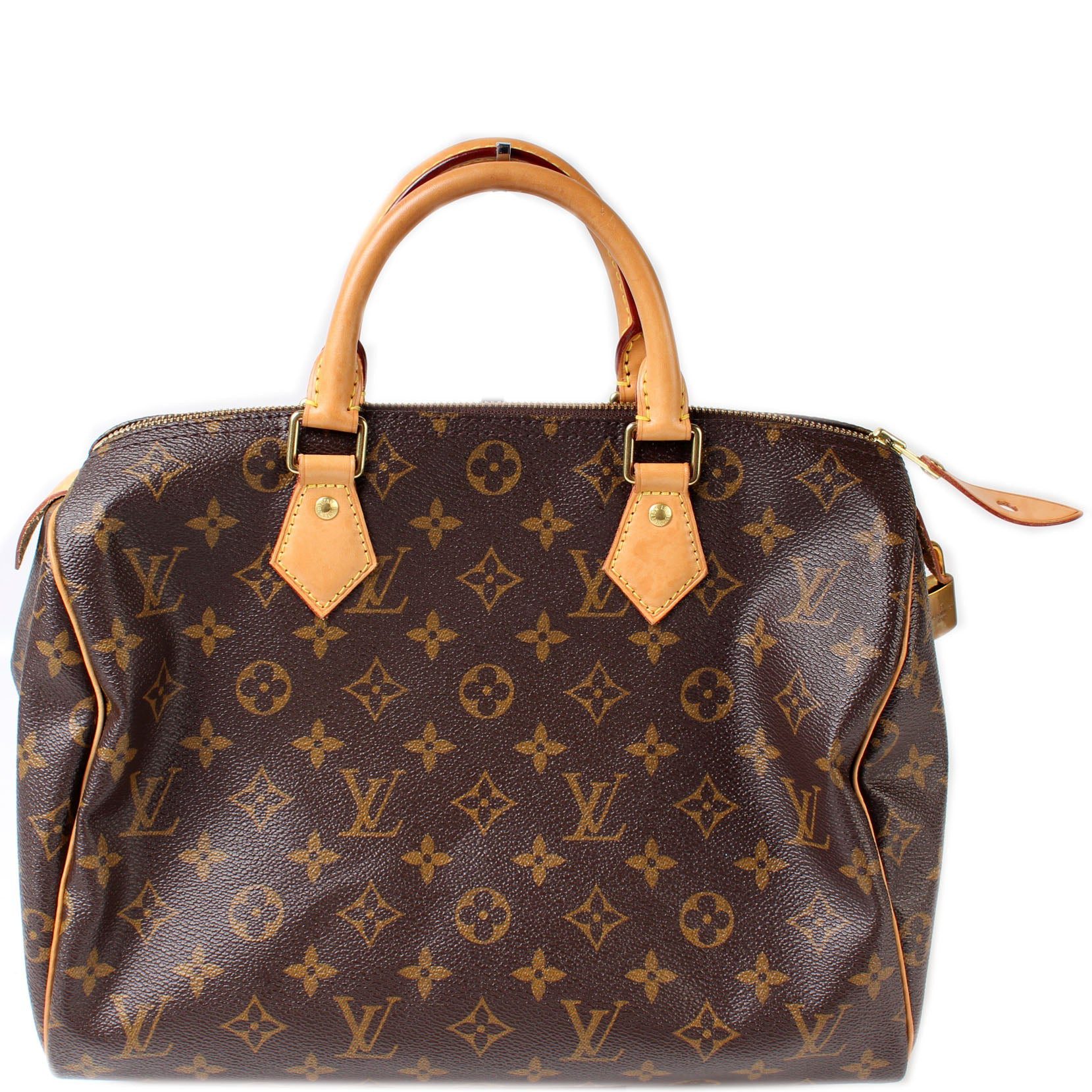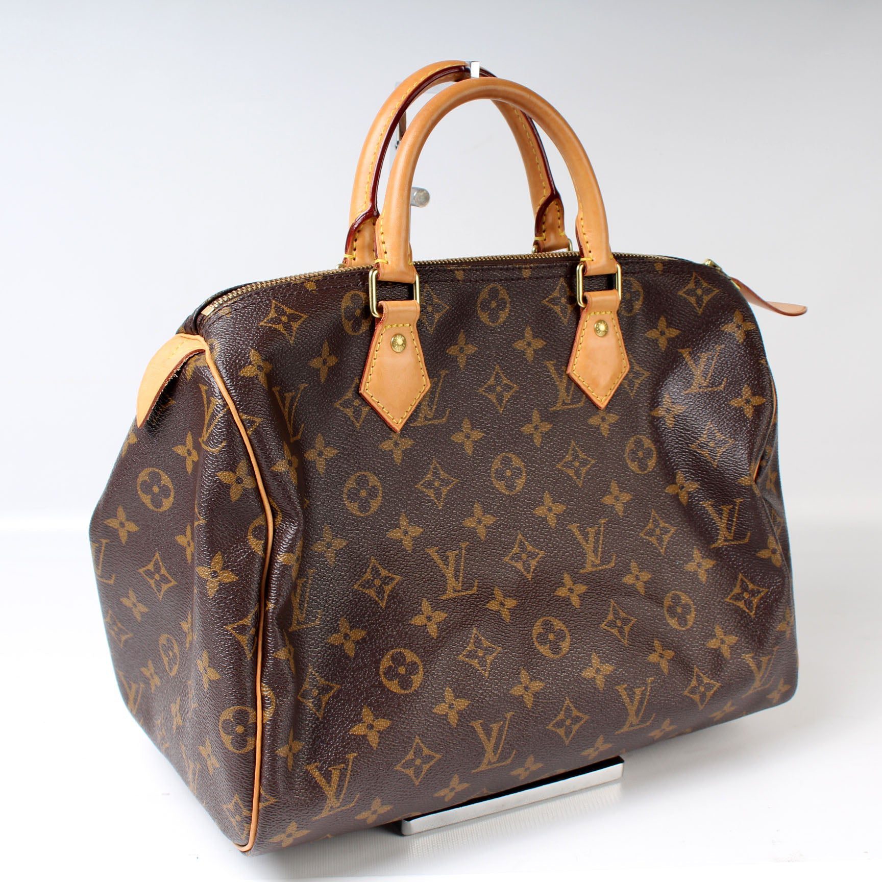 Louis Vuitton Speedy 30. The exterior is in the classic Monogram coated canvas. Â