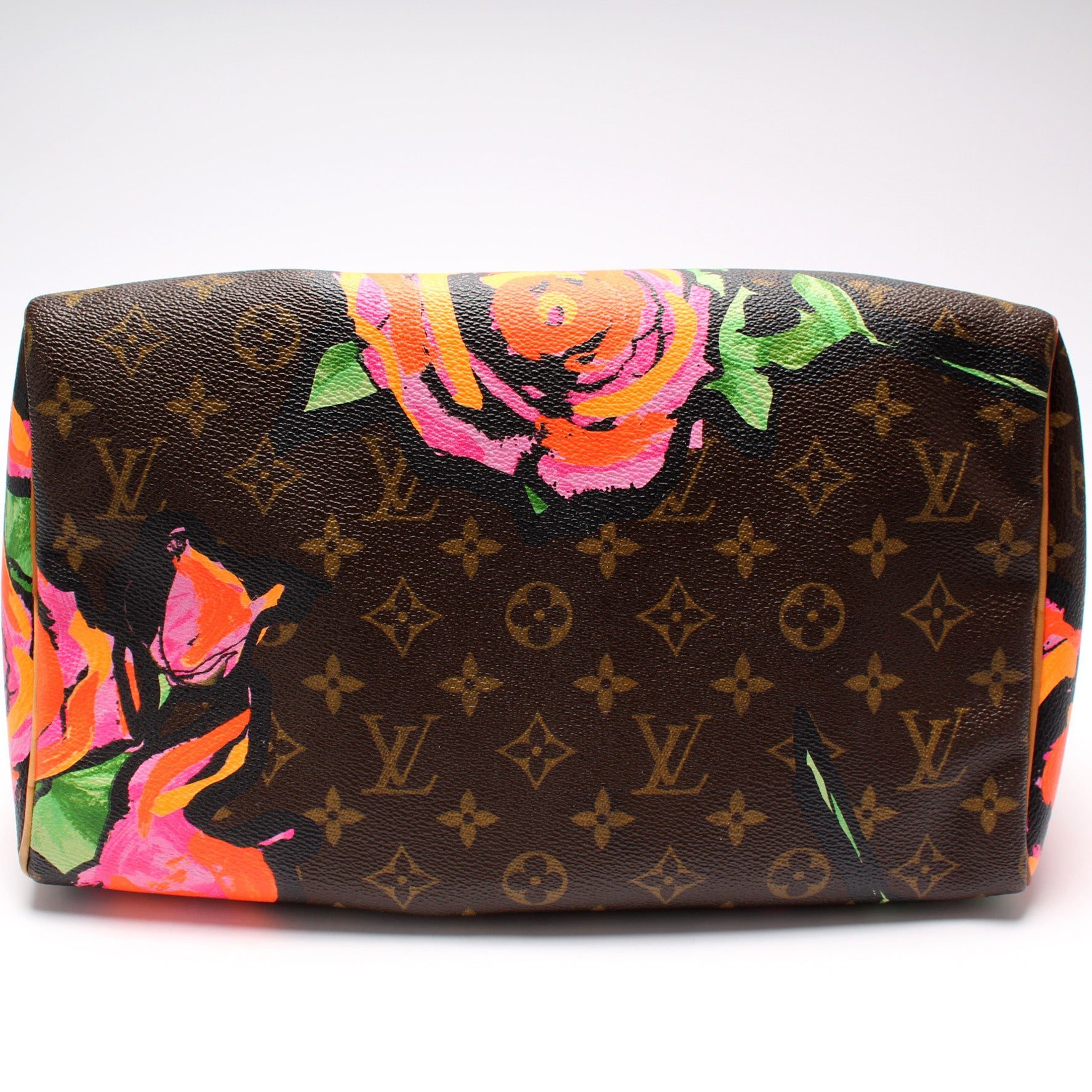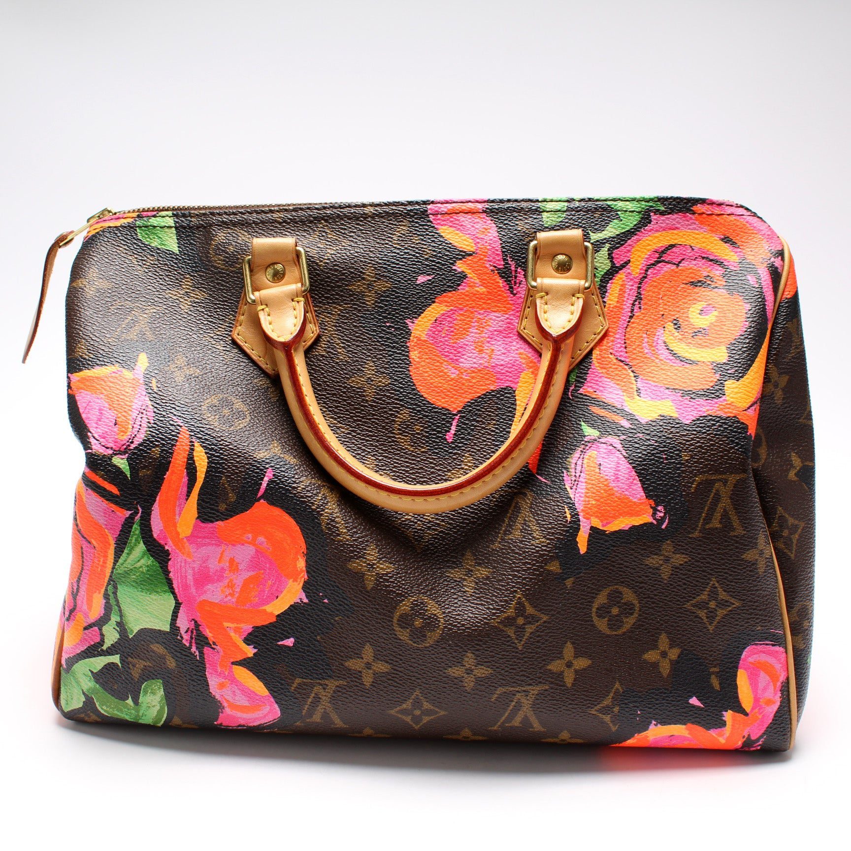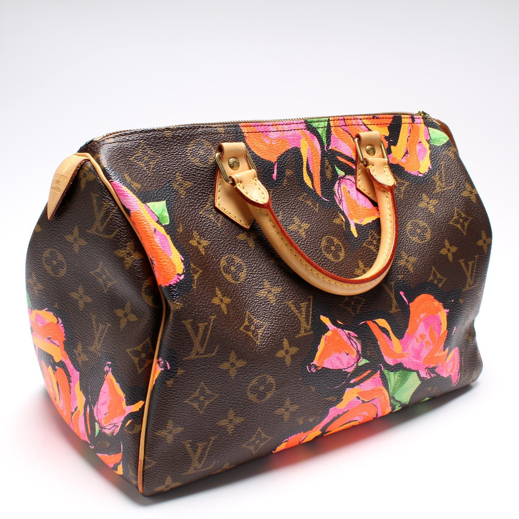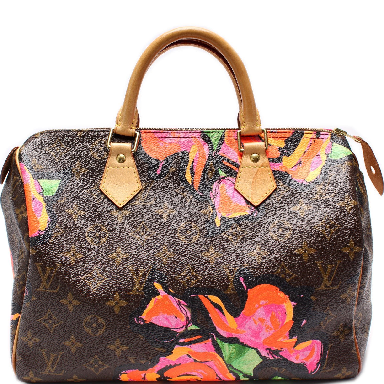 Louis Vuitton Speedy 30. The exterior is in the classic Louis Vuitton Monogram coated canvas.Â