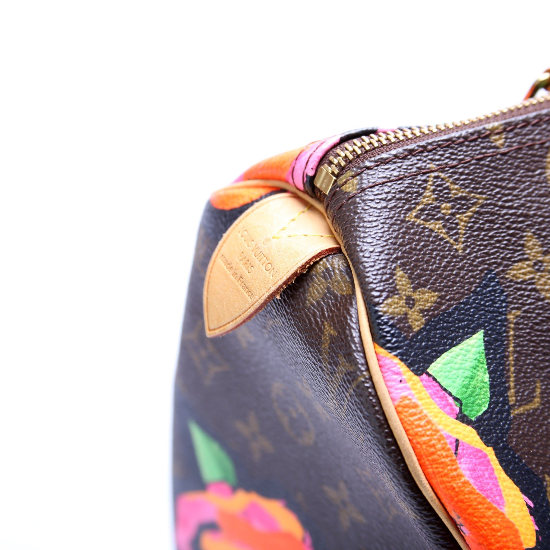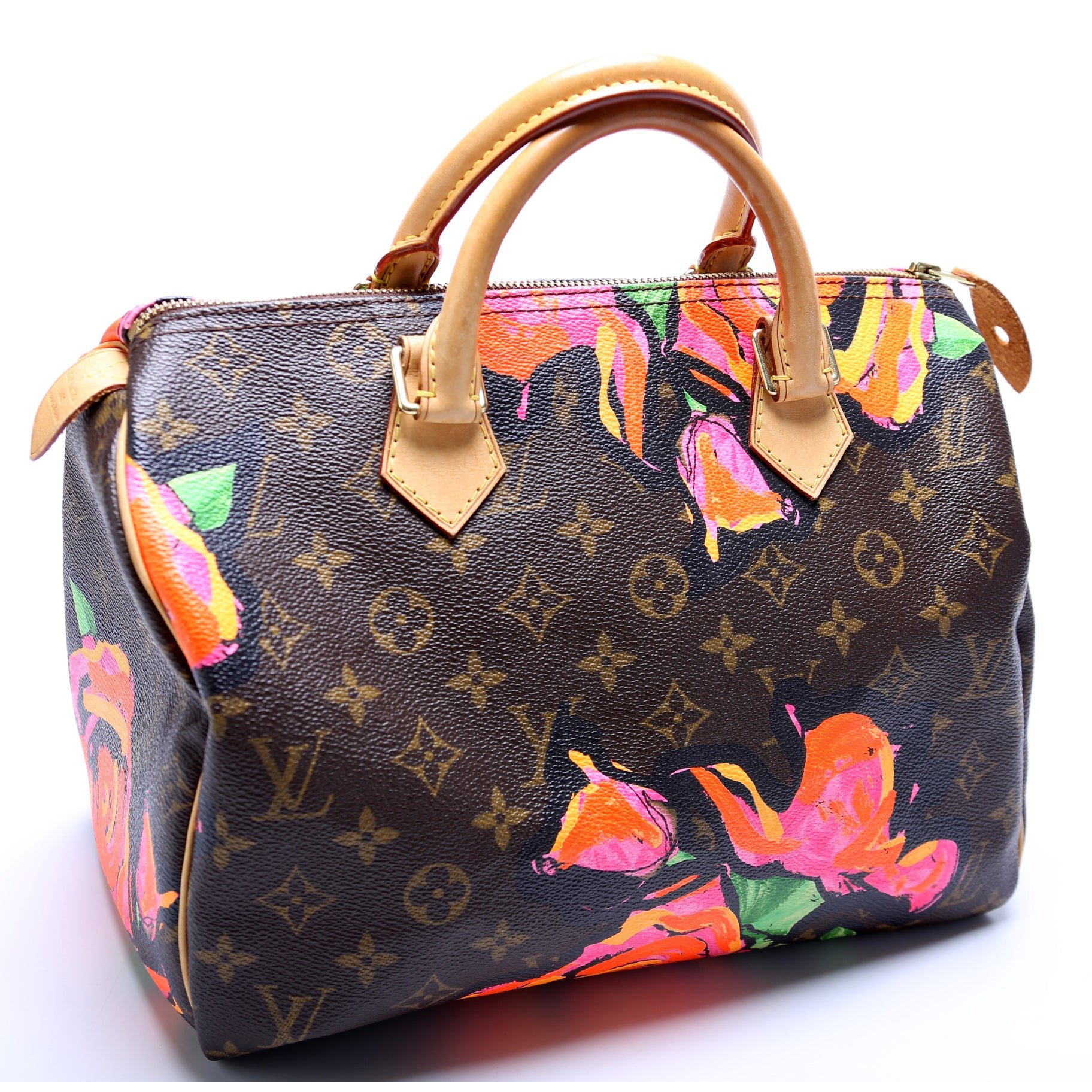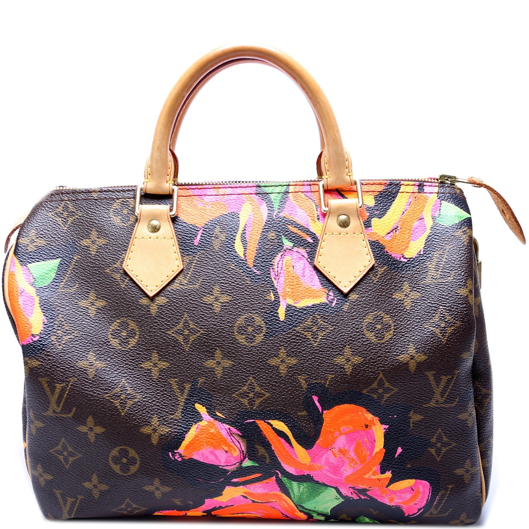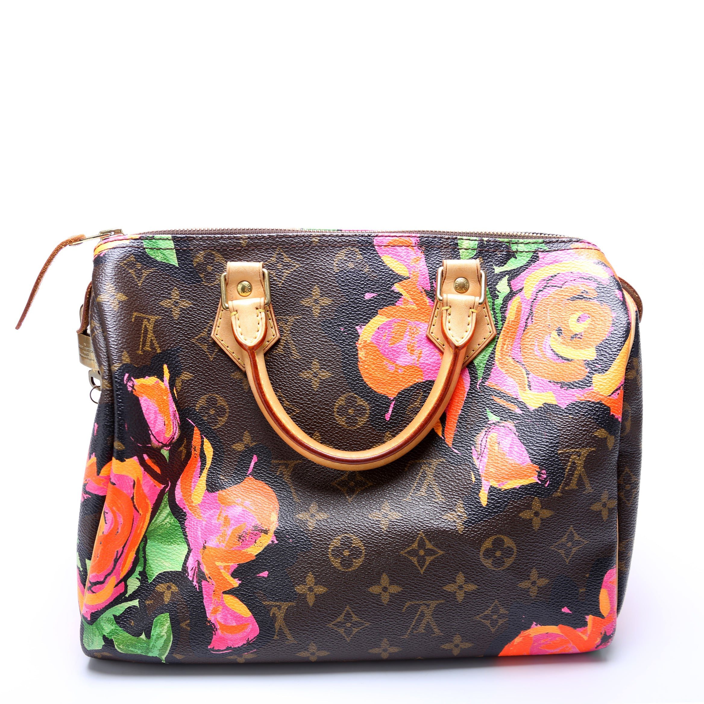 Louis Vuitton Speedy 30. The exterior is in the classic Louis Vuitton Monogram coated canvas.Â