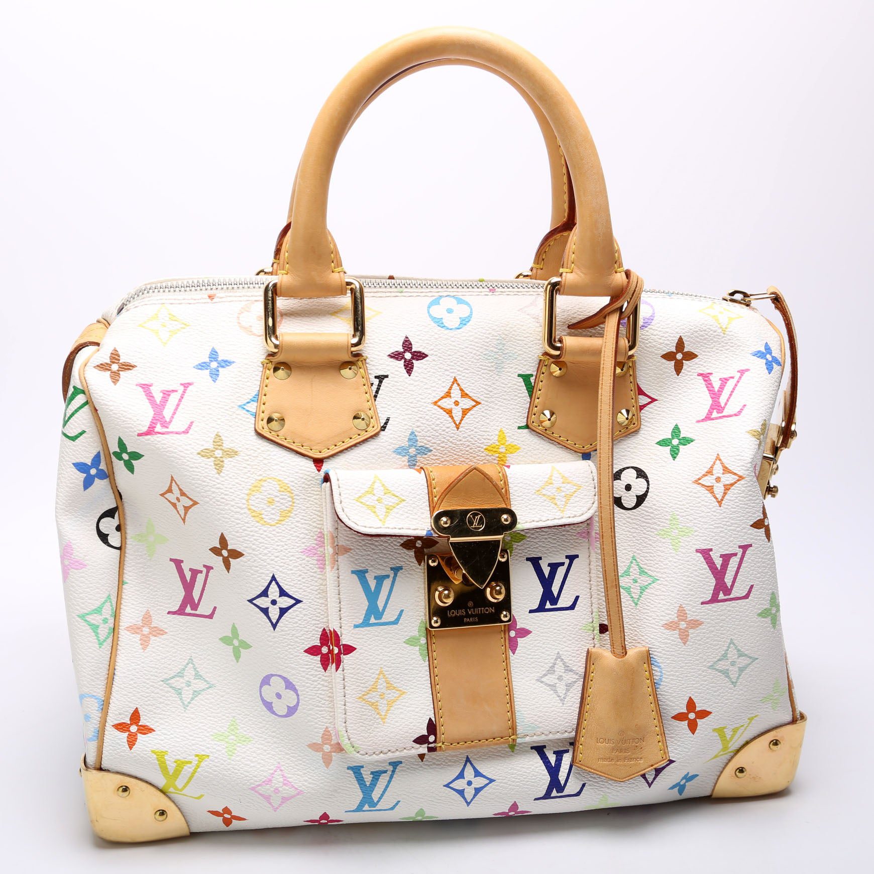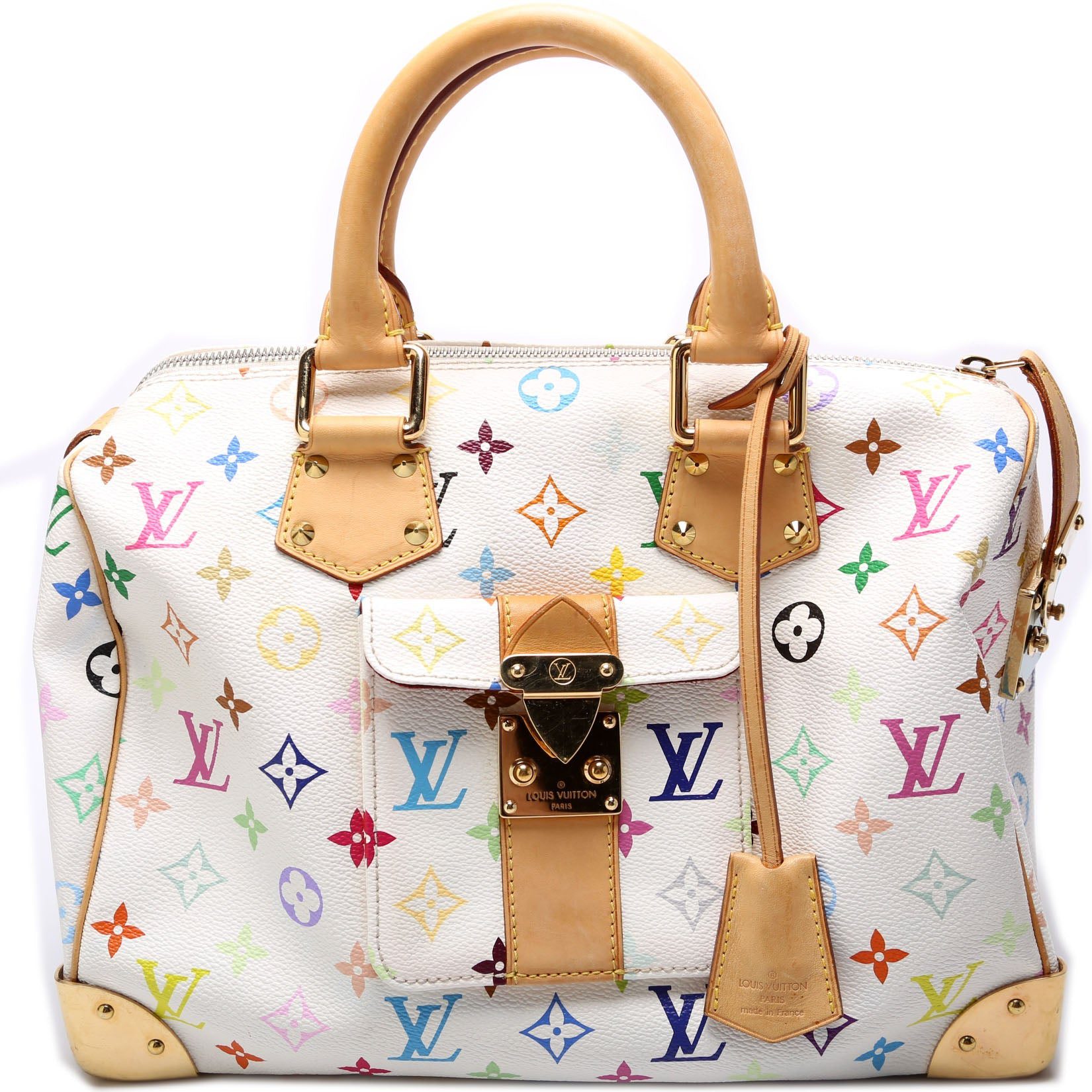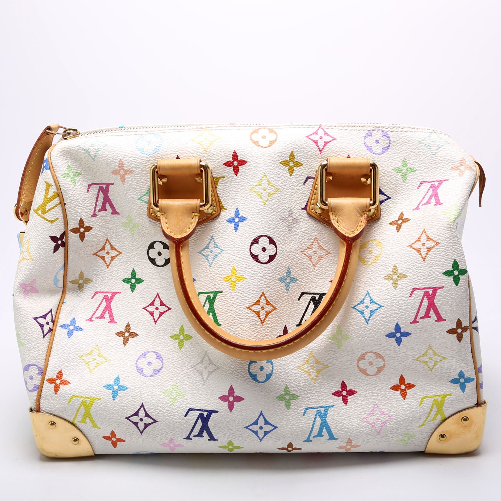 Louis Vuitton Speedy 30. The exterior is in the Louis Vuitton Multicolor Monogram coated canvas.Â