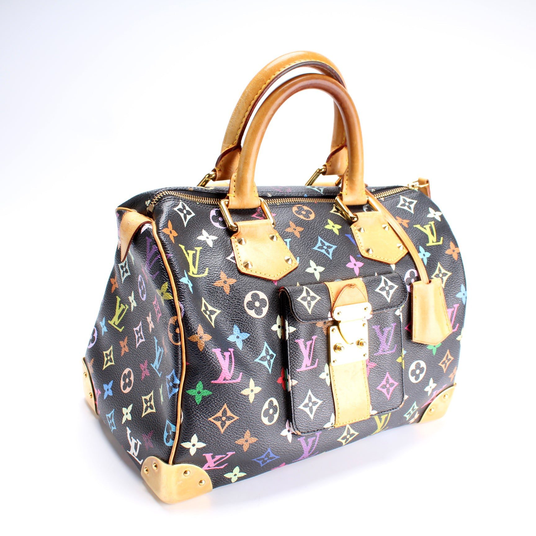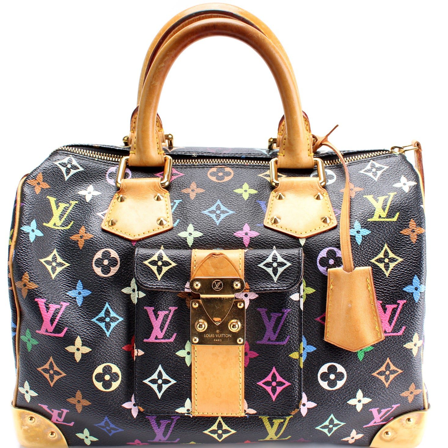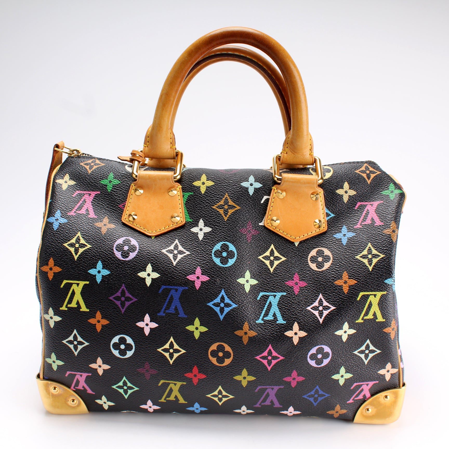 Louis Vuitton Speedy 30. The exterior is in the Louis Vuitton Multicolor Monogram coated canvas.Â