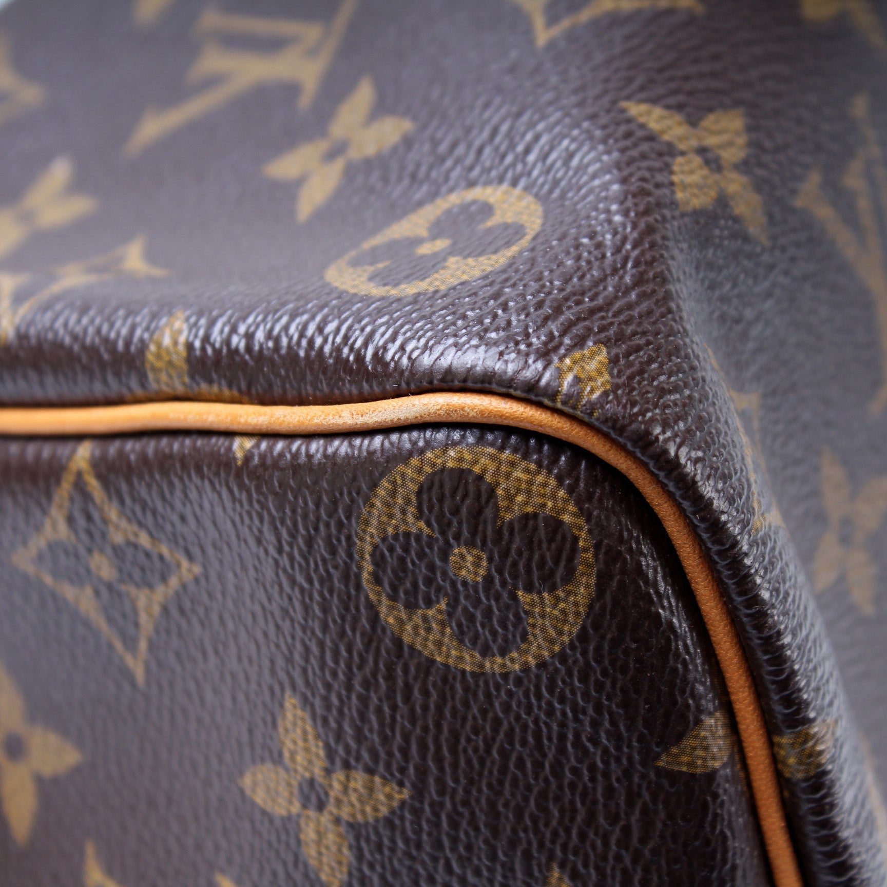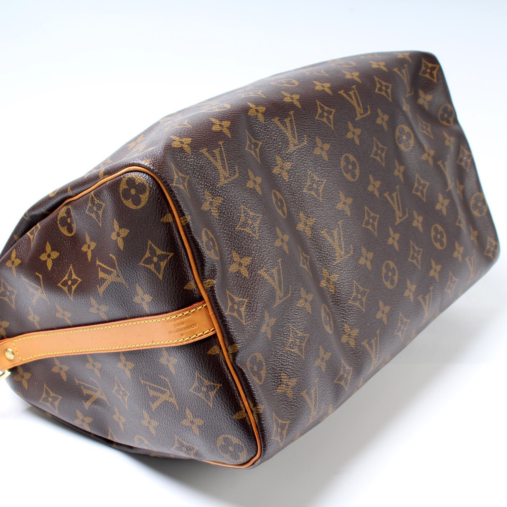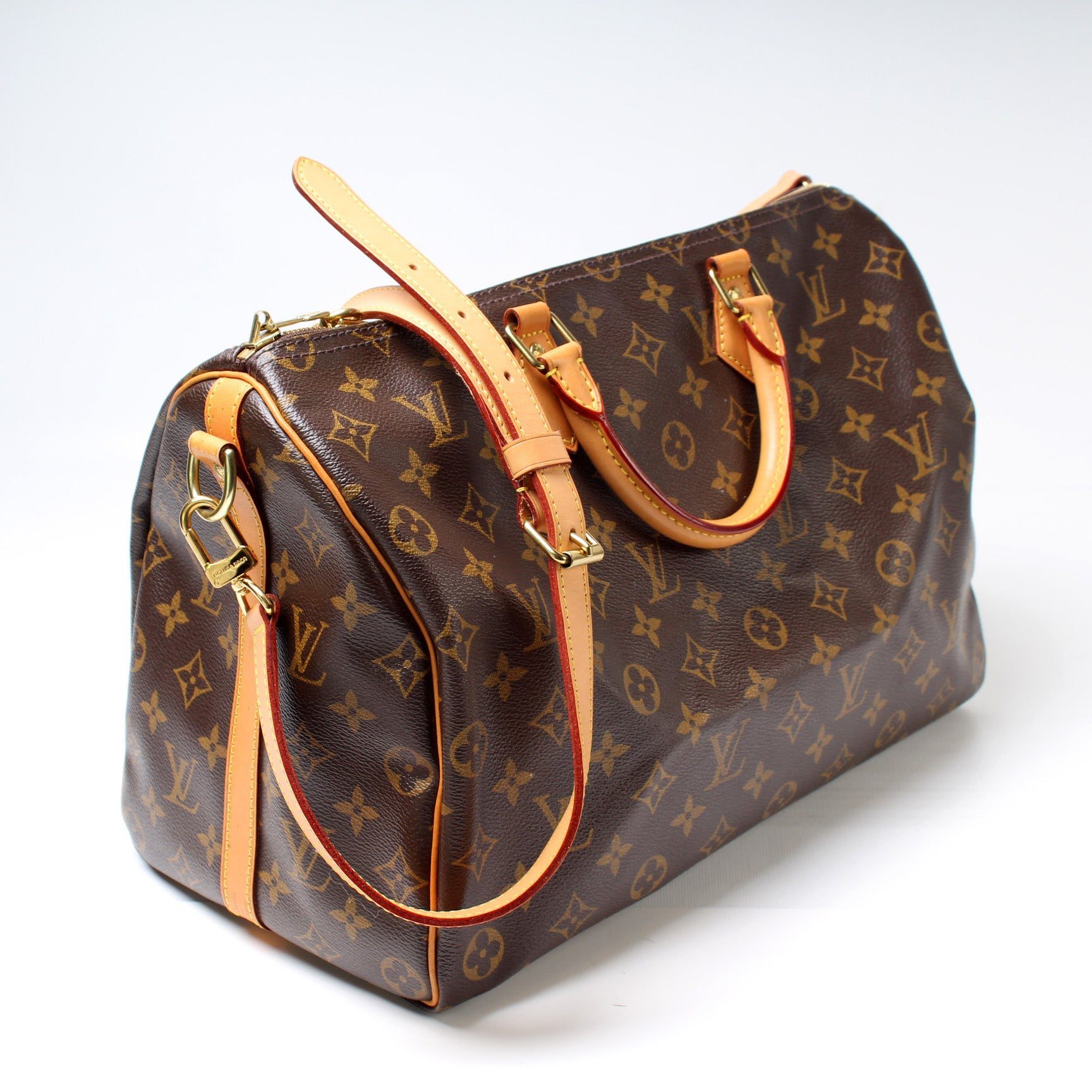 Louis Vuitton Speedy 35 Bandouliere. The exterior is in the classic Louis Vuitton Monogram coated canvas.Â