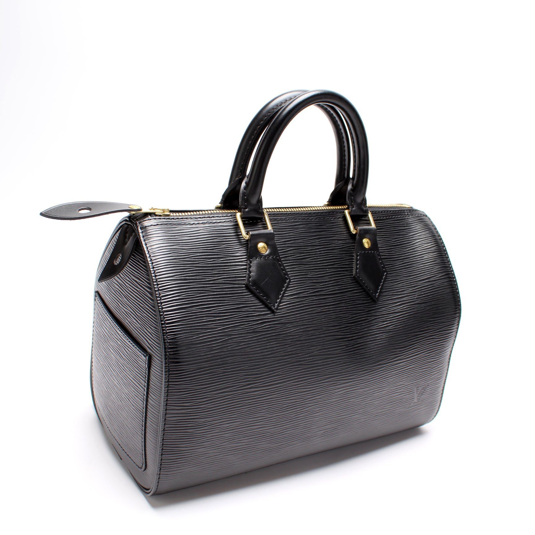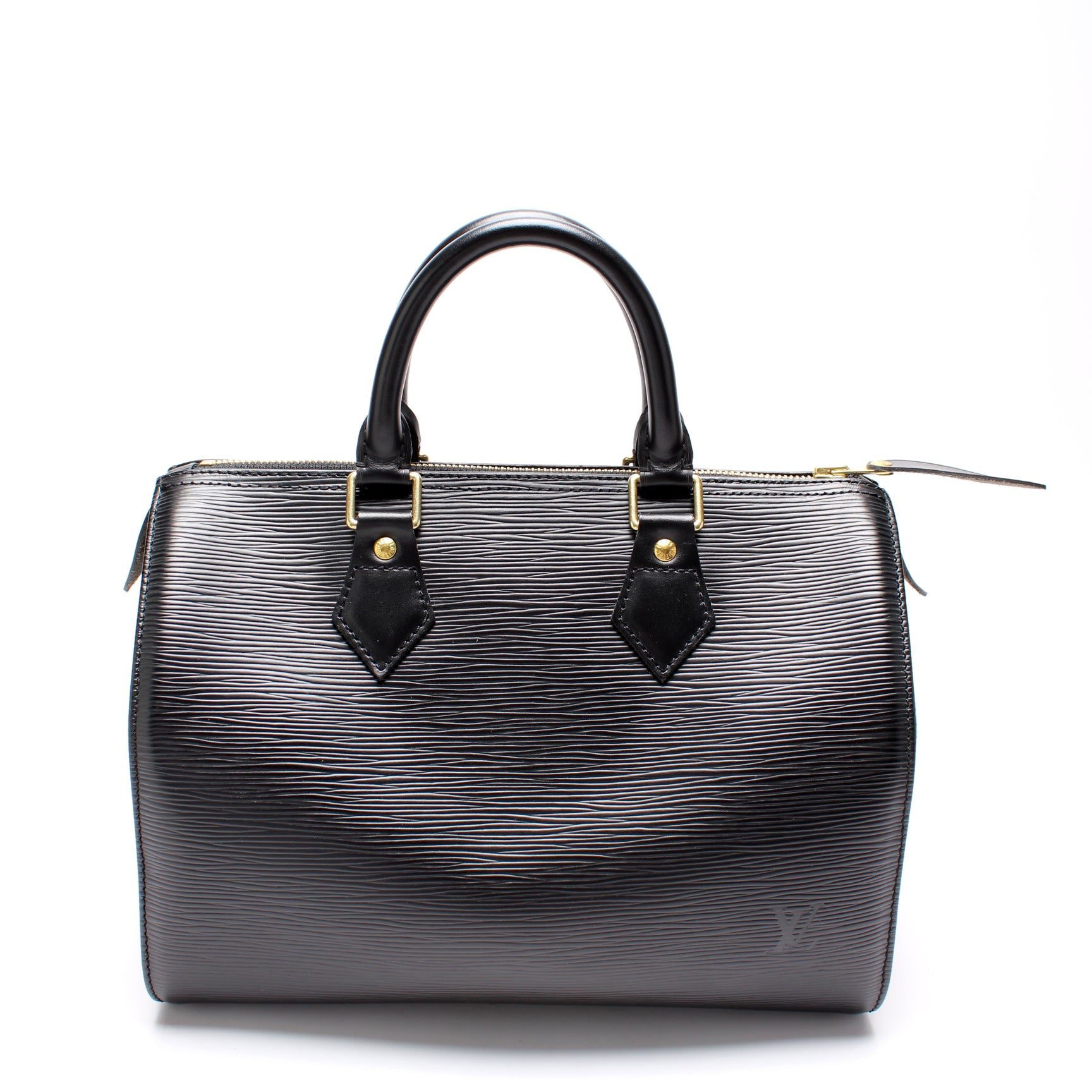 Louis Vuitton Speedy 25. The exterior is in the classic Louis Vuitton Epi Leather.Â