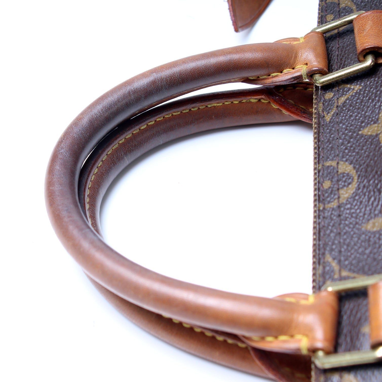 Handle: The leather handles show minor wear and darker patina.Â