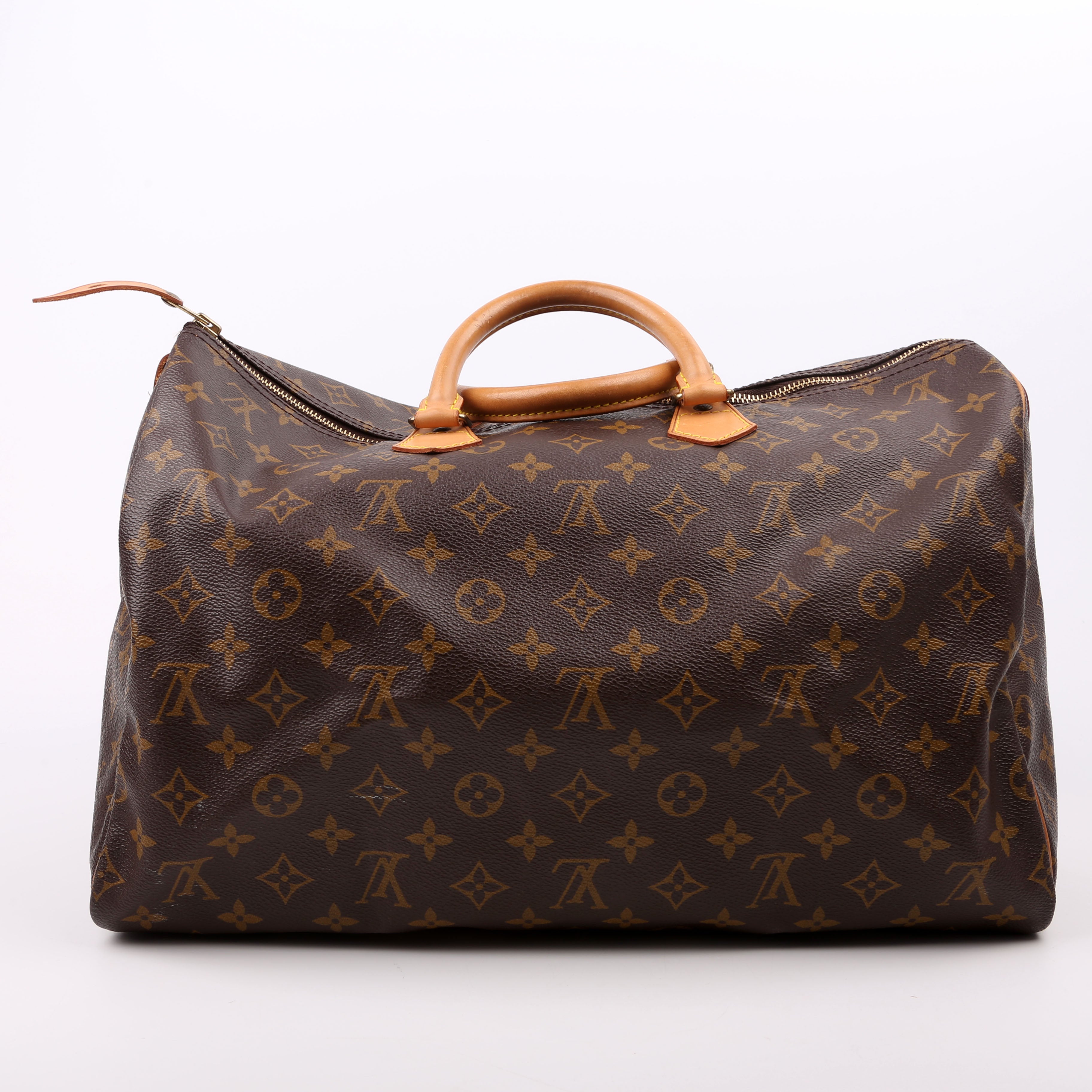 Louis Vuitton Speedy 40 . The exterior is in the classic Louis Vuitton Monogram coated canvas. Â