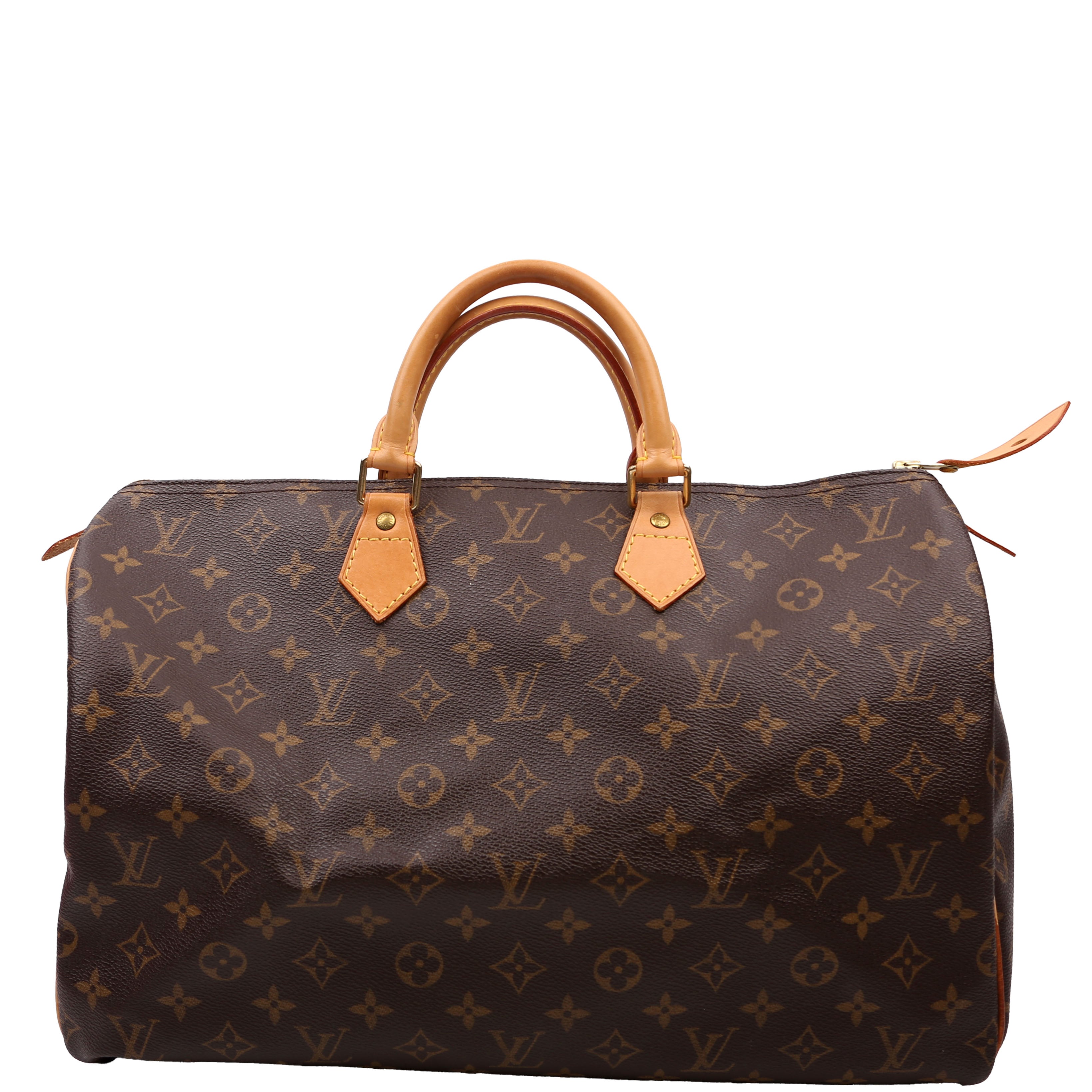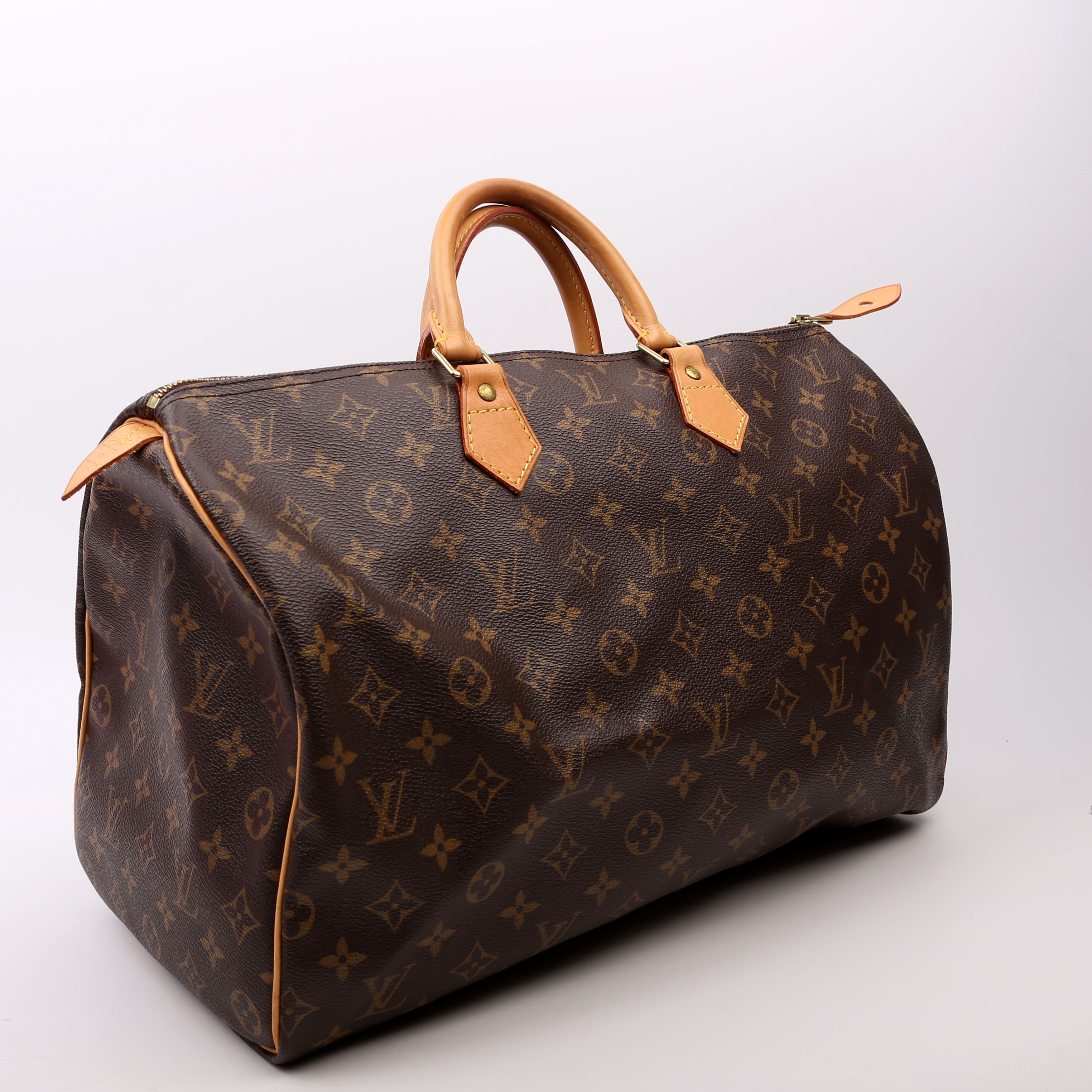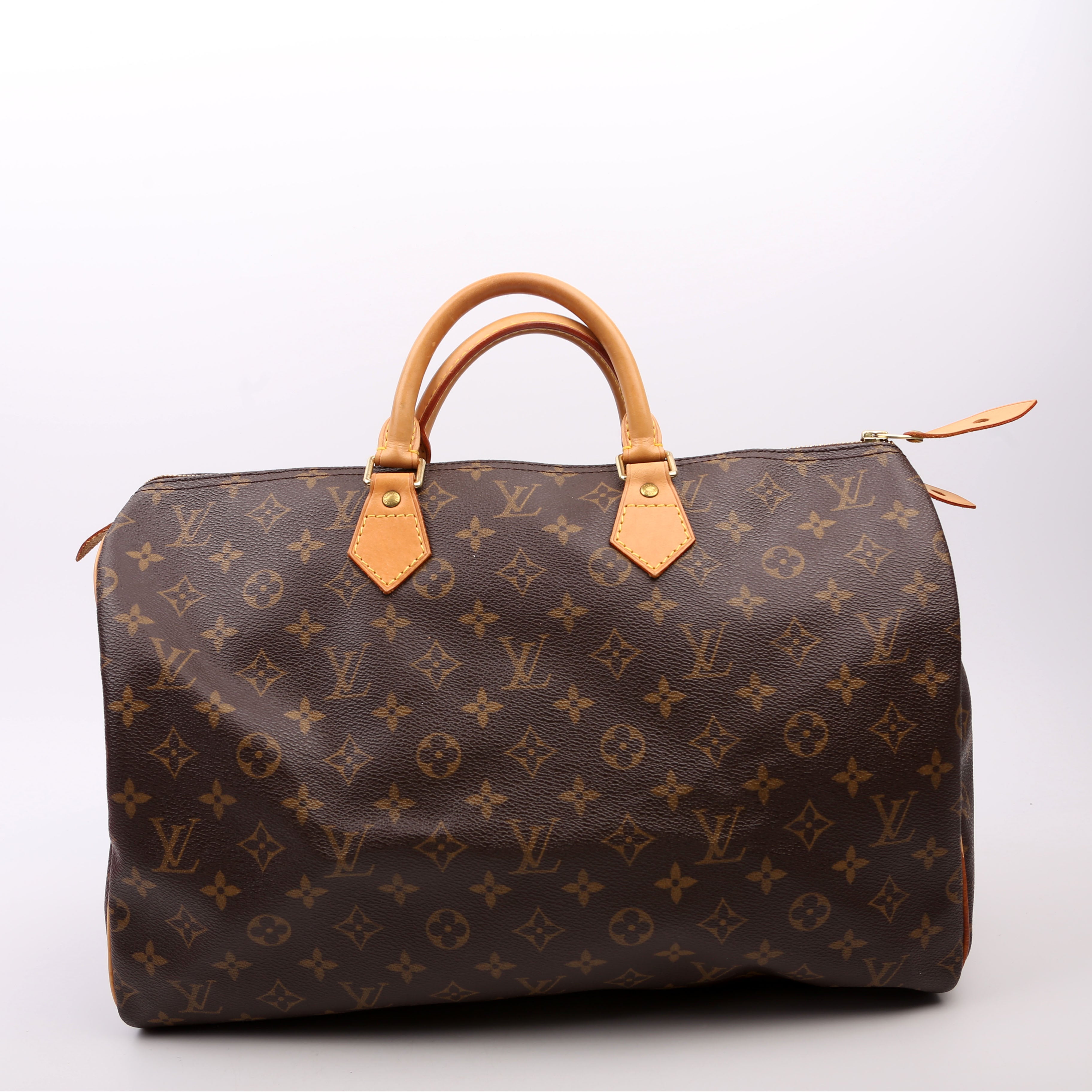 Louis Vuitton Speedy 40 . The exterior is in the classic Louis Vuitton Monogram coated canvas. Â