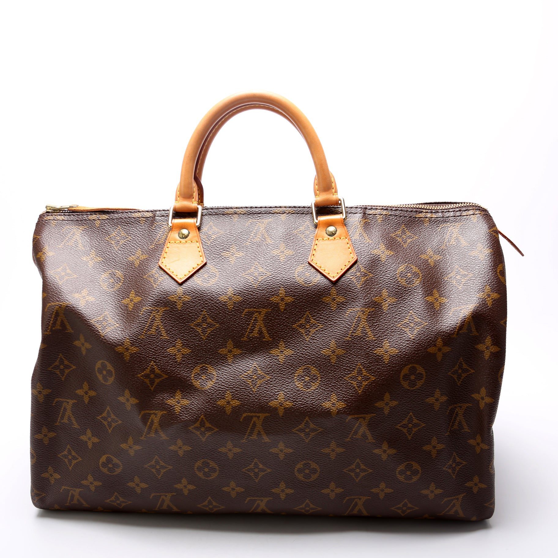 Louis Vuitton Speedy 40�. The exterior is in the classic Louis Vuitton Monogram coated canvas.Â