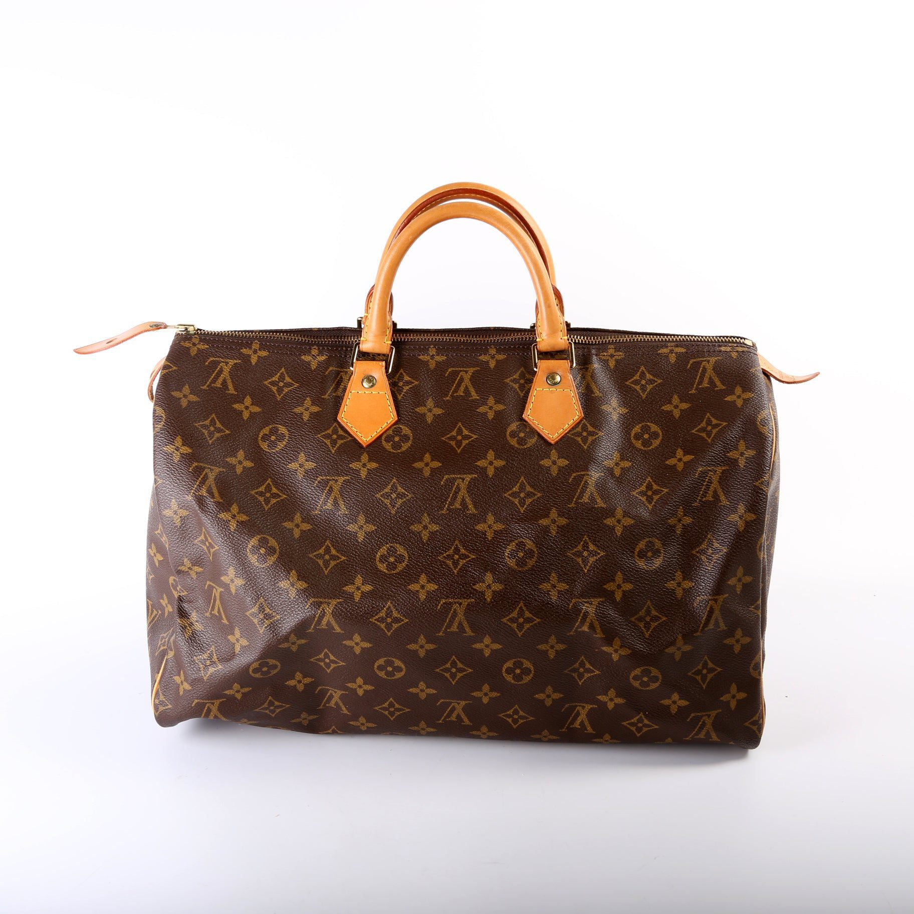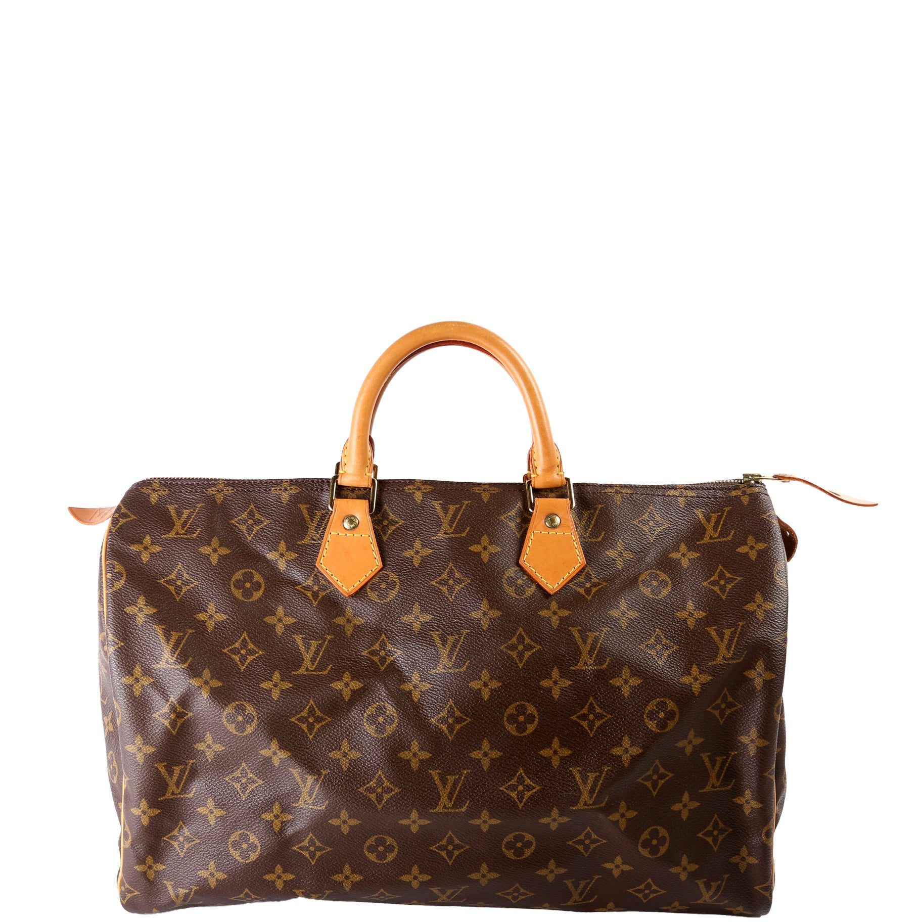 Louis Vuitton Speedy 40Ã. The exterior is in the classic Louis Vuitton Monogram coated canvas.Â