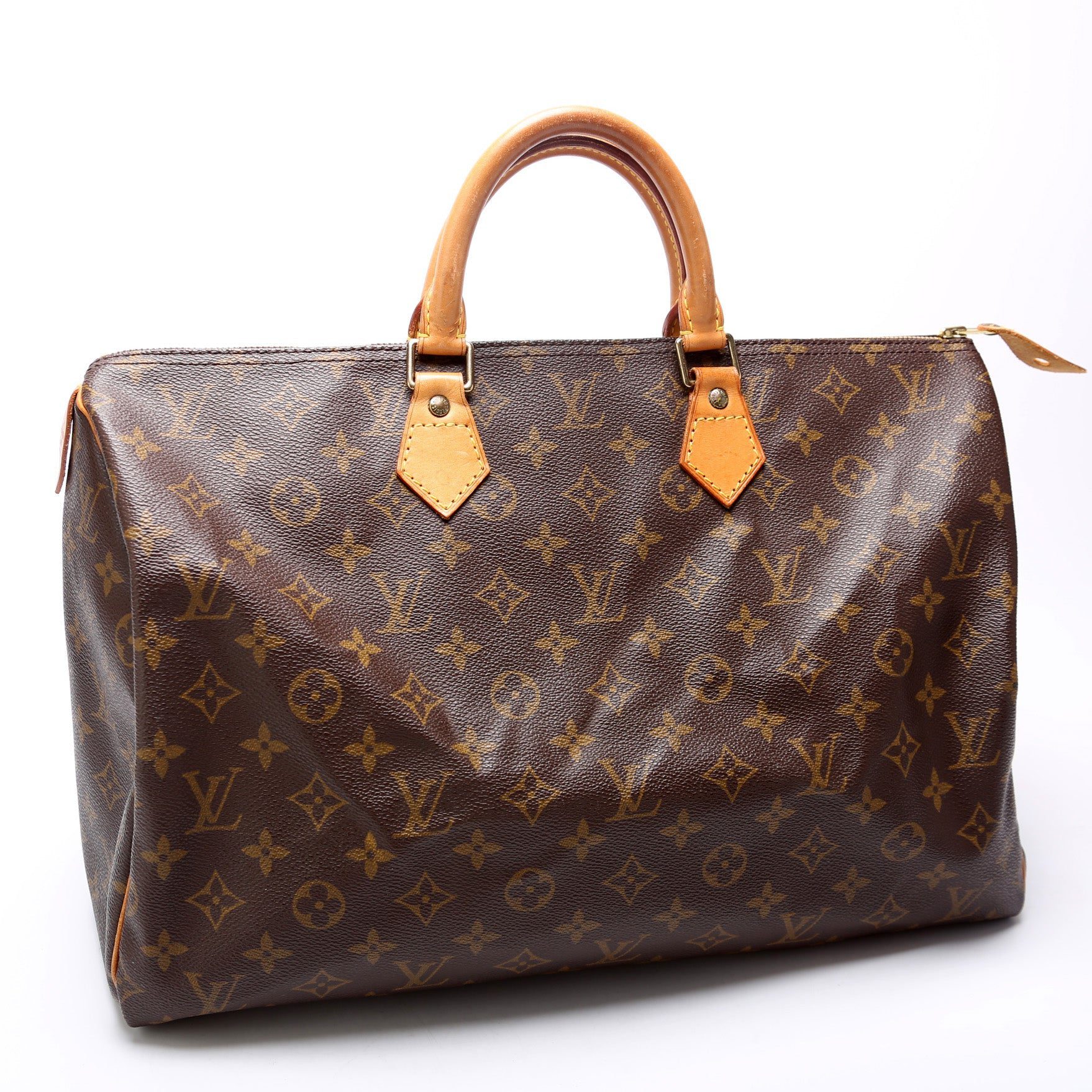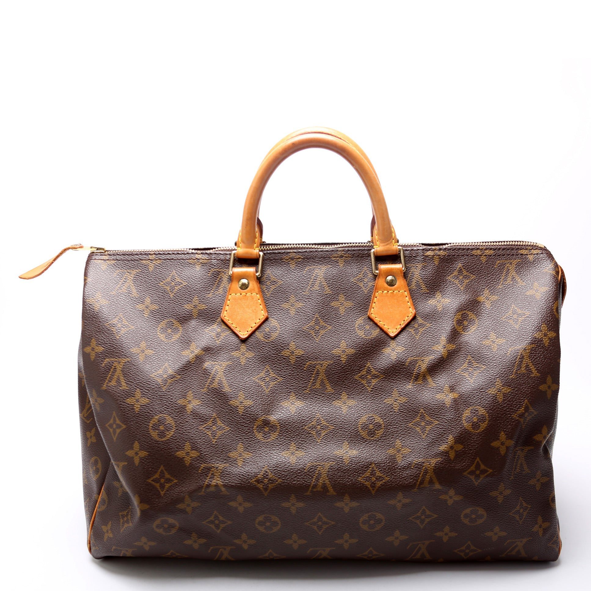 Louis Vuitton Speedy 40�. The exterior is in the classic Louis Vuitton Monogram coated canvas.Â