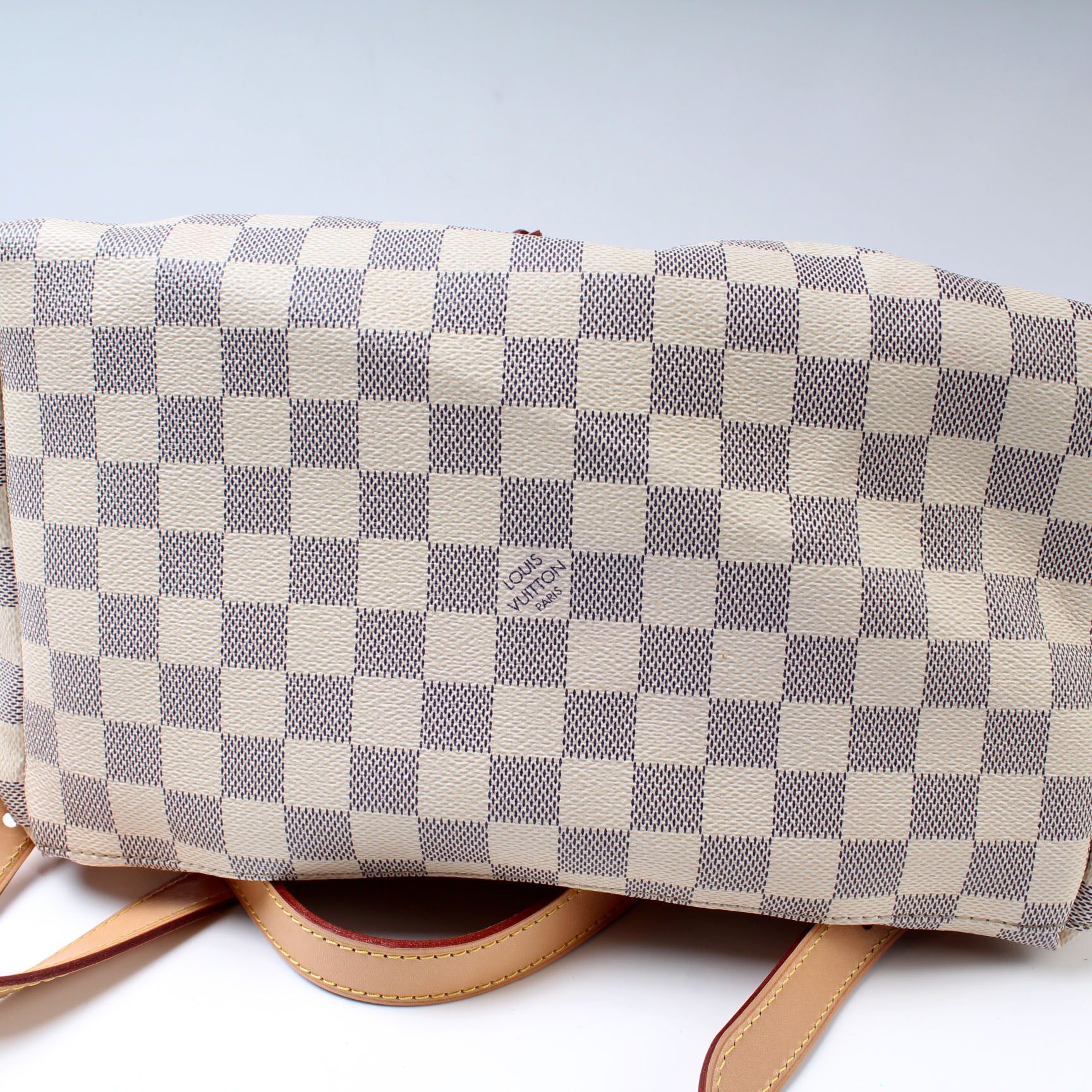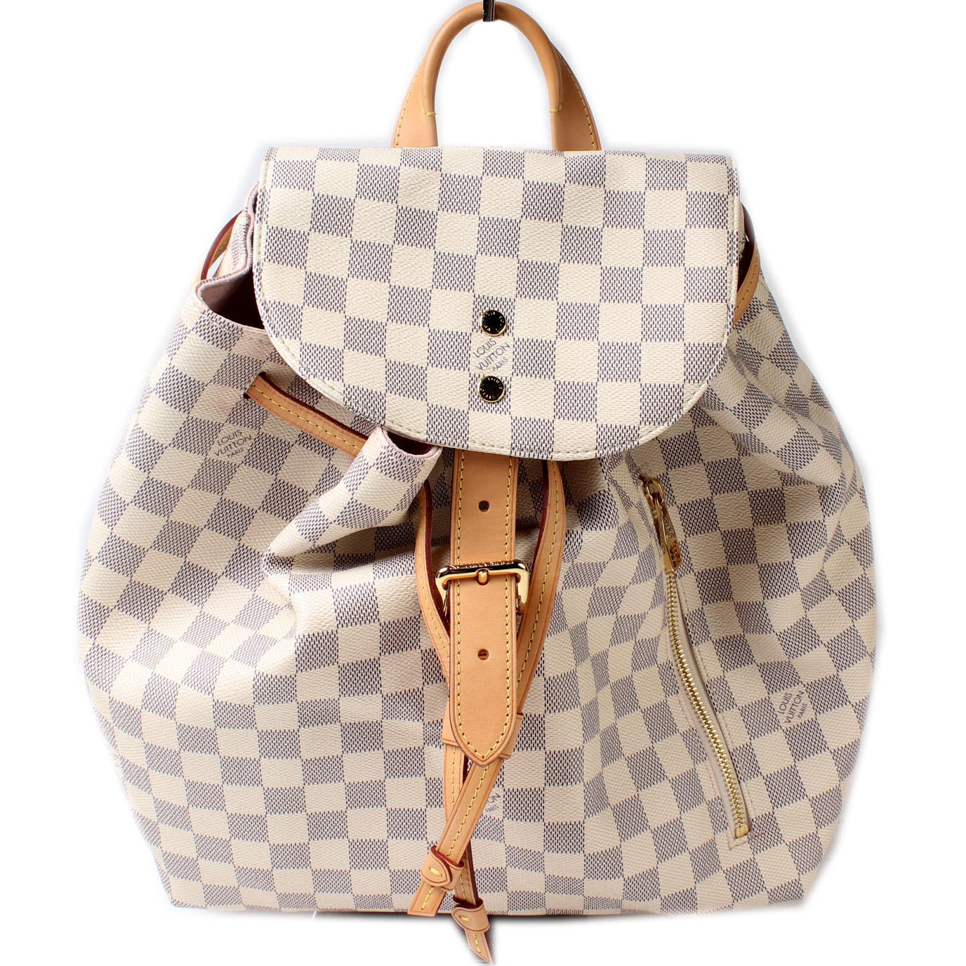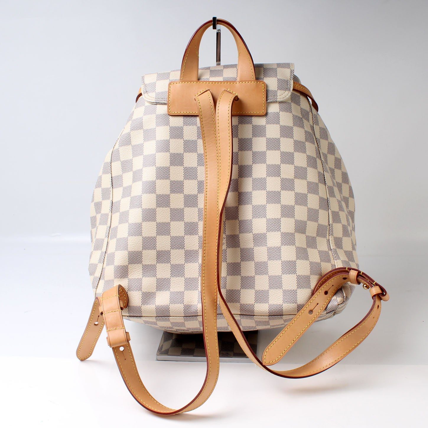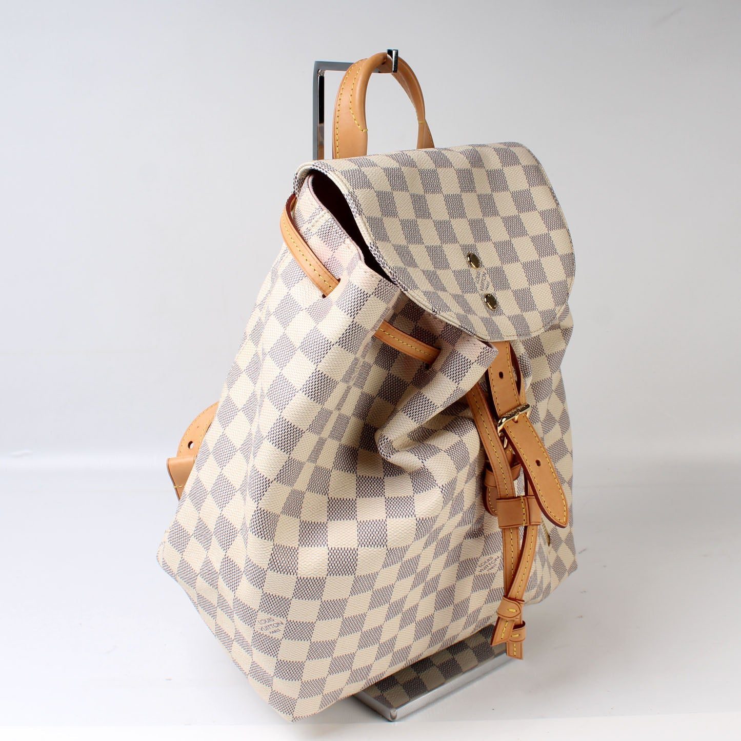 Louis Vuitton Sperone Backpack. The exterior is in the classic Louis Vuitton Damier Azur coated canvas.Â