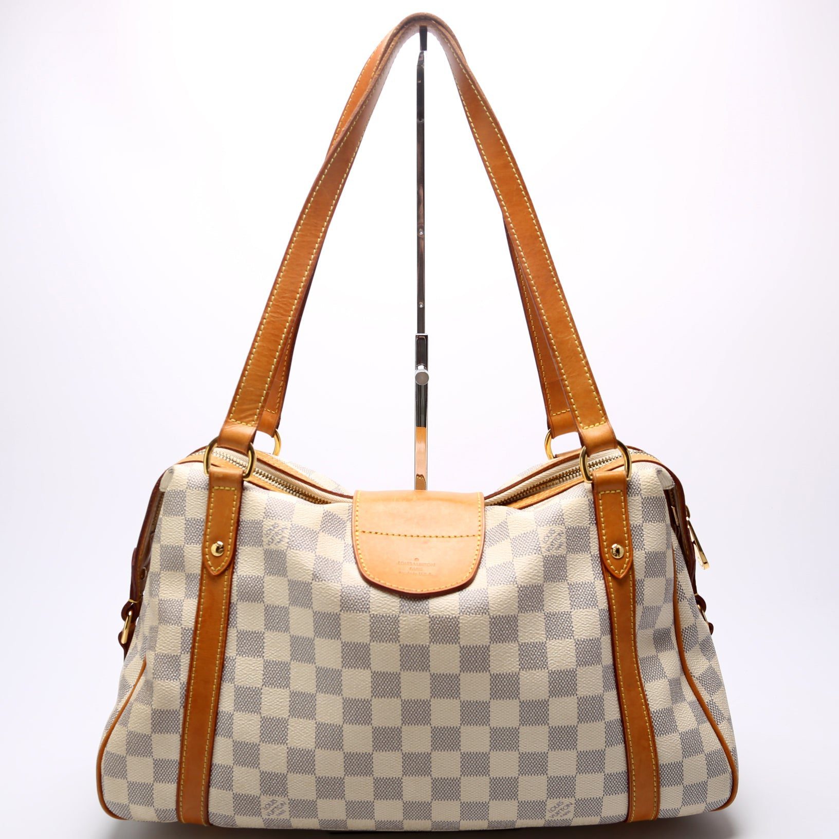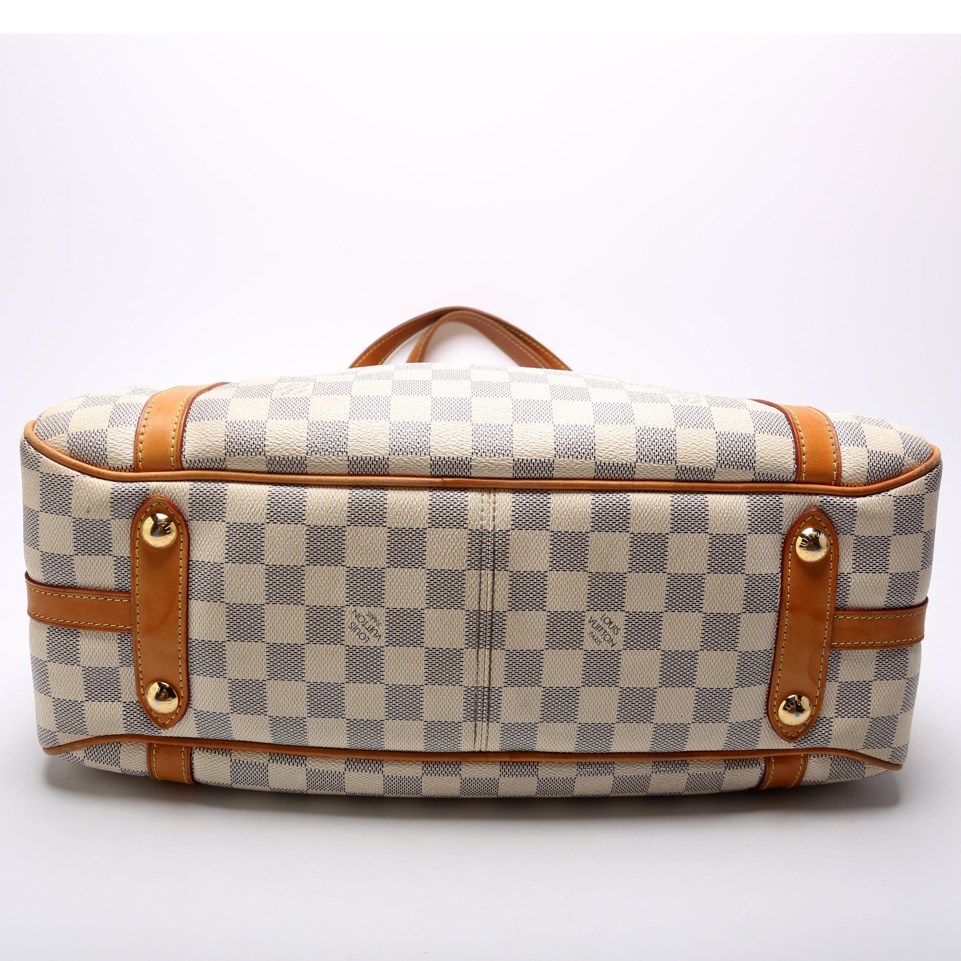 Louis Vuitton Stresa GM. The exterior is in the classic Louis Vuitton Damier Azur coated canvas.Â