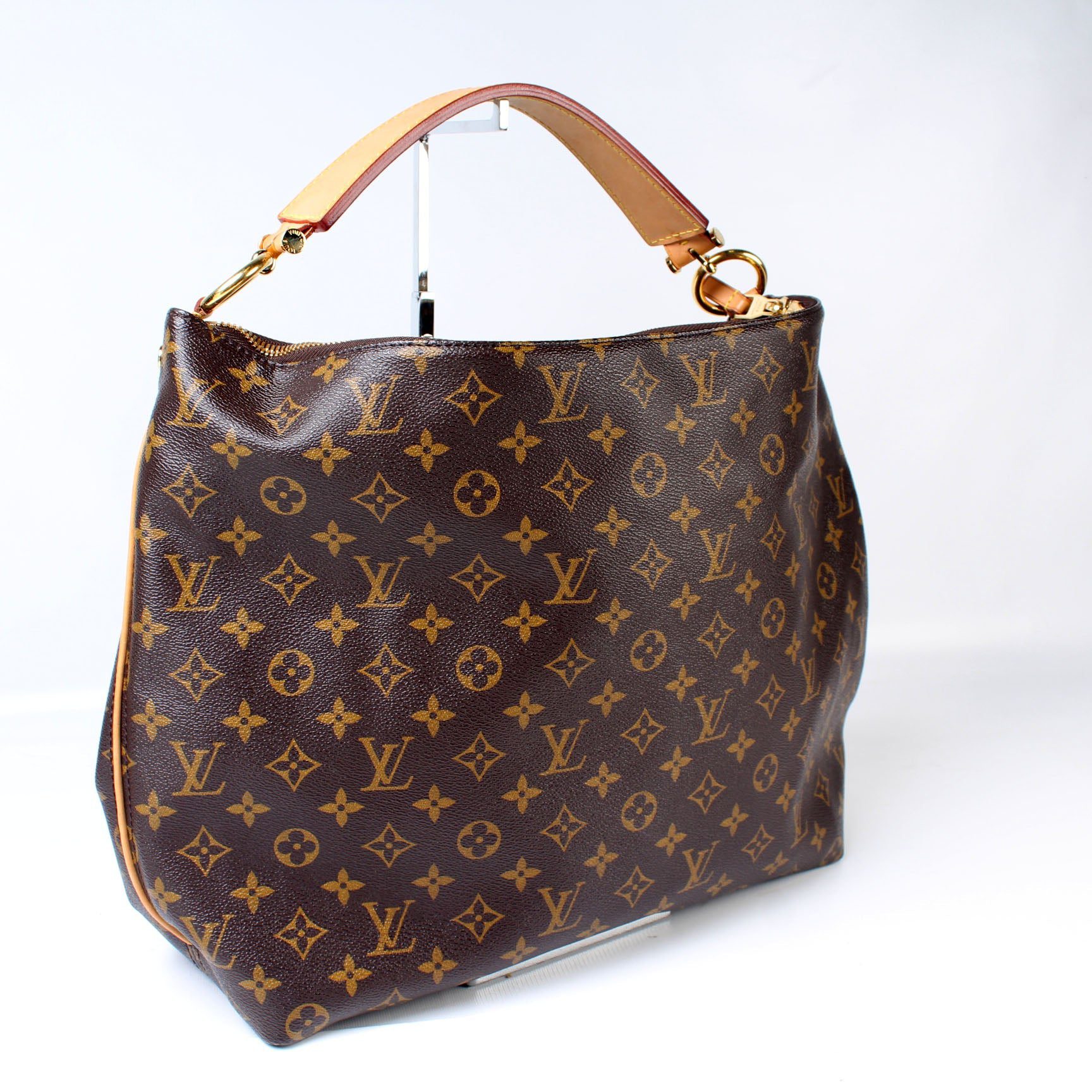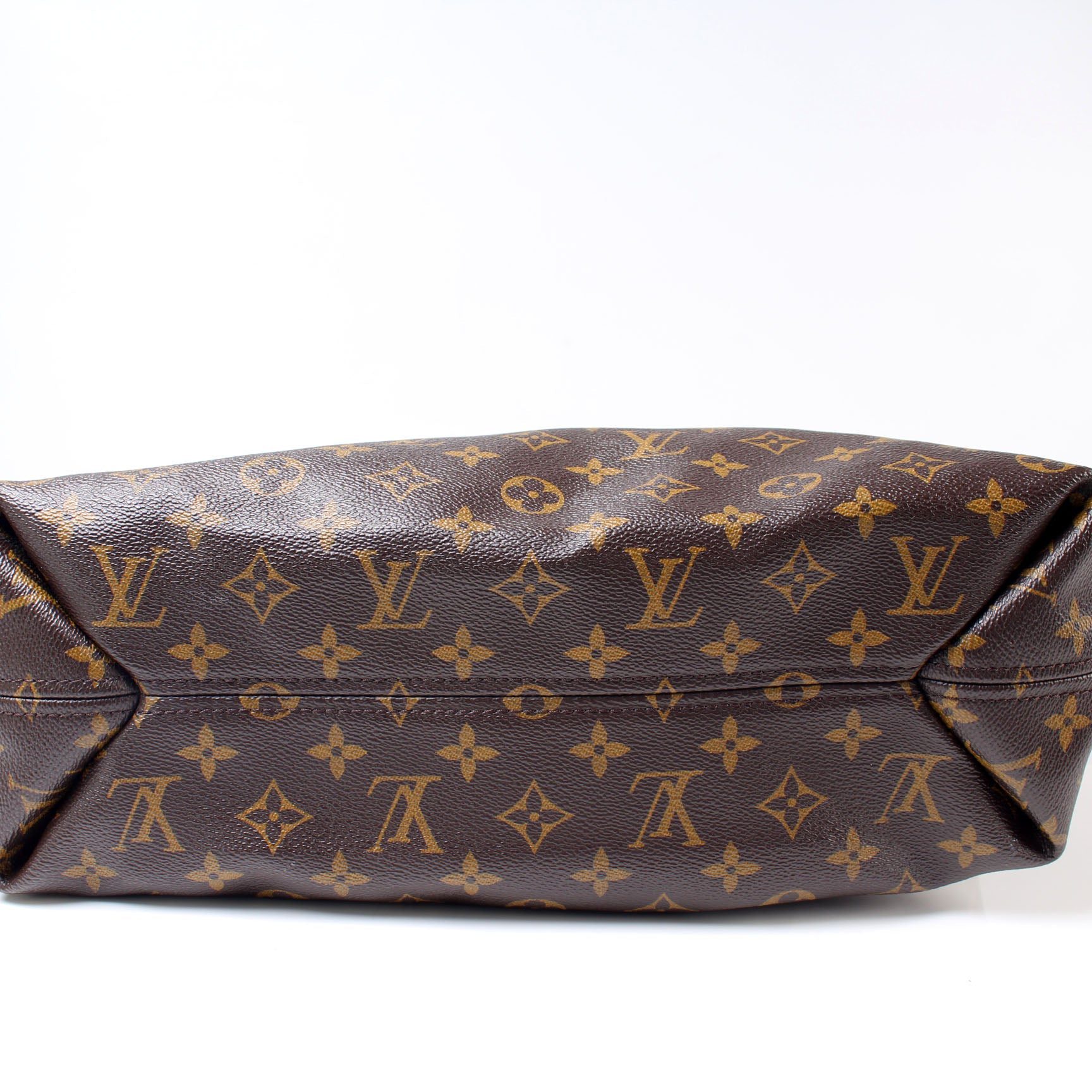 Louis Vuitton Sully MM. The exterior is in the classic Monogram coated canvas.