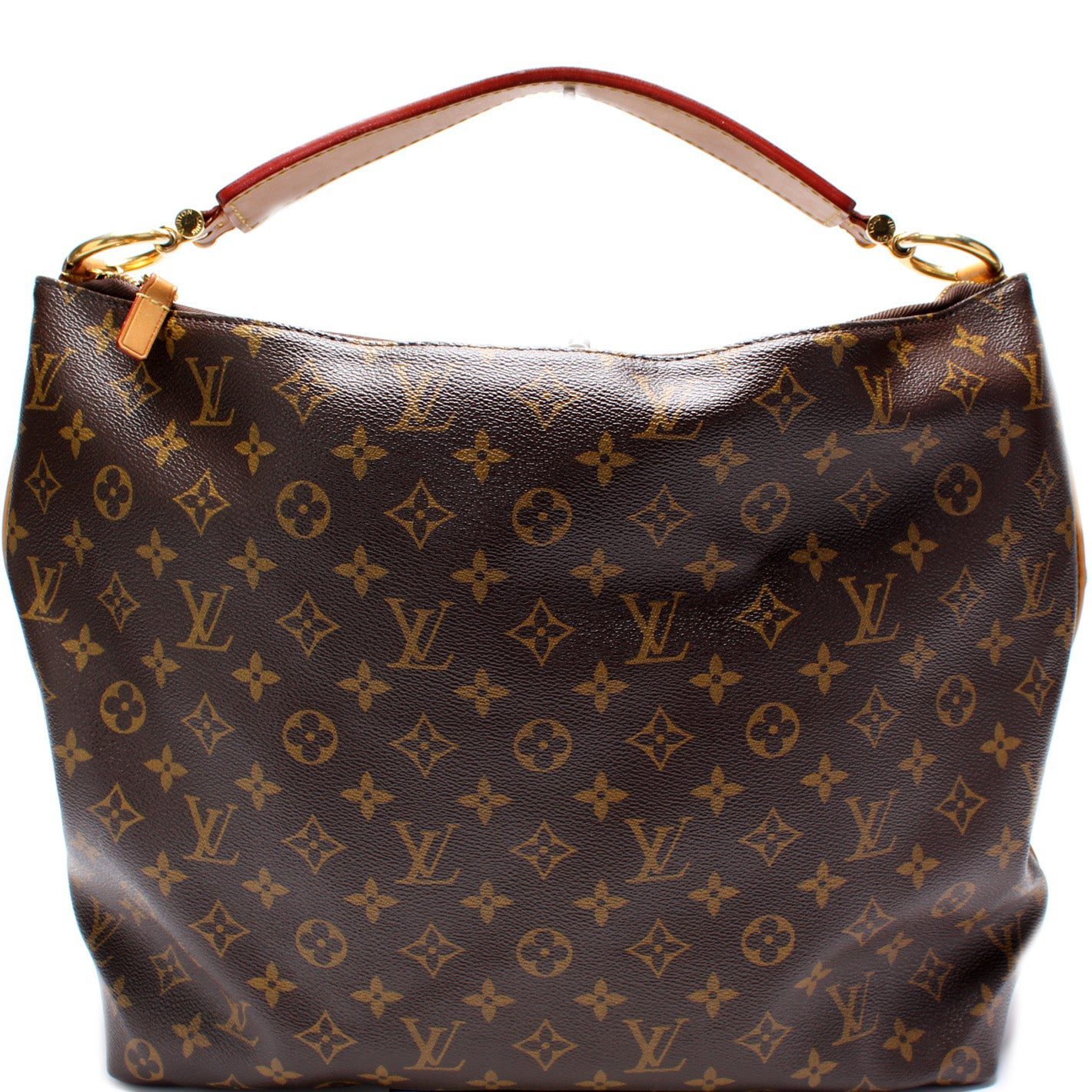 Louis Vuitton Sully MM. The exterior is in the classic Louis Vuitton Monogram coated canvas.