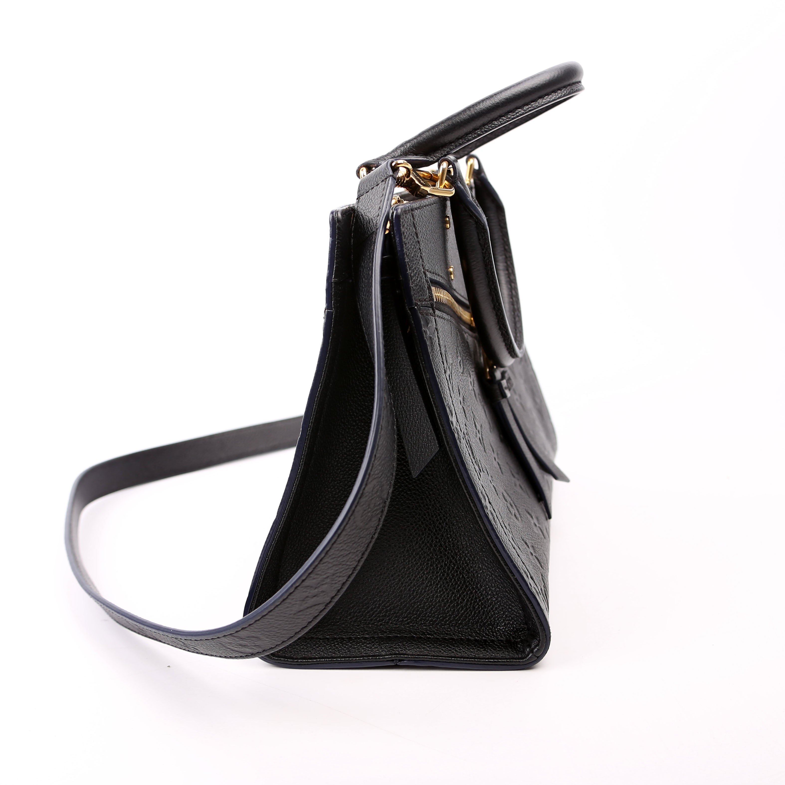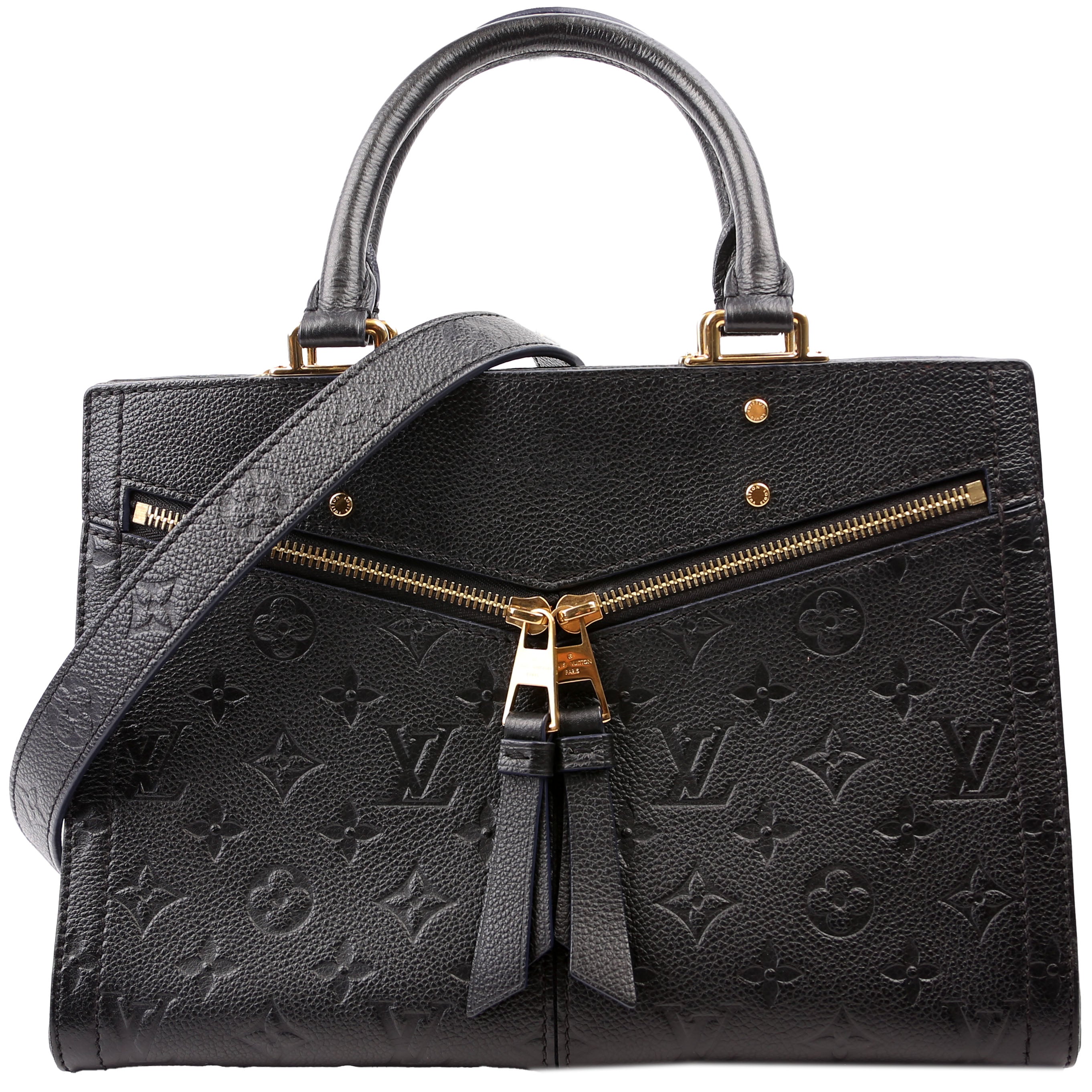 Louis Vuitton Sully PM . The exterior is in the classic Louis Vuitton Empreinte leather.