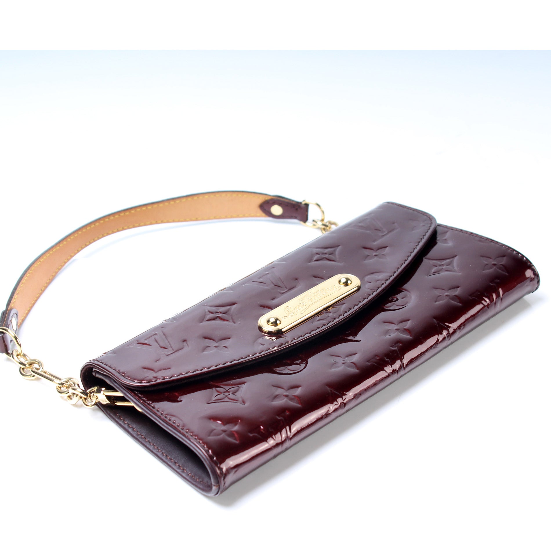 Louis Vuitton Sunset Blvd Clutch. The exterior is in the classic Louis Vuitton Vernis leather.Â