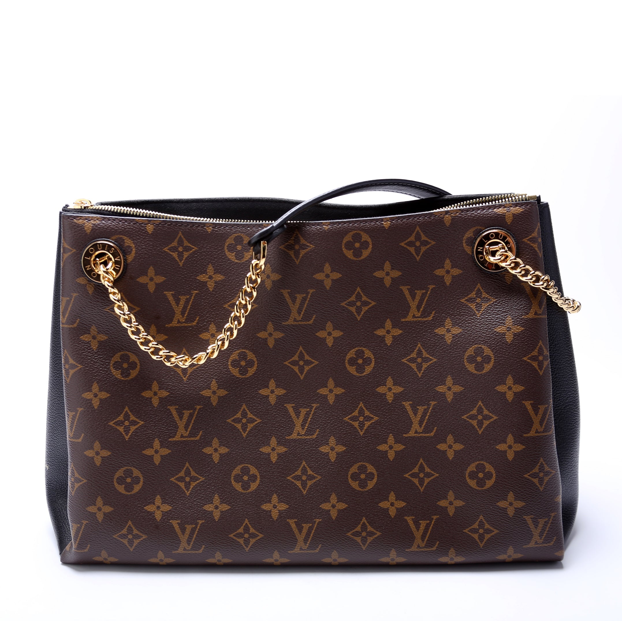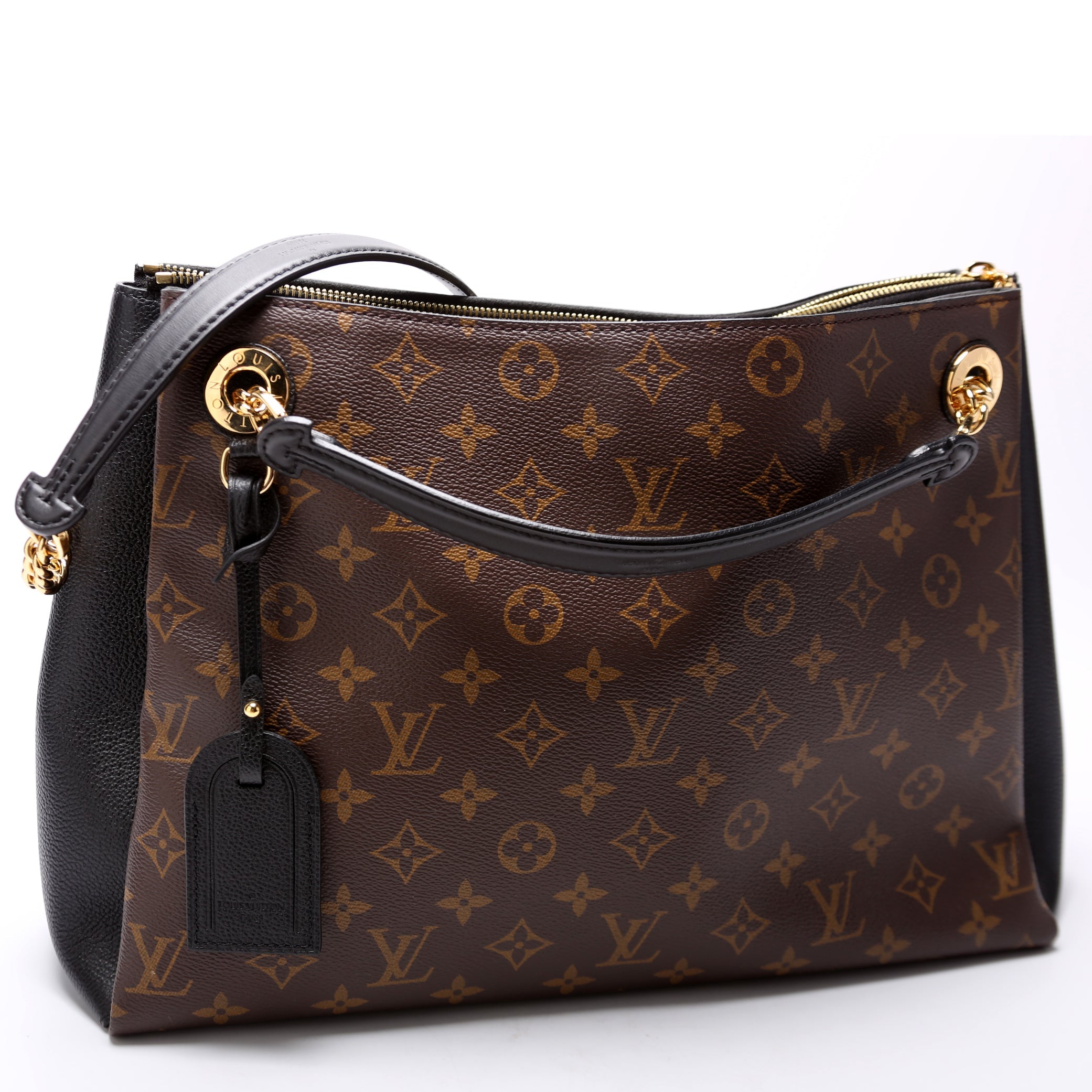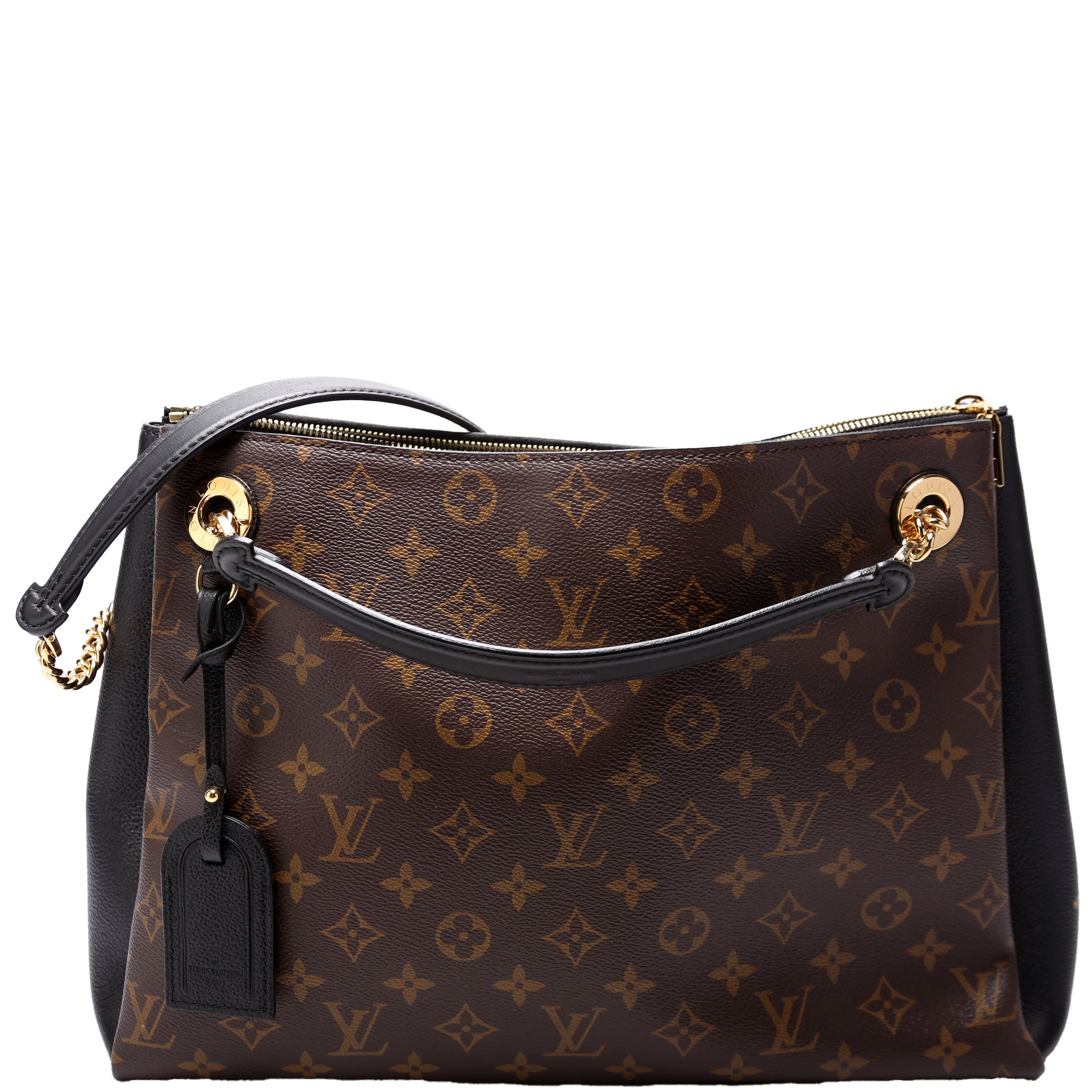 Louis Vuitton Surene MM. The exterior is in the classic Louis Vuitton Monogram coated canvas.Â