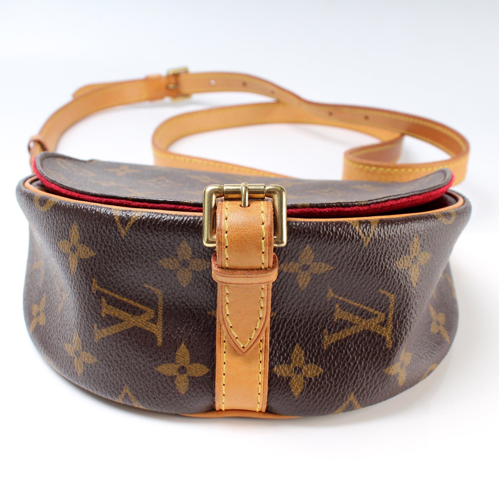 Louis Vuitton Tambourin Crossbody. The exterior is in the classic Louis Vuitton Monogram coated canvas.Â