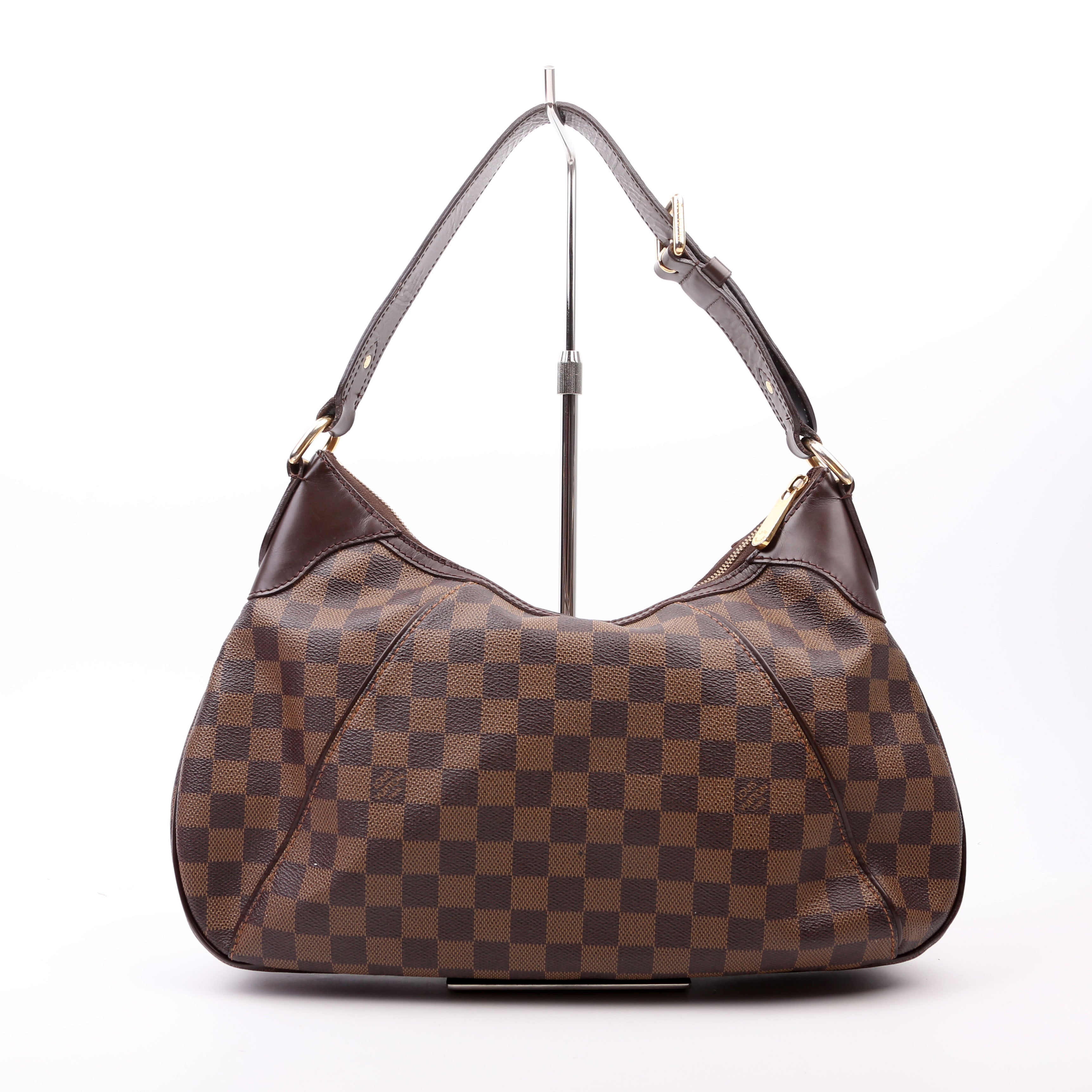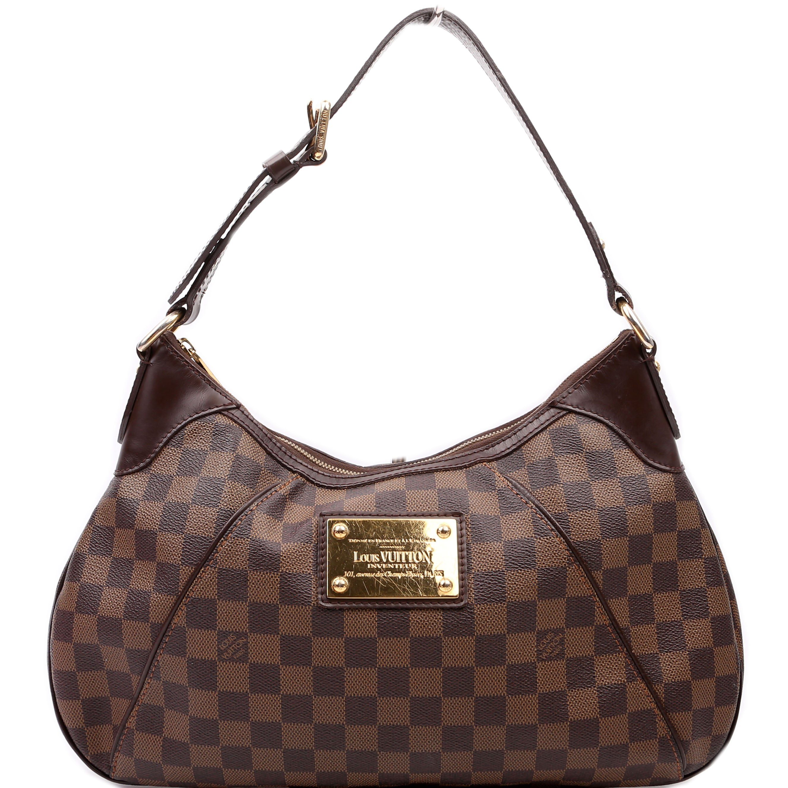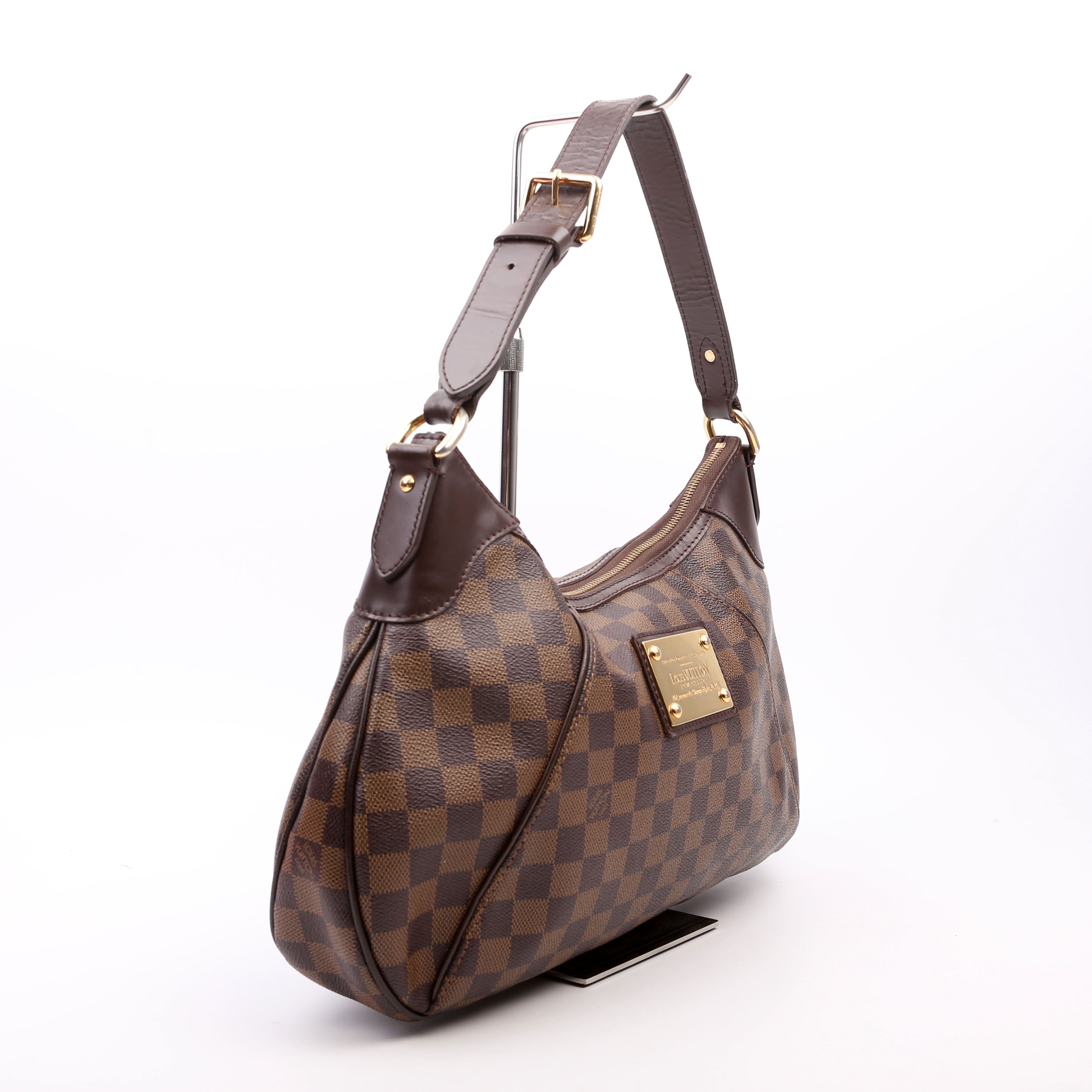 Louis Vuitton Thames GM . The exterior is in the classic Louis Vuitton Damier Ebene coated canvas.Â