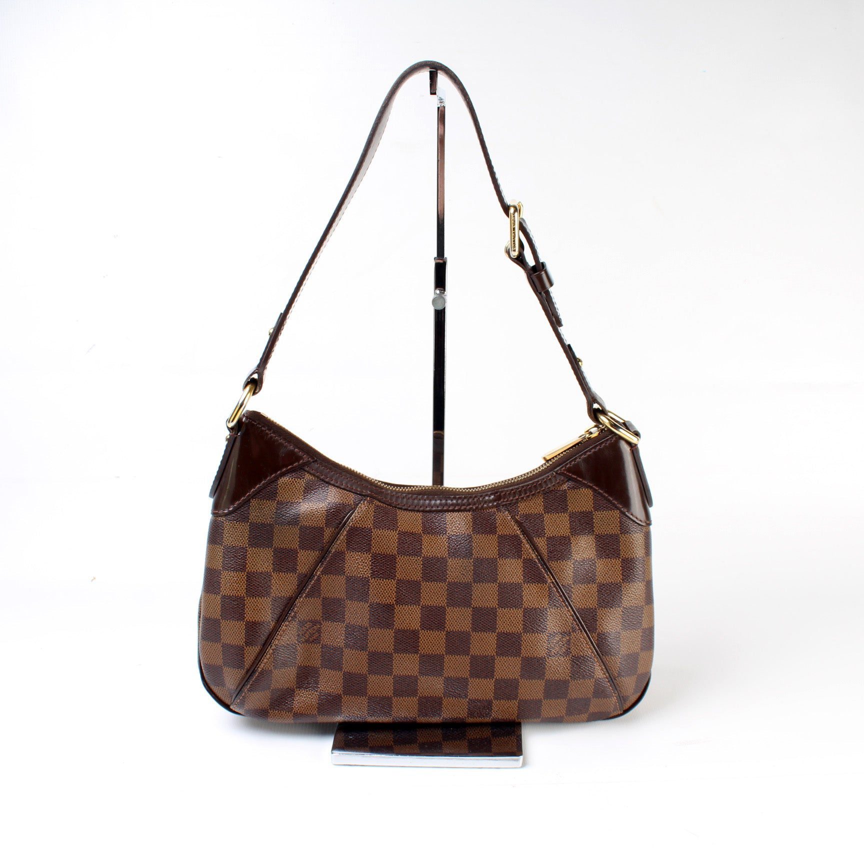 Louis Vuitton Thames PM. The exterior is in the classic Damier Ebene coated canvas. Â