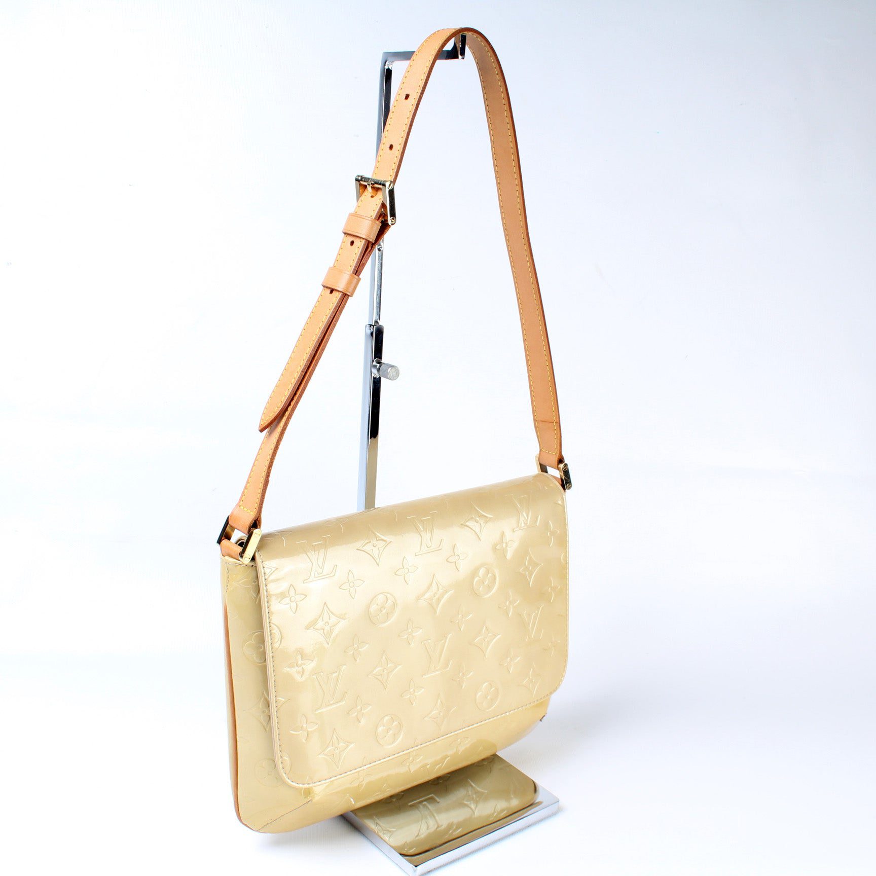 Louis Vuitton Thompson Street. The exterior is in the classic Louis Vuitton Vernis leather.Â